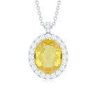 Oval Created Yellow Sapphire and Diamond Halo Pendant
