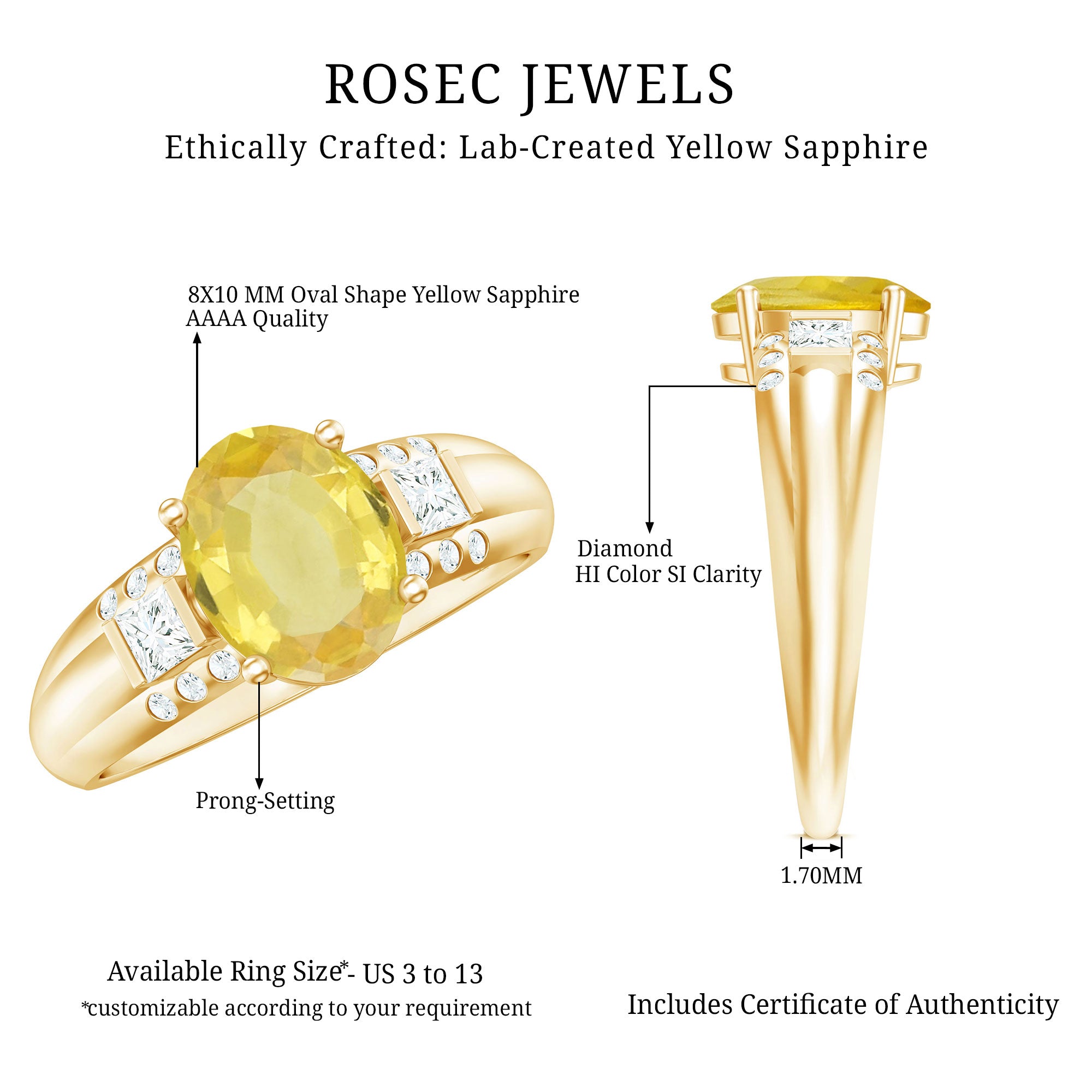 Oval Created Yellow Sapphire Solitaire Engagement Ring with Diamond
