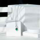 Oval Cut 6X8 MM Lab Created Emerald Infinity Necklace with Moissanite Halo
