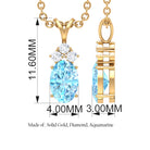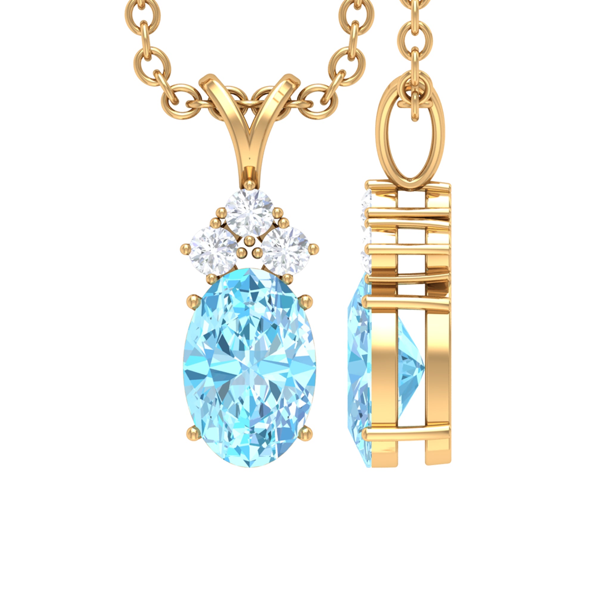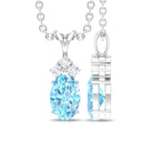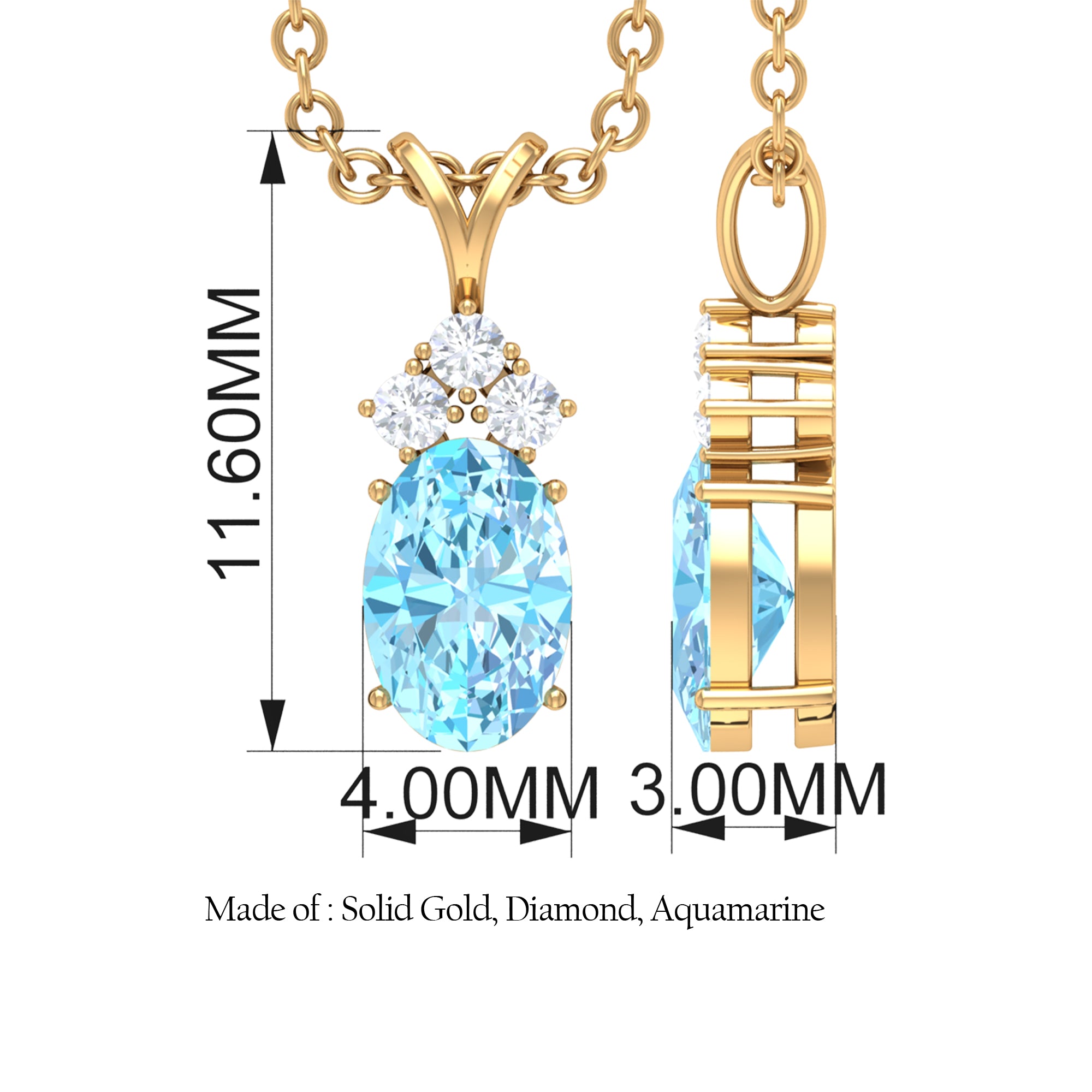 Oval Cut Aquamarine Pendant with Diamond Trio