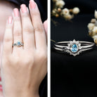 This Aquamarine Engagement Ring Set is designed for brides who appreciate subtle beauty and modern elegance. Handcrafted in 14K white gold plated silver, the set features a 3X4 MM oval shaped Aquamarine held securely in bezel setting. The center stone is gently accented by a half halo of round lab grown diamonds that add a refined sparkle. Aquamarine gentle blue tone reflects the quiet strength of the ocean and makes this Engagement Ring with Enhancer a perfect choice for those who seek a connection with nature and inner calm. The pairing of the engagement ring with a delicate ring guard brings an added touch of style and balance, creating a curated look that feels both contemporary and timeless. The minimalist design of this Aquamarine Bridal Ring Set gives it a versatile charm. It can be worn every day as a symbol of lasting love, or styled for special moments to enhance its meaning. Crafted with precision and love, this Aquamarine and Diamond Ring Set makes a beautiful gift for someone born in March, or anyone who is drawn to the quiet beauty of nature. Comes with a gemstone certificate and is presented in a signature jewelry box, ready for gifting or treasuring forever. Whether worn solo or as part of a stacked look, this ring set celebrates love with grace and purity, just like the symbol it reflects.