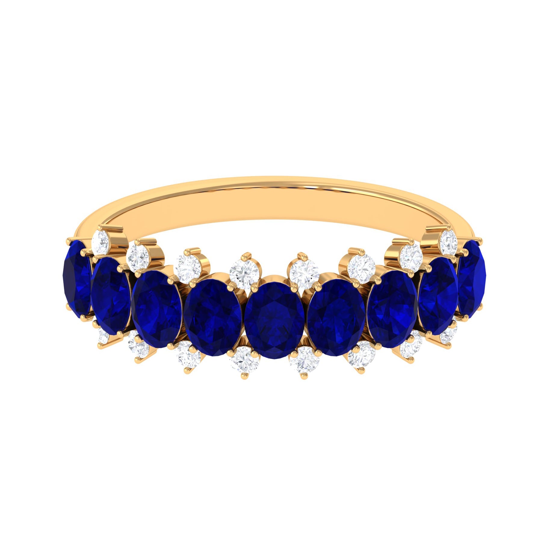 Oval Cut Blue Sapphire and Diamond Half Eternity Ring