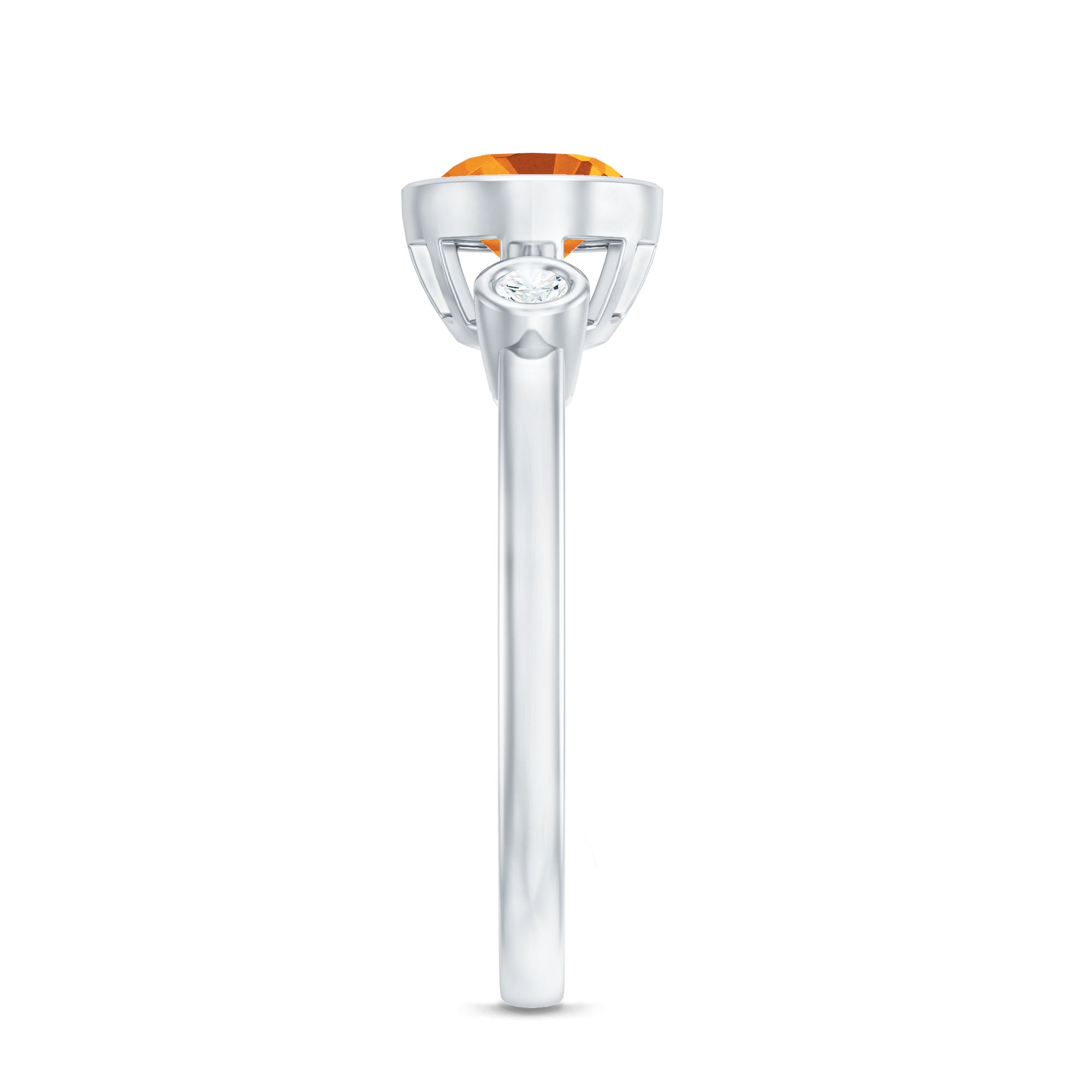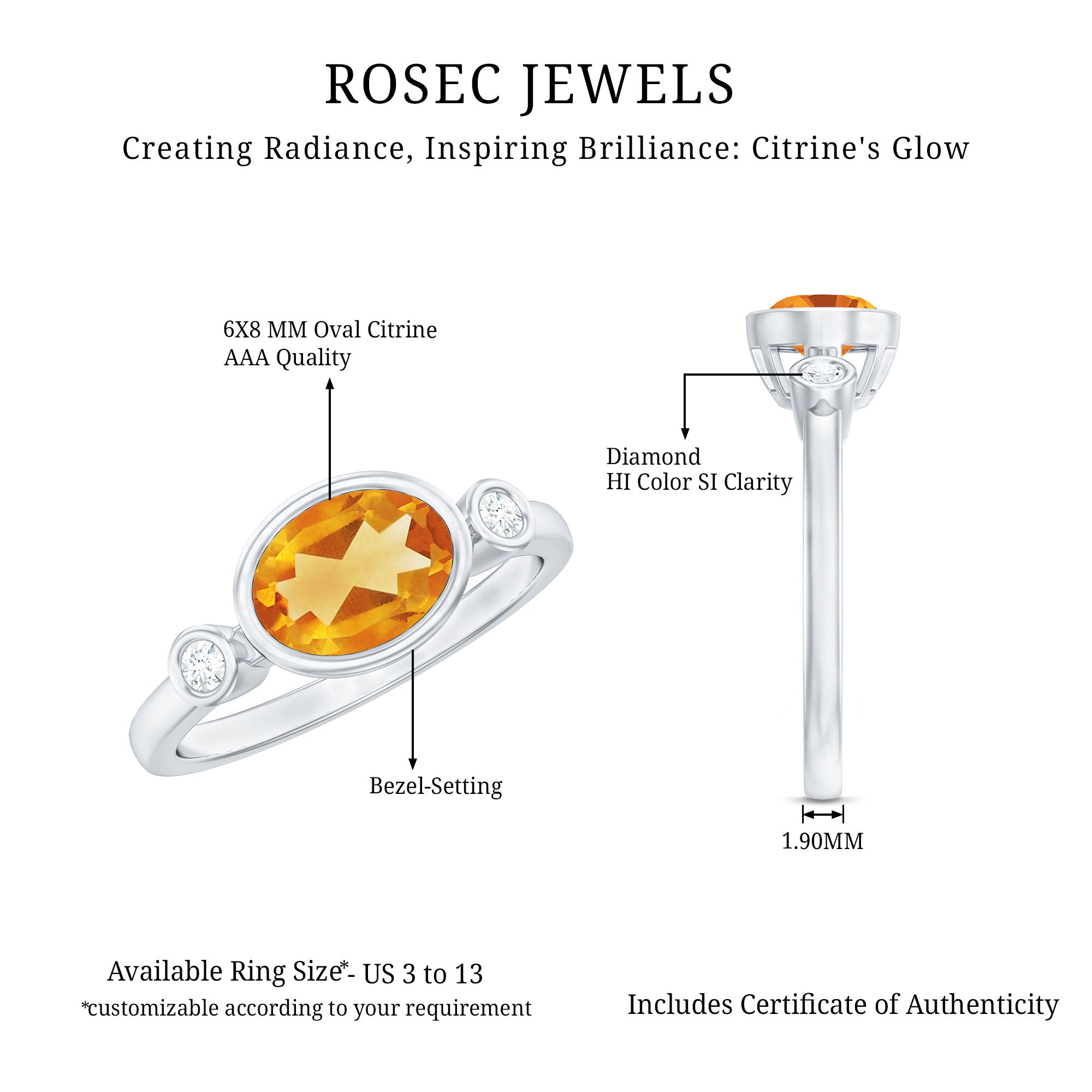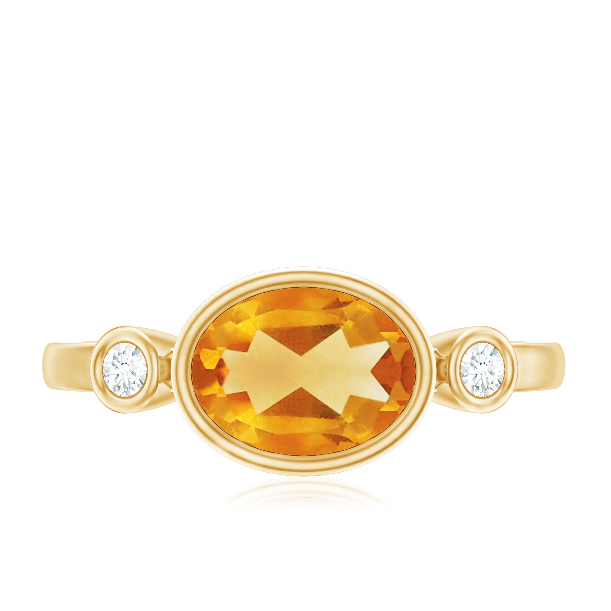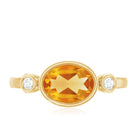 Oval Cut Citrine Solitaire East West Ring with Diamond Stones