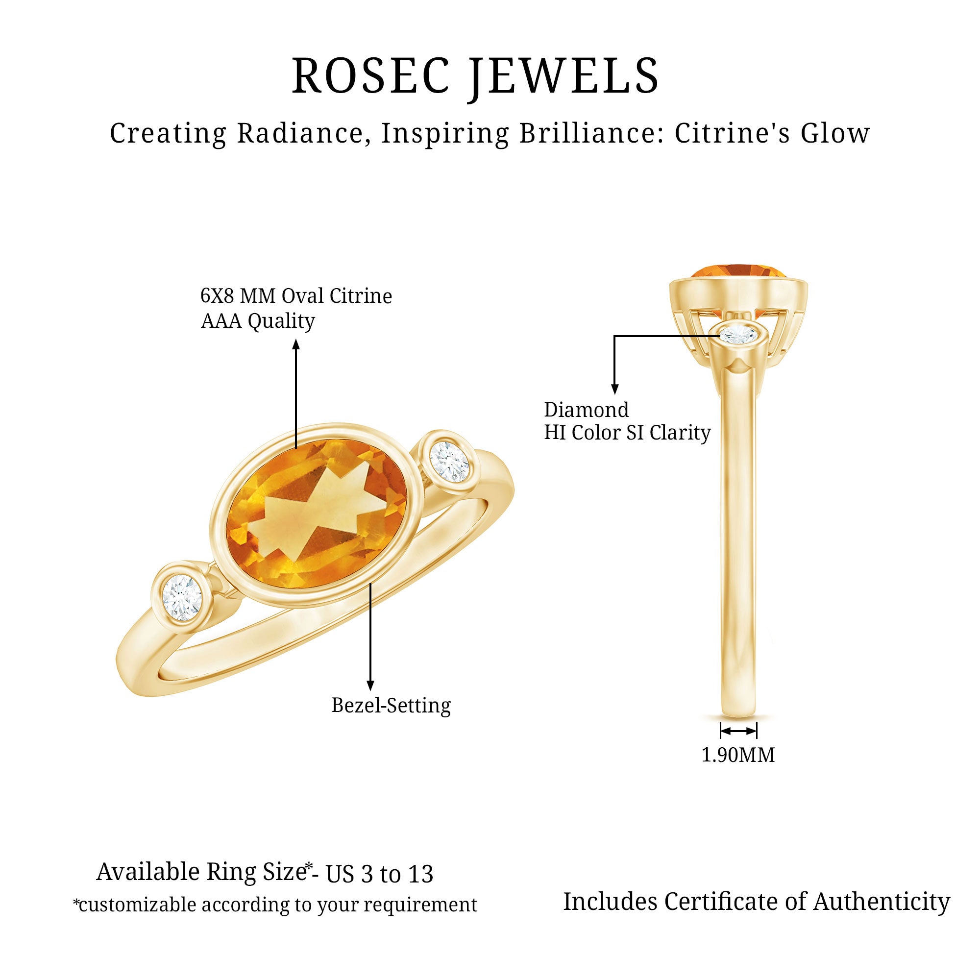 Choose this alluring East West Ring embellished with Oval Cut Citrine in Bezel Setting with Round Shape Diamond Stones to enhance your look. Crafted with Gold, this Citrine Solitaire Ring will be a perfect addition to your jewelry collection. Surprise your love with this adorable Citrine Ring and make her special day more special and memorable.