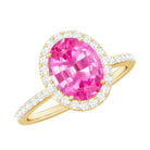 Oval Cut Created Pink Sapphire and Diamond Halo Ring