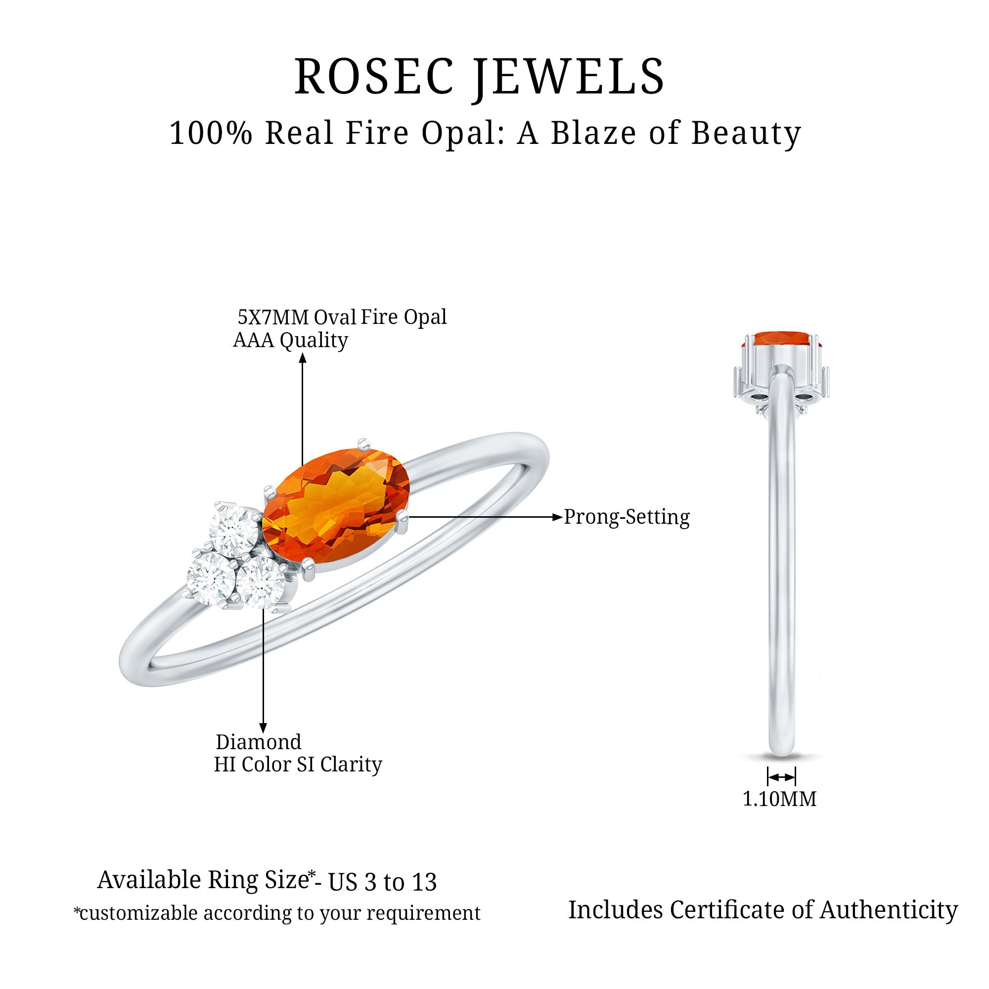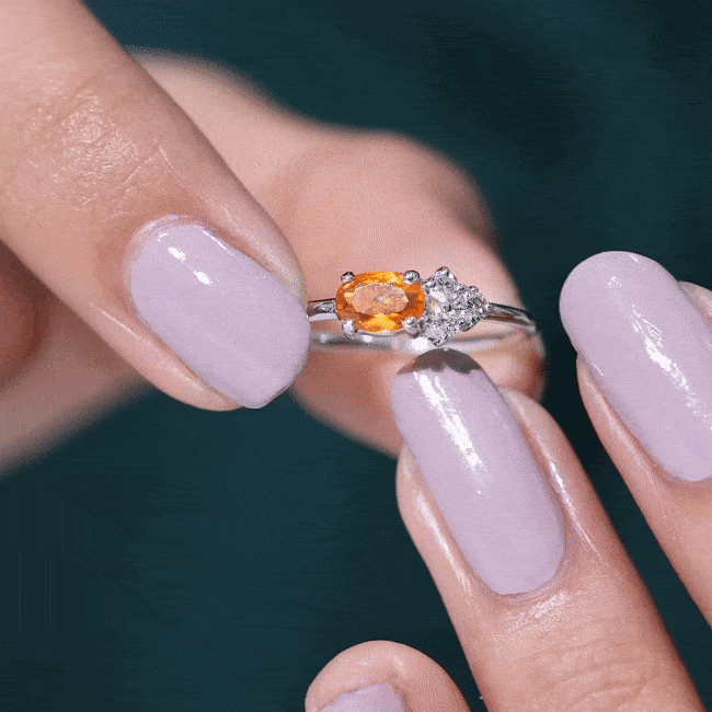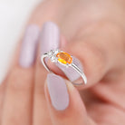 Make a statement with this captivating and minimal solitaire ring. Adorned with an oval-cut fire opal solitaire in a prong setting and accented by three Diamond stones, this designer ring is sure to mesmerize.