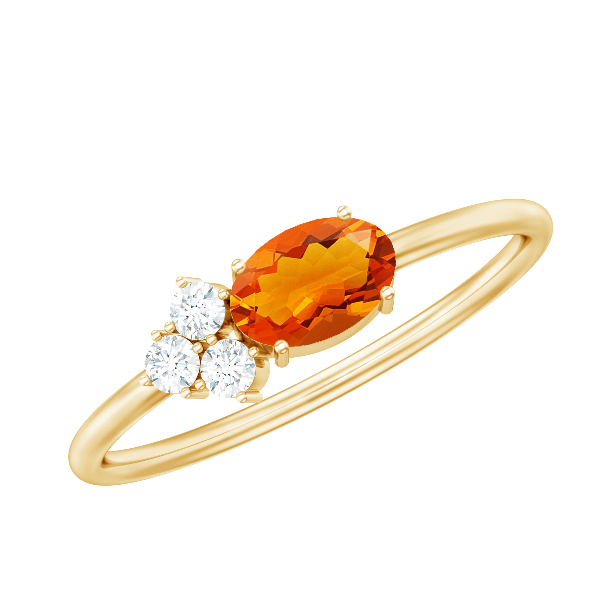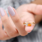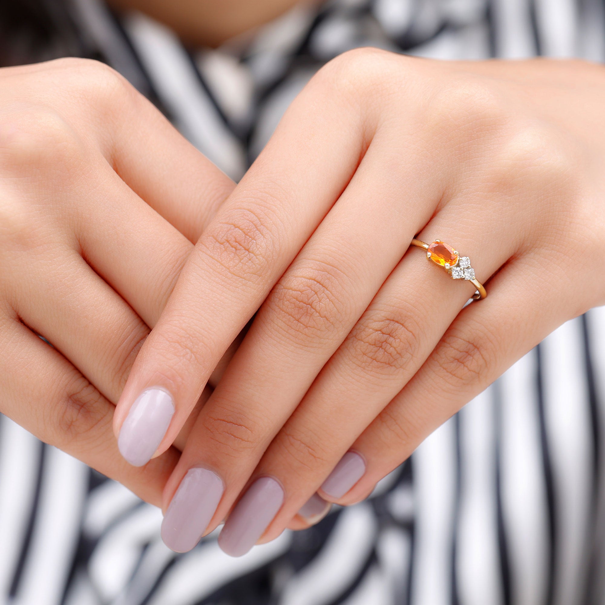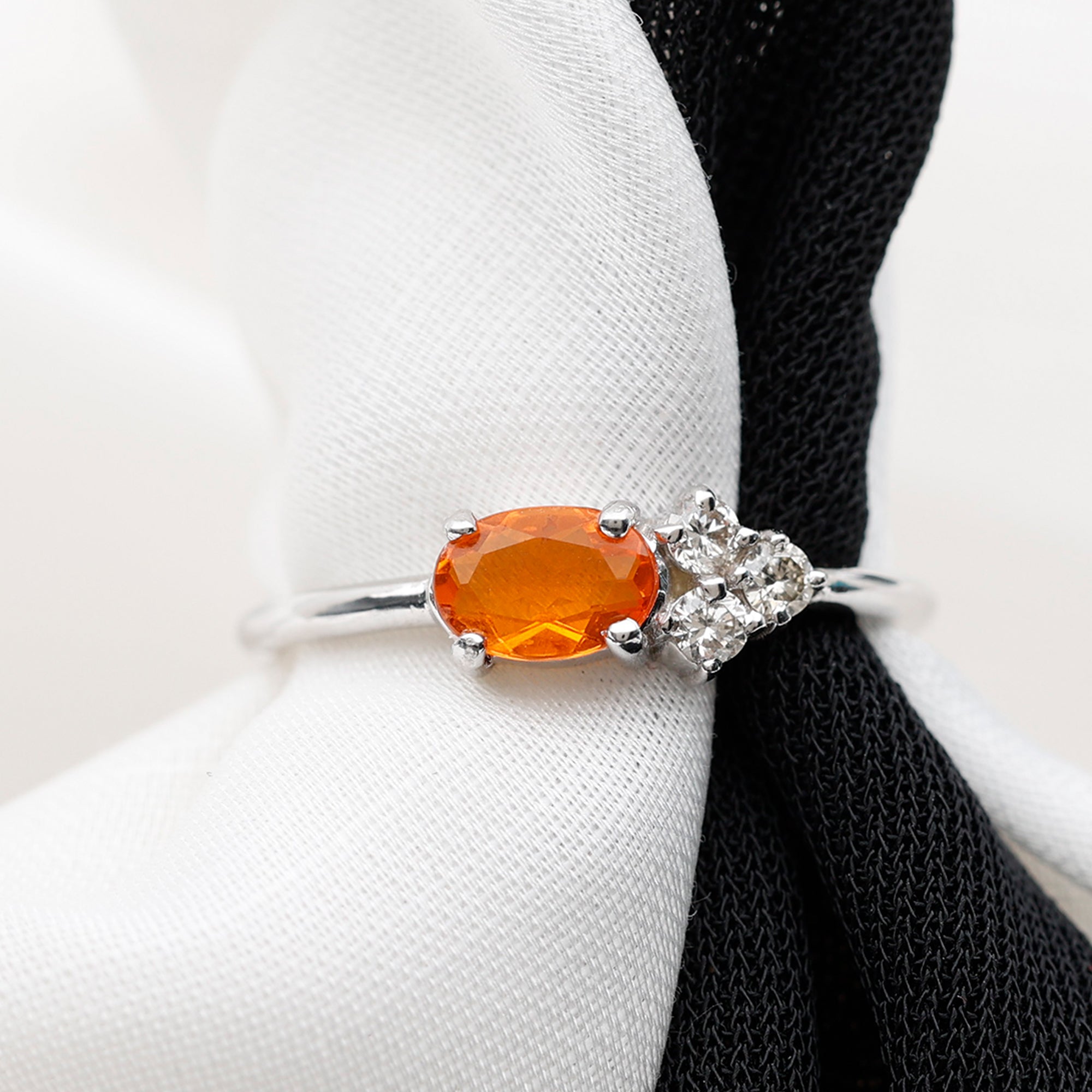Oval Cut Fire Opal Minimal Ring with Diamond Trio