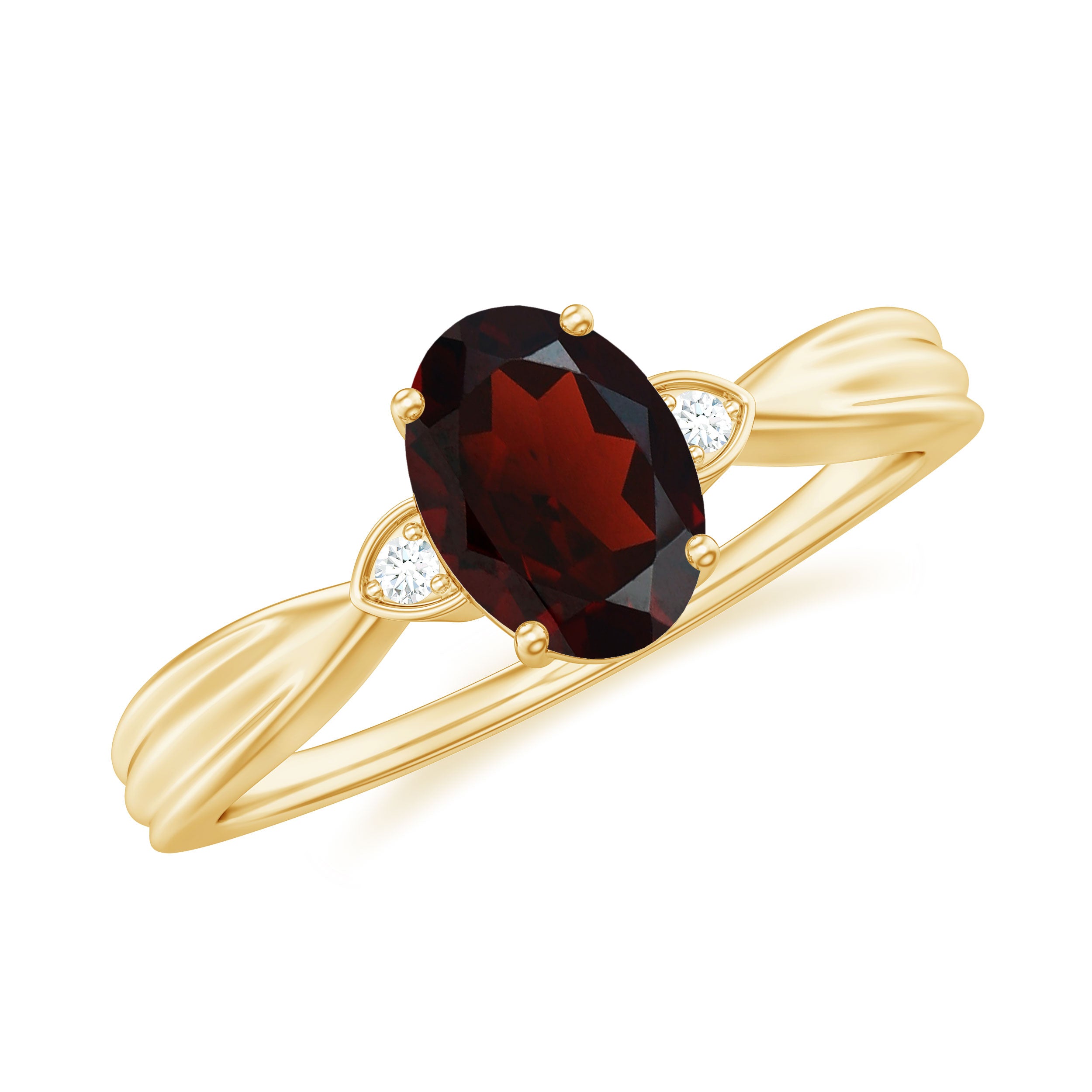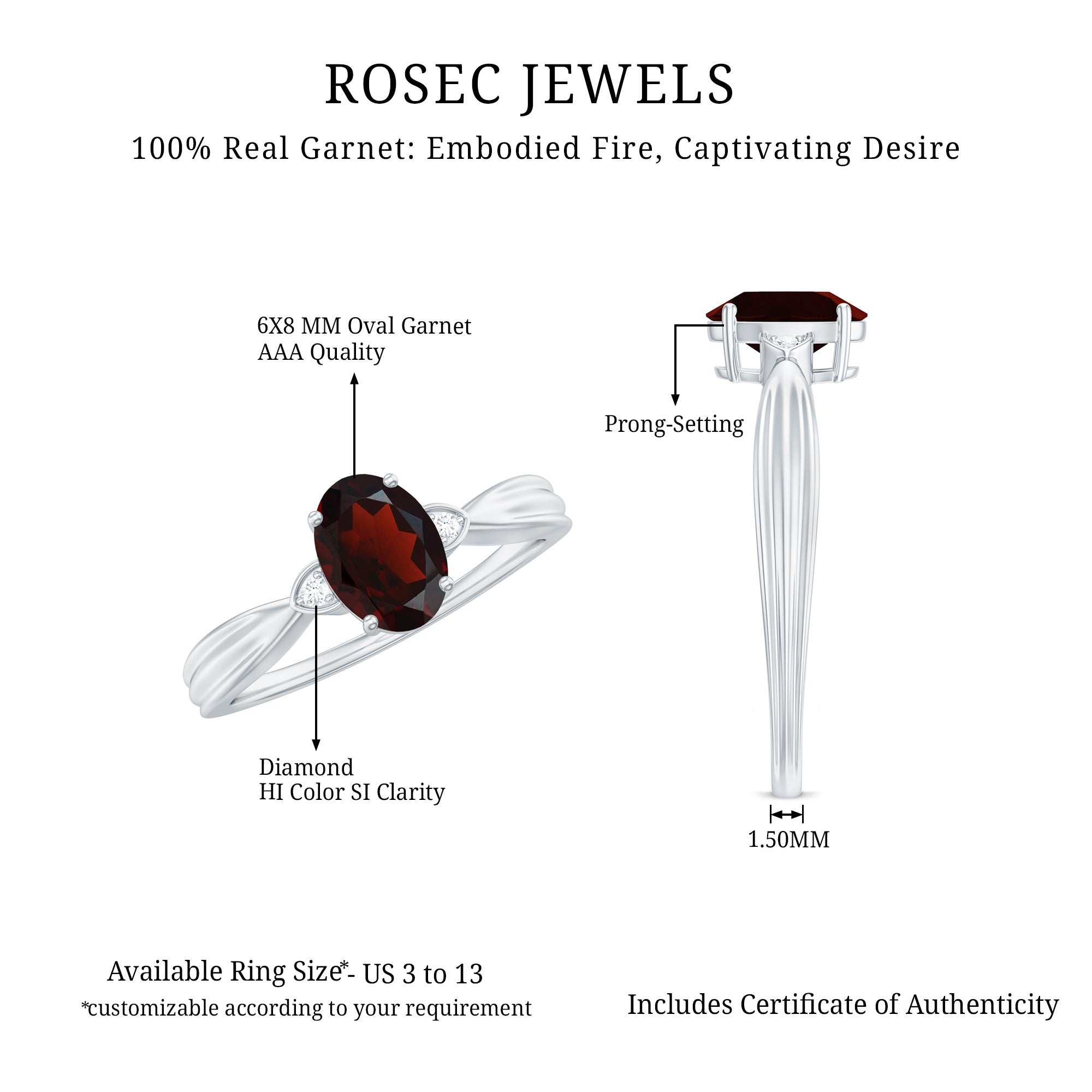 Indulge in the enchantment of this meticulously crafted Solitaire Ring, showcasing the irresistible beauty of an Oval Cut Garnet Solitaire complemented by sparkling Round Shape Diamond stones. Immerse yourself in the allure of this exquisite piece, designed to captivate your beloveds heart.