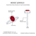 The Classic Engagement Ring features a gorgeous 6X8 MM oval cut lab created ruby that instantly steals the spotlight and is held by prongs. Around the center stone sits a bright diamond halo that sparkles beautifully from every angle, adding that perfect touch of glamour. The band itself continues the sparkle story with more finely set diamonds, giving the whole Oval Ruby Engagement Ring a balanced and graceful look. Every small detail is made to highlight the beauty of the ruby while keeping the design classy and comfortable to wear. The smooth curves and secure setting make it a piece that feels as good as it looks. Crafted from premium quality metal, the Ruby and Diamond Ring has a durable yet delicate finish that is perfect for everyday wear or special occasions. The combination of the AAAA quality created ruby and the HI-SI quality diamonds creates a look that is both modern and timeless. Whether it is for an engagement, a promise, or just to show love, this Oval Halo Engagement Ring carries deep meaning. It is a symbol of love, strength, and endless sparkle that shines as bright as the one who wears it.