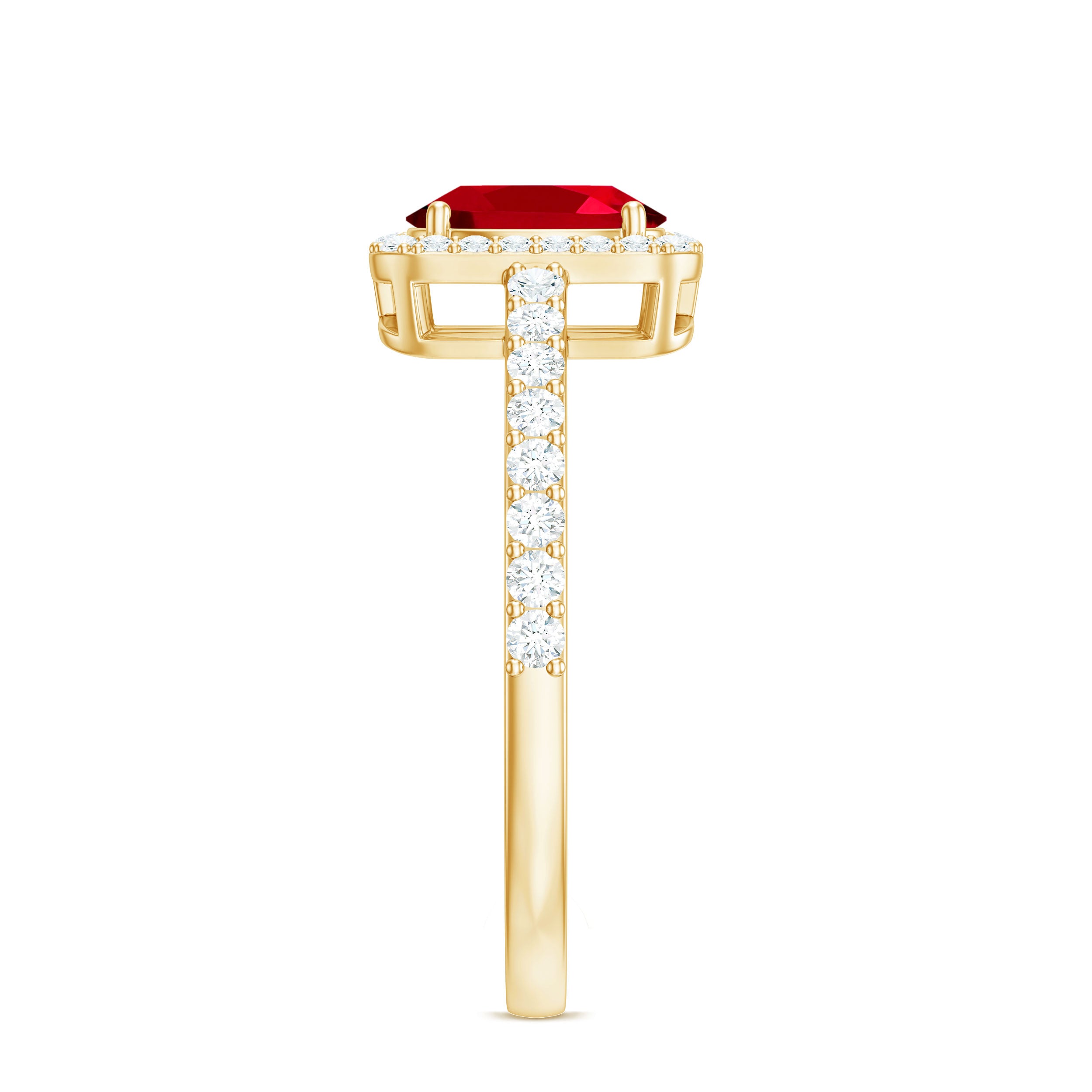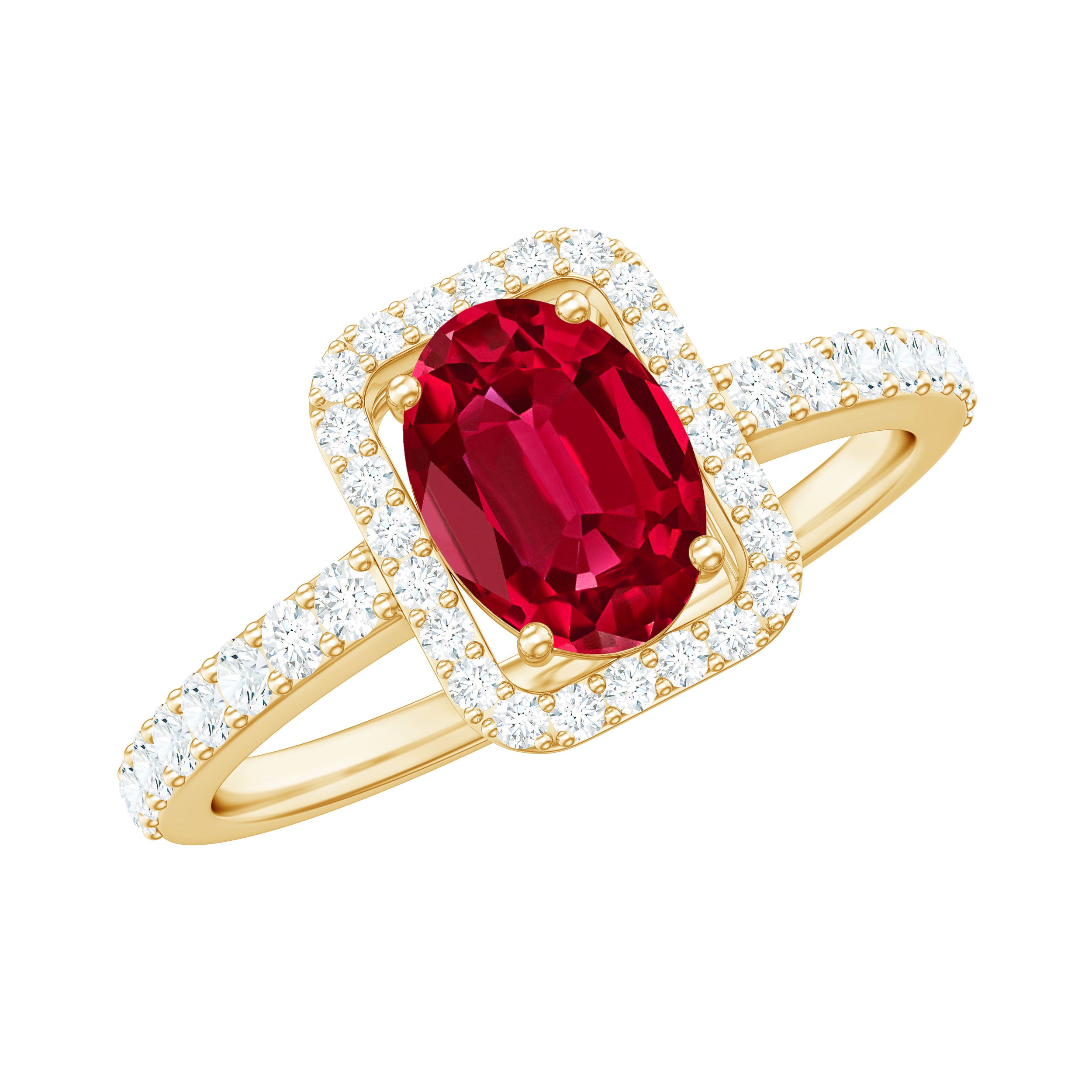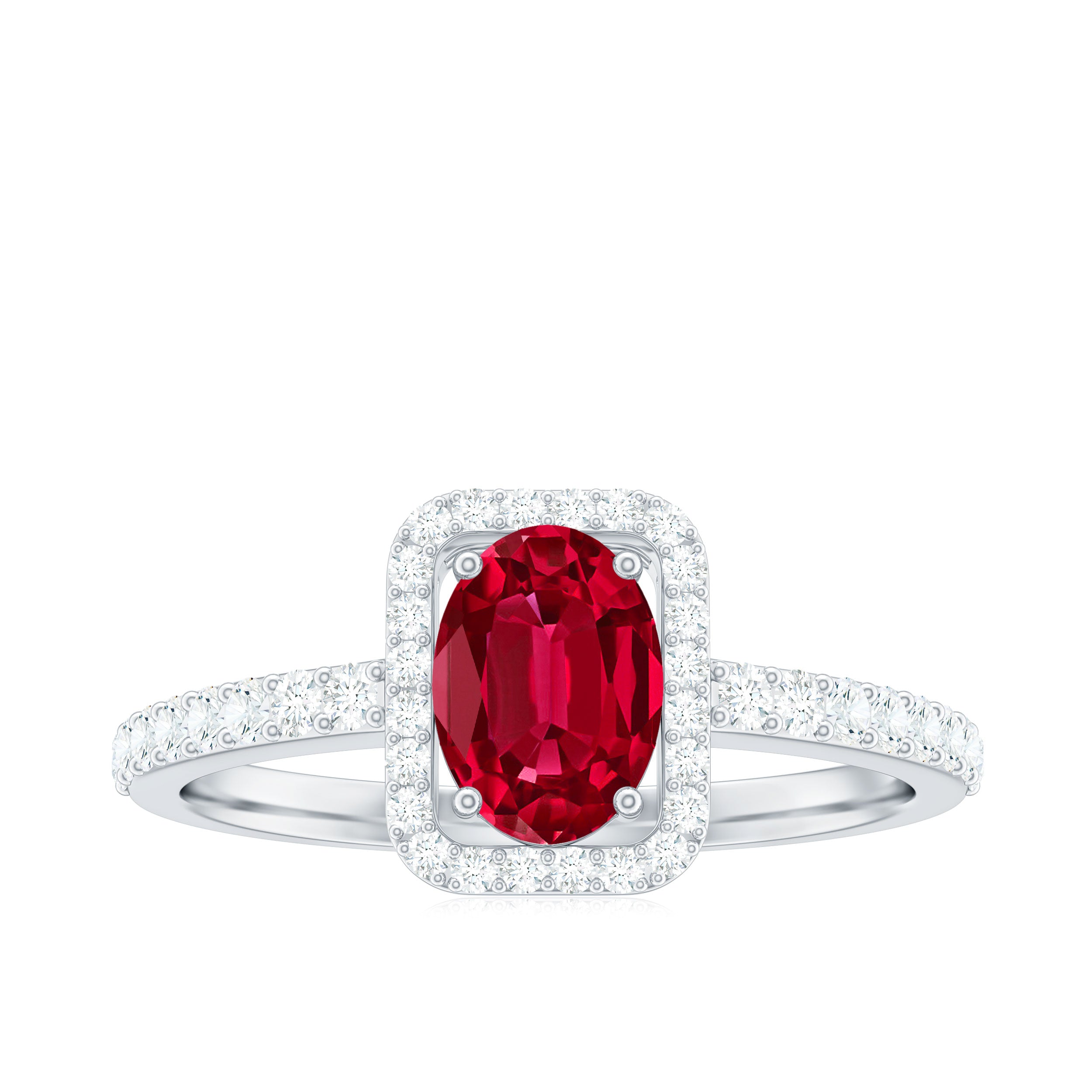 Oval Cut Lab Created Ruby and Diamond Halo Engagement Ring