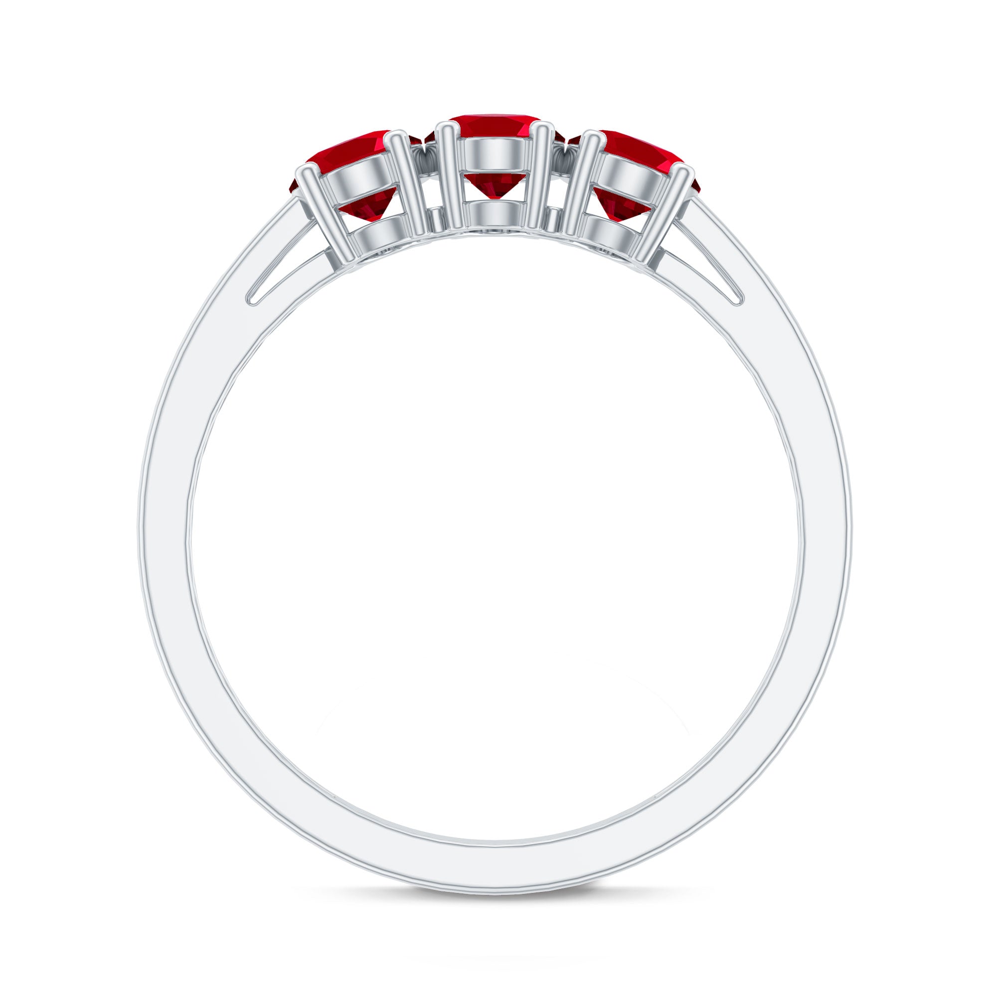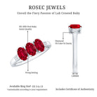 Our Ruby 3 Stone Engagement Ring is not just a ring, but a trio of brilliance symbolizing your past, present, and future. This Past Present and Future Ring features a beautifully balanced design that captures both elegance and emotion. At the heart of the ring sit three 4X5 MM oval cut lab created rubies, symbolizing the past, present, and future of a couple’s shared journey. Flanking the rubies are sparkling round cut diamond stones placed delicately on each side. Each gemstone is mounted securely in prong setting, allowing maximum light reflection while maintaining a graceful profile. The band itself is sleek and polished, giving the Lab Created Ruby Ring a comfortable feel while emphasizing the beauty of the stones. Its timeless design blends traditional charm with modern craftsmanship, making this Oval Ruby Ring ideal for those who appreciate both romance and style. Perfect for an engagement day, this Three Stone Ring embodies love and commitment in a design that stands out for its sophistication and meaning. The combination of AAAA quality rubies and shimmering HI-SI quality diamonds tells a story of enduring devotion, making it a cherished keepsake for years to come.