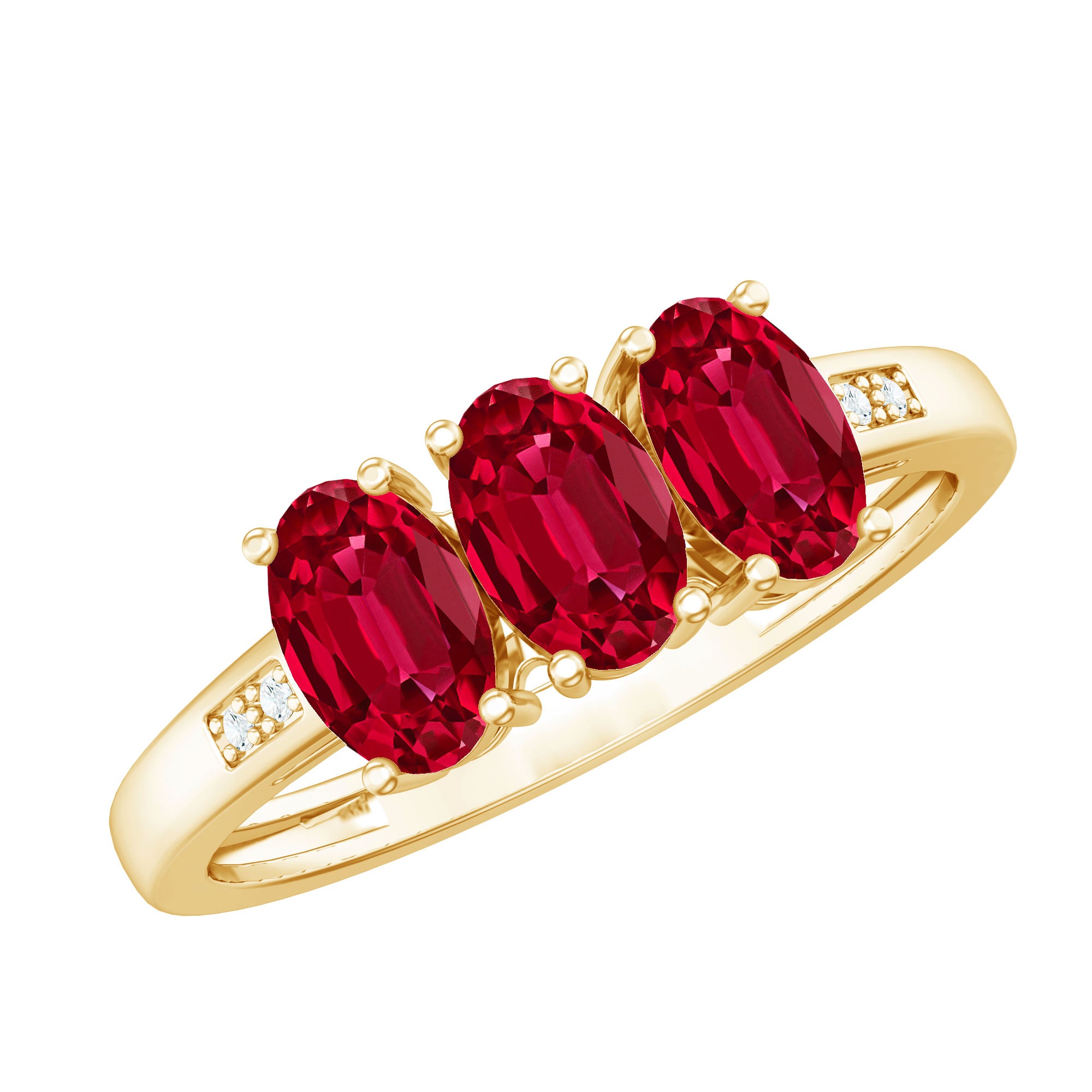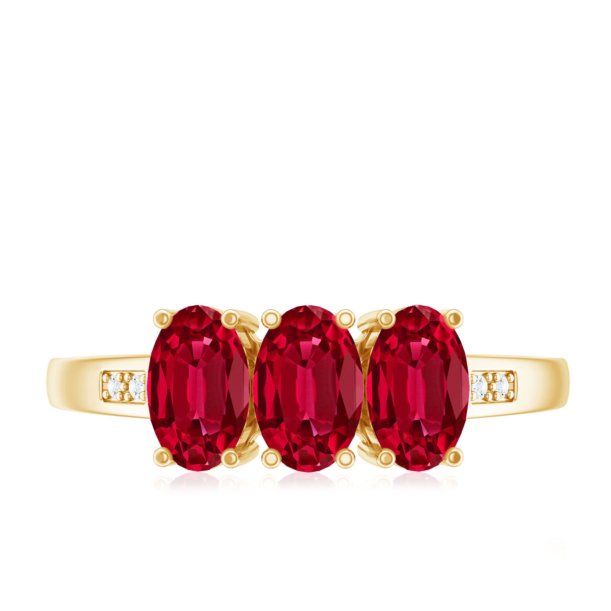 Oval Cut Lab Created Ruby Three Stone Engagement Ring