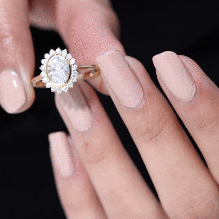 Oval Cut Lab Grown Diamond Halo Engagement Ring in Bezel Setting