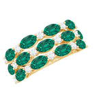 Oval Cut Lab Grown Emerald Statement Wedding Band with Diamond