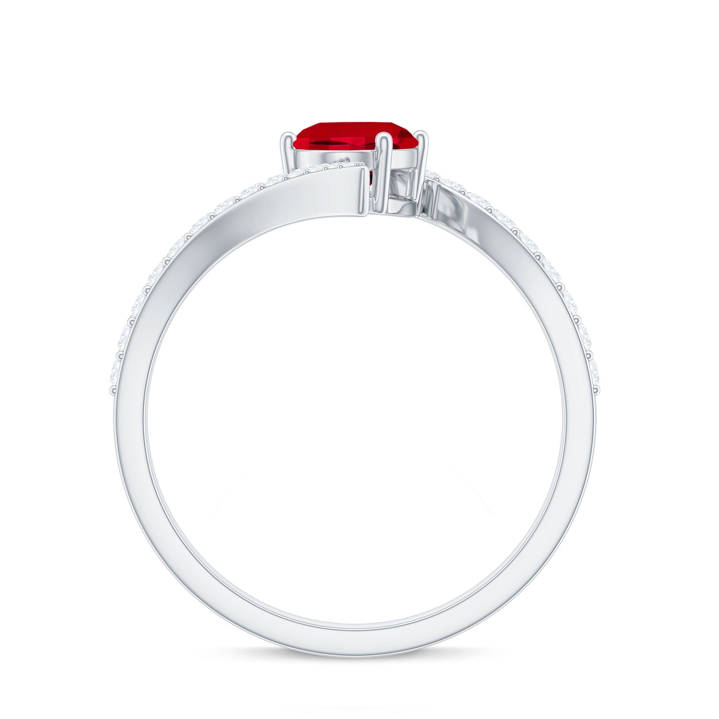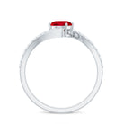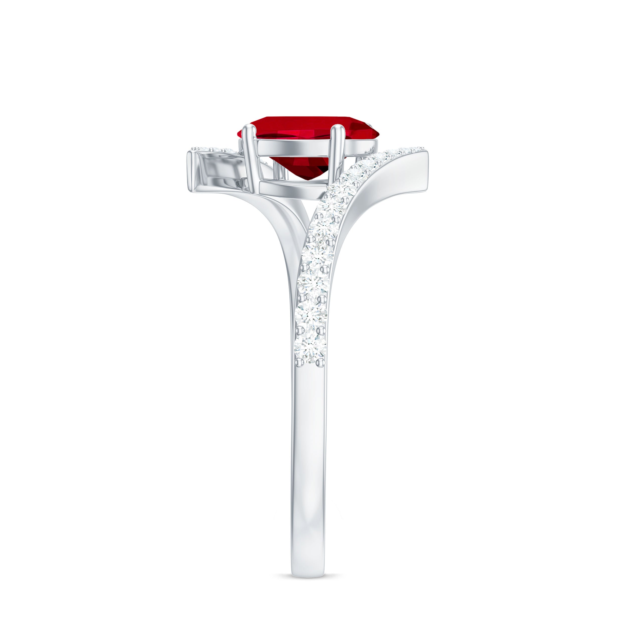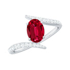 Oval Cut Lab Grown Ruby Bypass Engagement Ring with Diamonds