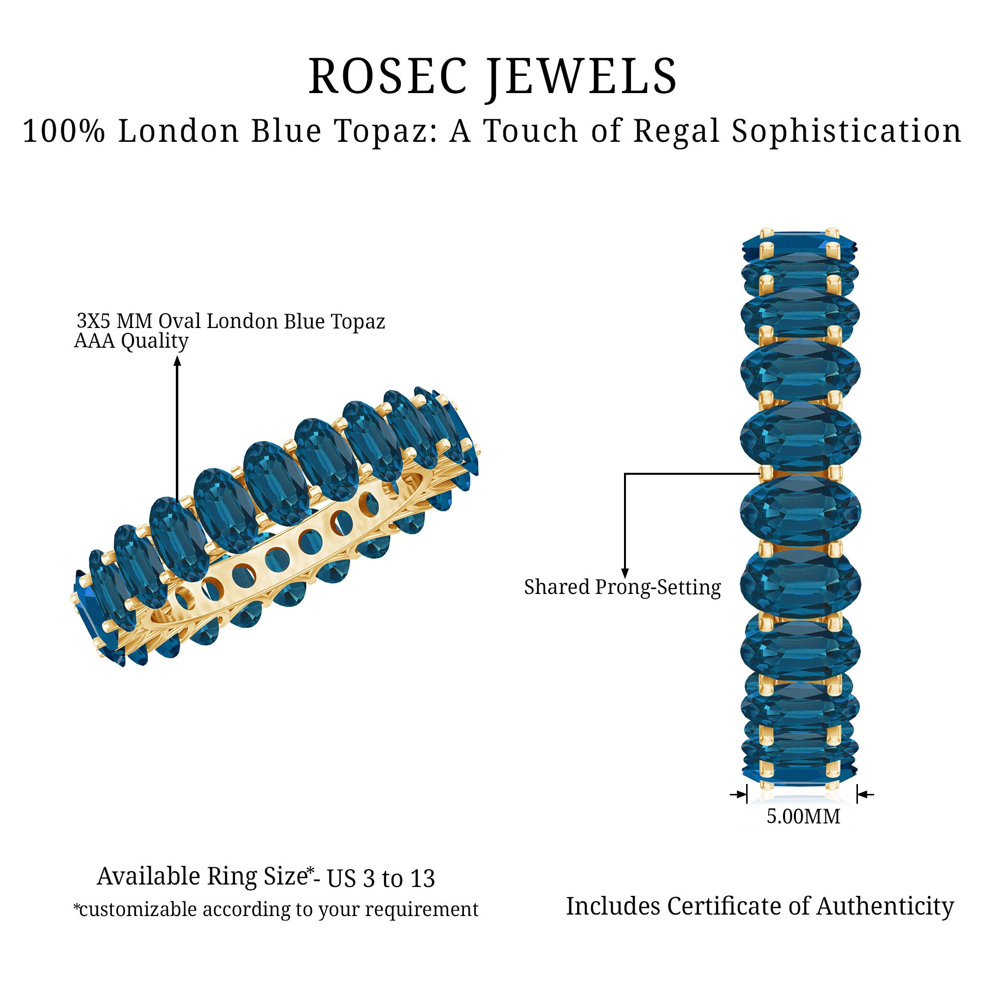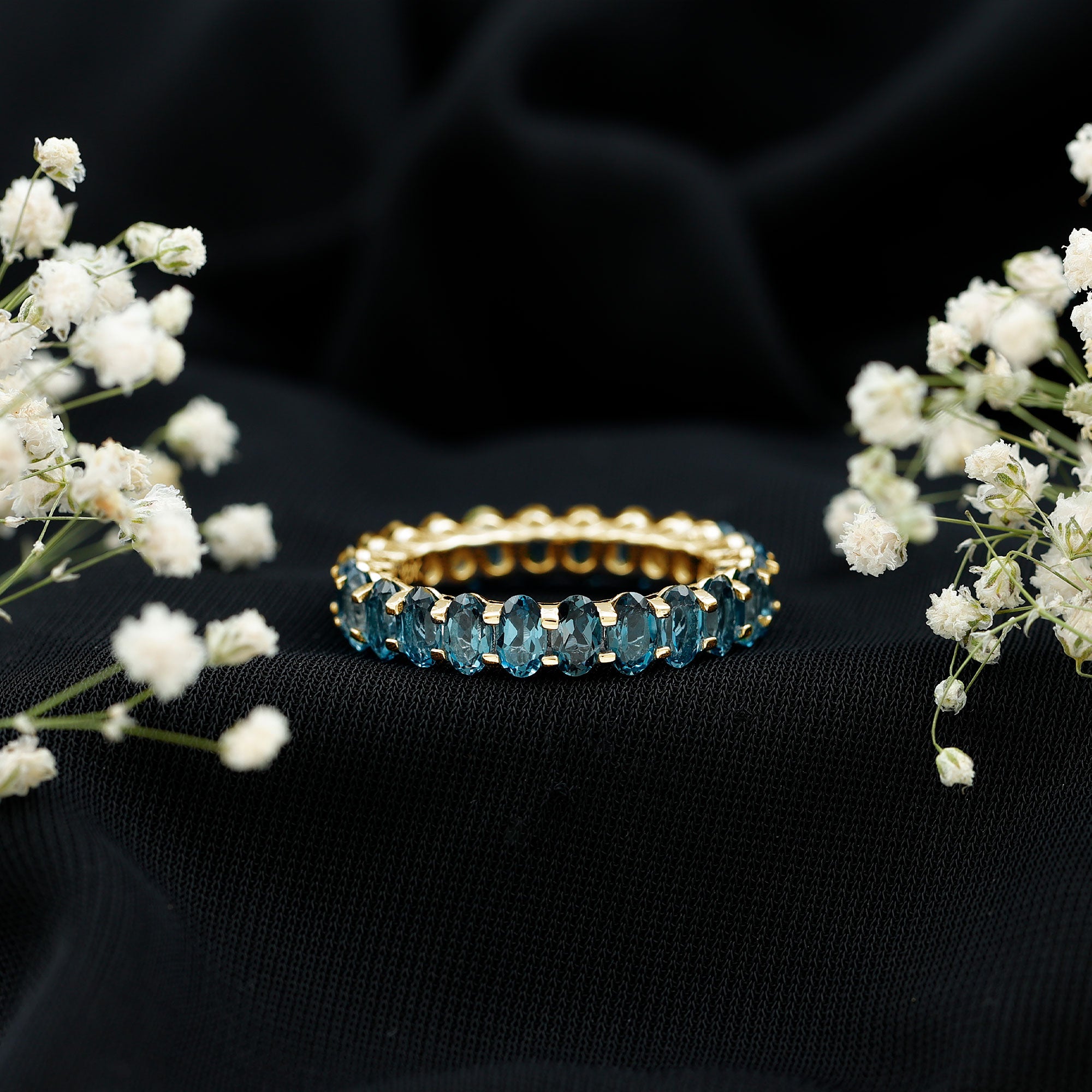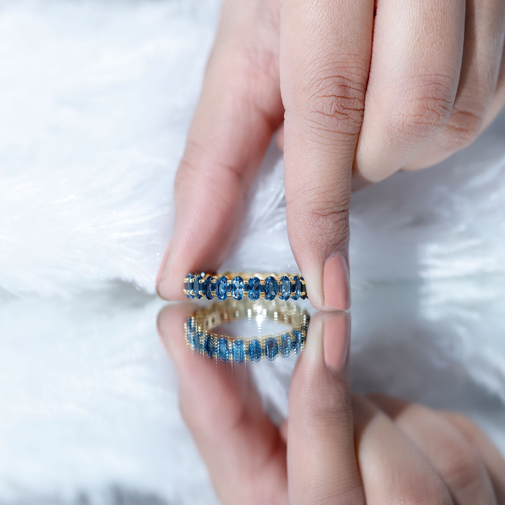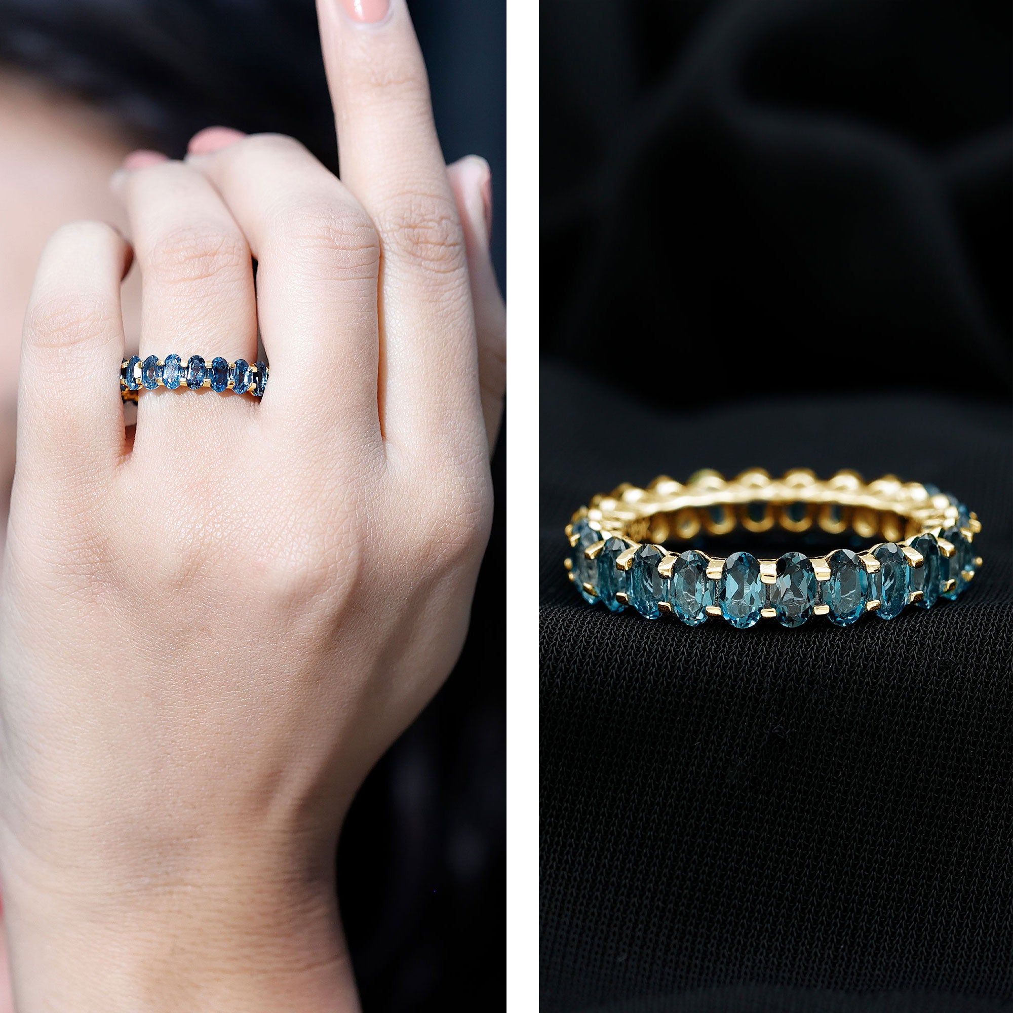 Enhance your elegance with a burst of vibrant color from this Real London Blue Topaz Ring. It showcases an Oval Shaped London Blue Topaz set in a prong setting, complemented by a continuous band that exhibits a captivating hue reminiscent of the tranquil depths of the ocean. This Eternity Wedding Ring embodies love, commitment, and treasured memories. It can be worn alone to make a bold statement, serving as a versatile piece that introduces a splash of color and sophistication to any outfit. As a stunning tribute to color and connection, this oval eternity ring represents your unbreakable bond and features AAA Quality London Blue Topaz gemstone. Whether you are attracted to its eye-catching design or the meaning behind the stones, this Blue Topaz Wedding Band adds a unique touch to your daily style. It is ideal for stacking or wearing alone, providing a look that is both classic and contemporary. Carefully designed for comfort and longevity, it serves as a delightful gift for anyone who values unique jewelry with purpose. Offered in various sizes and metal finishes, it is simple to select one that aligns with your personal preferences. From informal gatherings to significant events, this Wedding Anniversary Ring exudes a subtle elegance that endures.