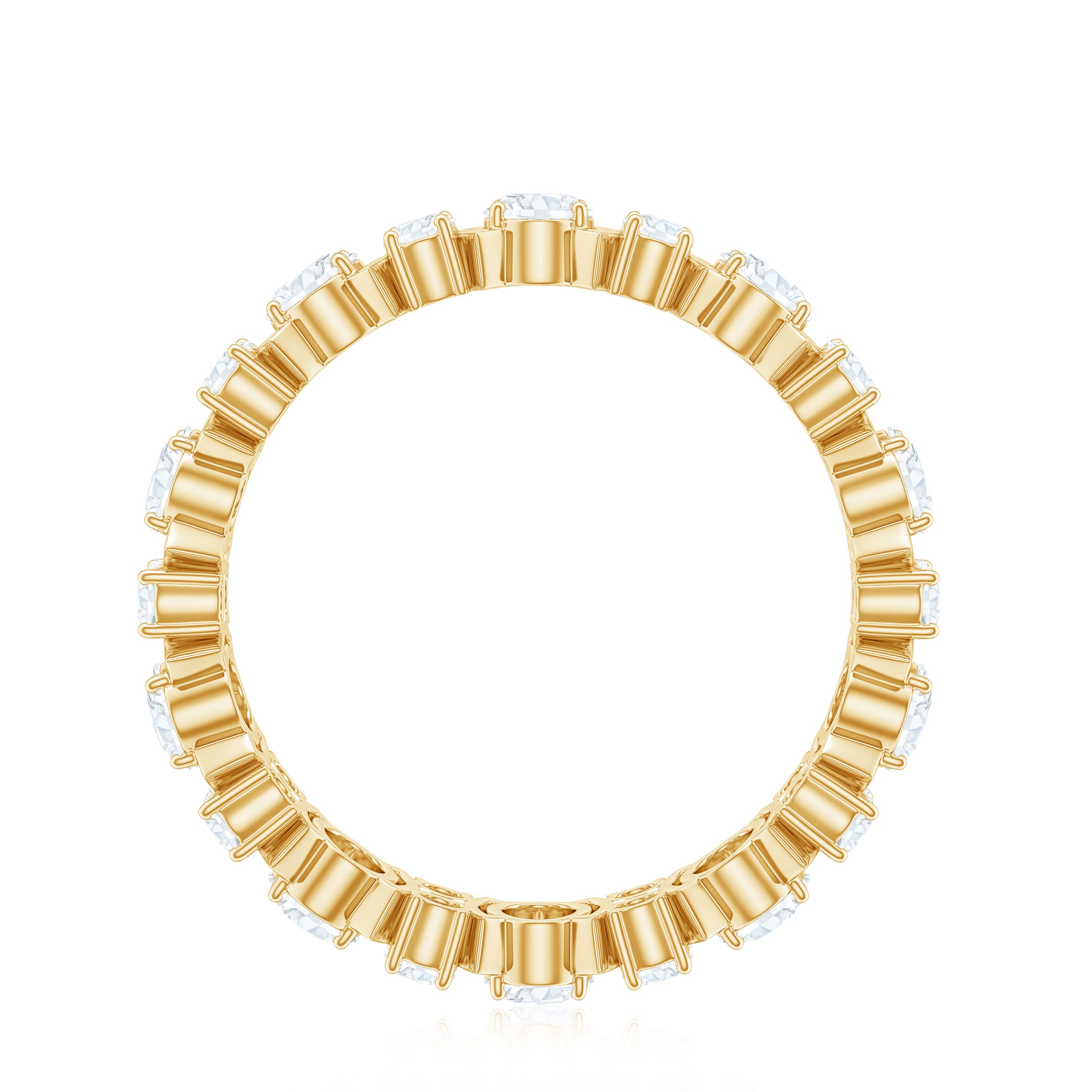 This Moissanite Eternity Band perfectly blends a unique design with everyday elegance. It is crafted for those who appreciate modern sparkle with a touch of tradition. This Eternity Wedding Band showcases a stunning row of alternating oval and round moissanite stones. Each stone boasts D color and VS1 clarity, meaning they are incredibly clean and full of brilliance. Expertly prong set, these gems reflect light beautifully from every angle, making this Oval Eternity Ring a standout piece whether worn solo or stacked with other rings. It is perfect as a wedding band, anniversary band, or a special stacking ring, offering versatility and comfort for daily wear. The full eternity design ensures that this Wedding Anniversary Band dazzles from every angle and symbolizes a circle of love without any end. Whether you are marking a special occasion or simply treating yourself to something timeless yet trendy, this Moissanite Wedding Band is an excellent choice. Its minimal yet eye catching design is a hit among modern brides and jewelry enthusiasts alike.