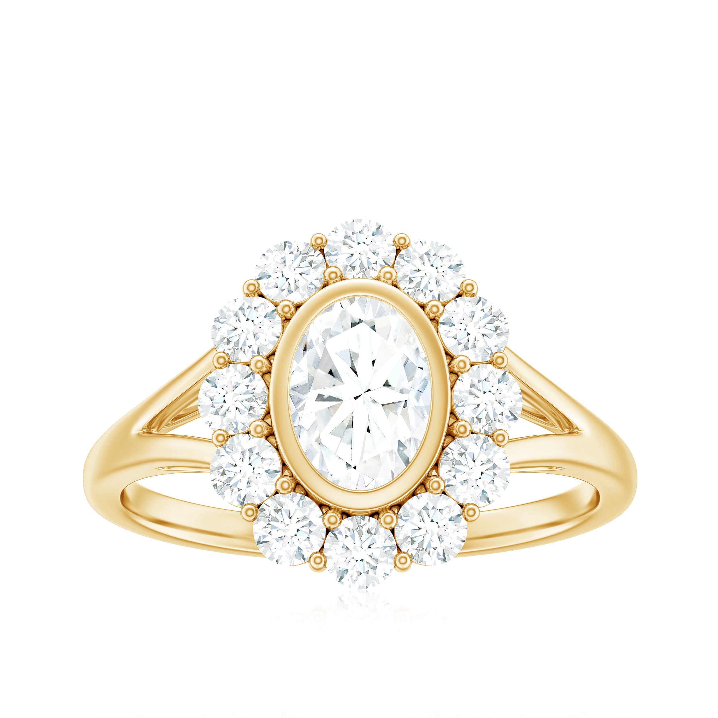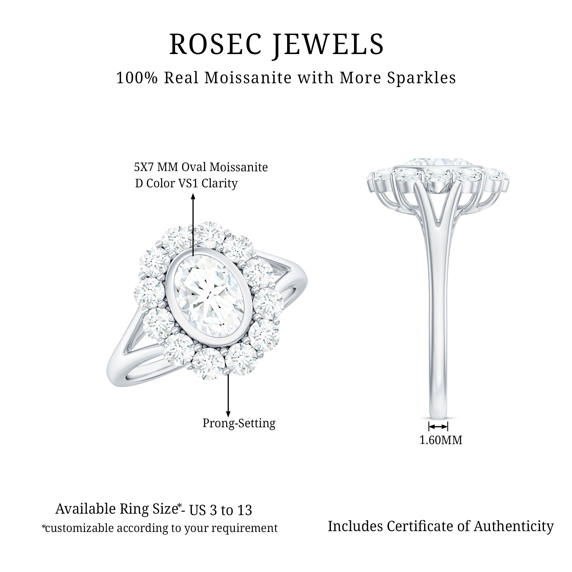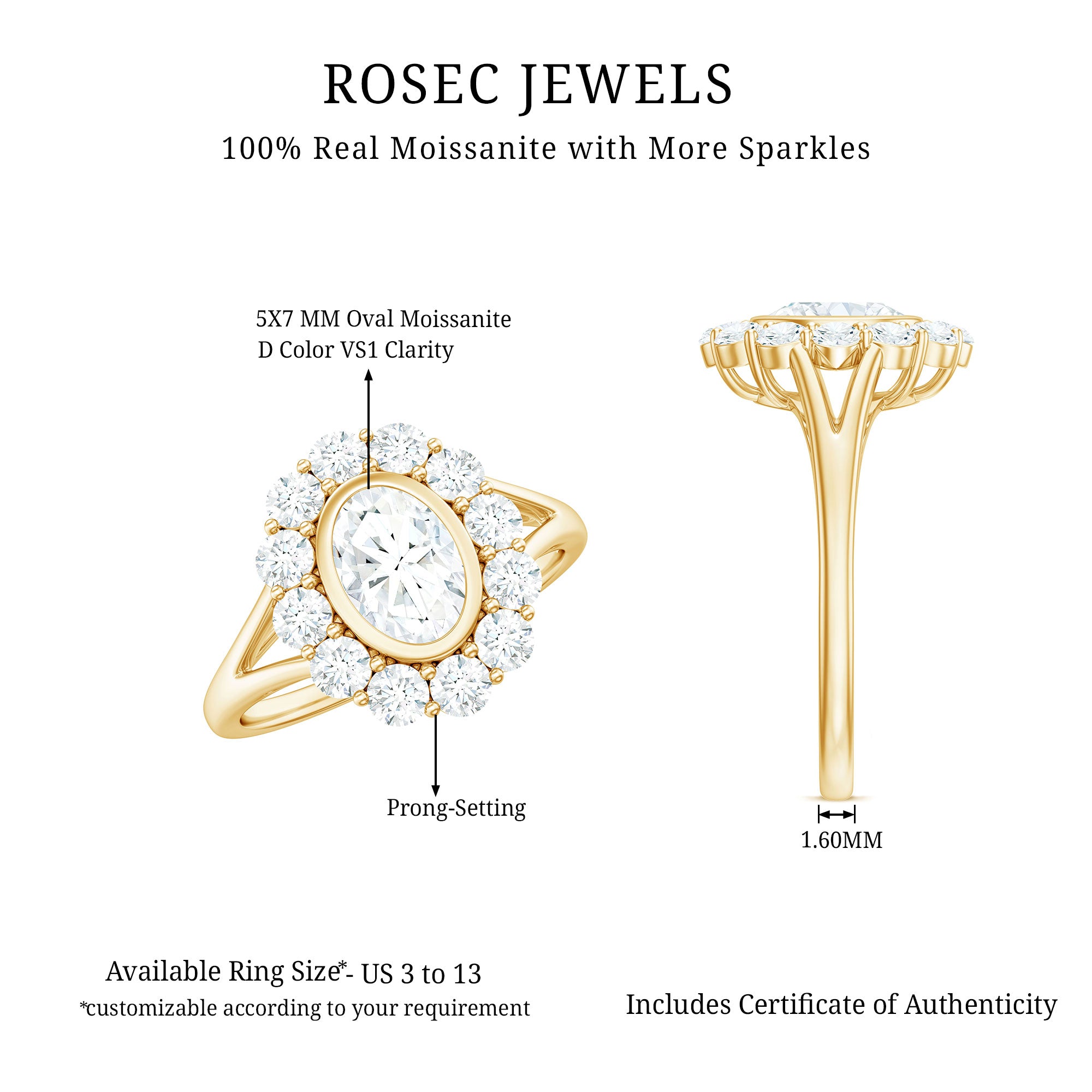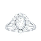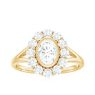 Oval Cut Moissanite Halo Engagement Ring with Split Shank