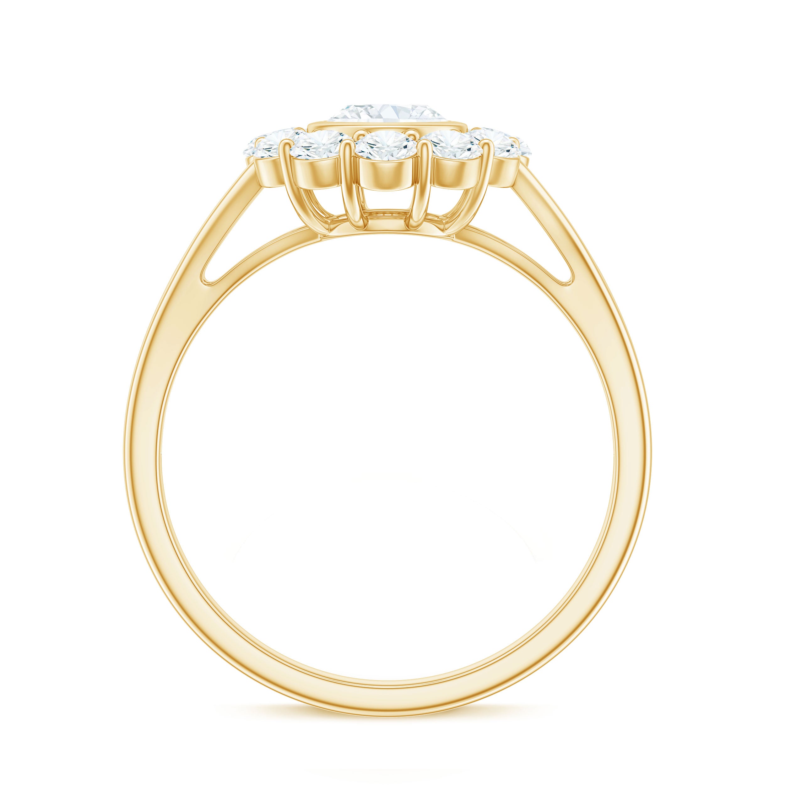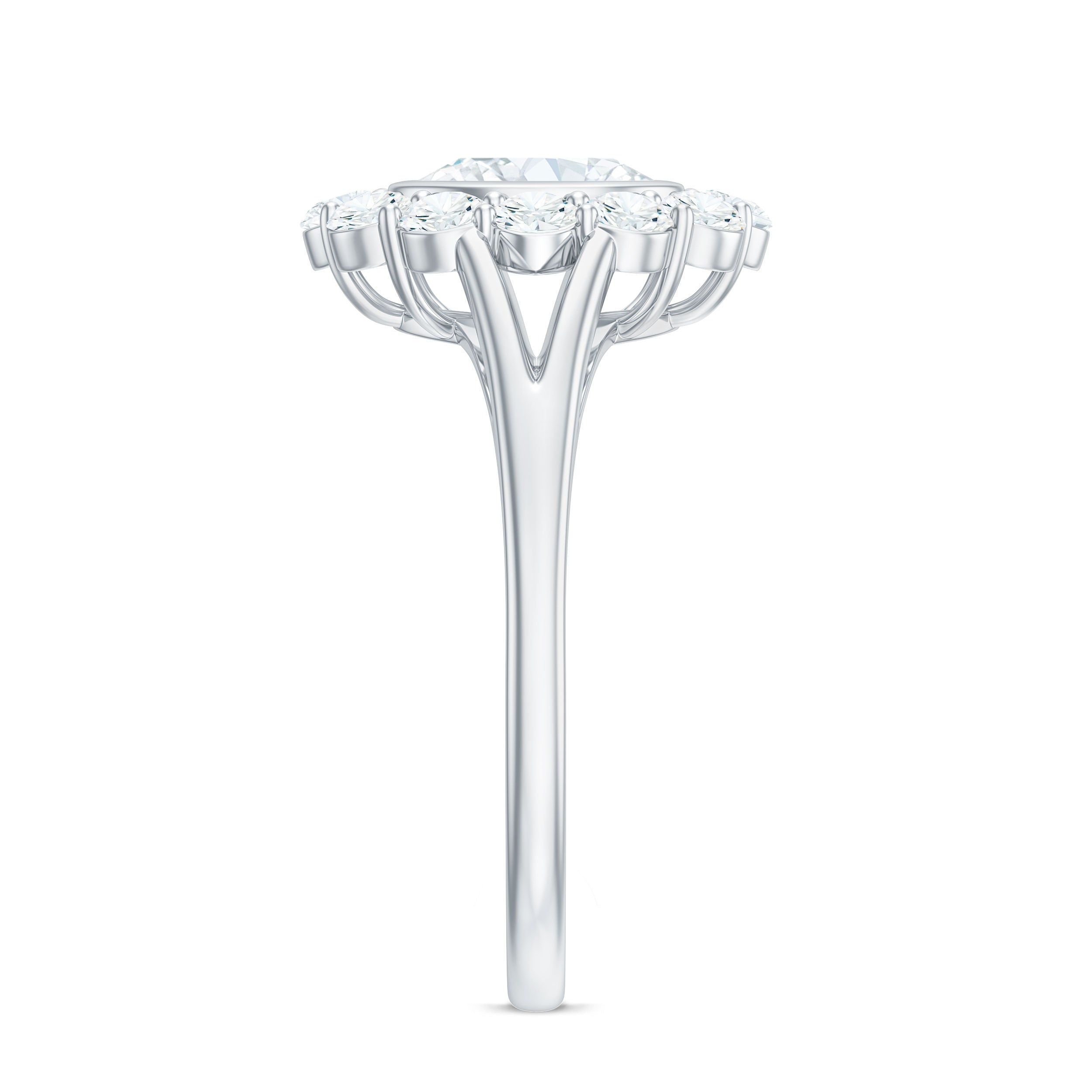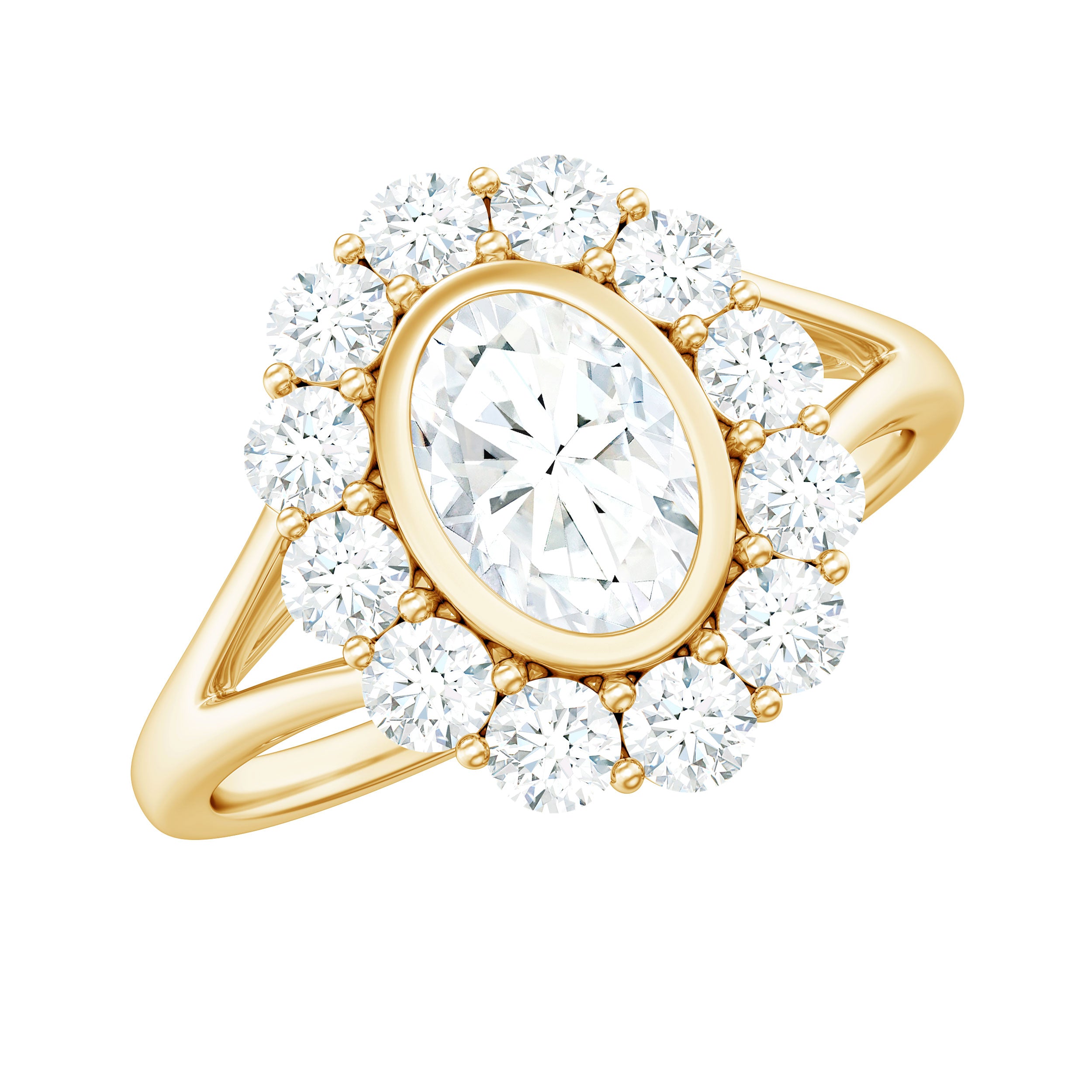 Oval Cut Moissanite Halo Engagement Ring with Split Shank
