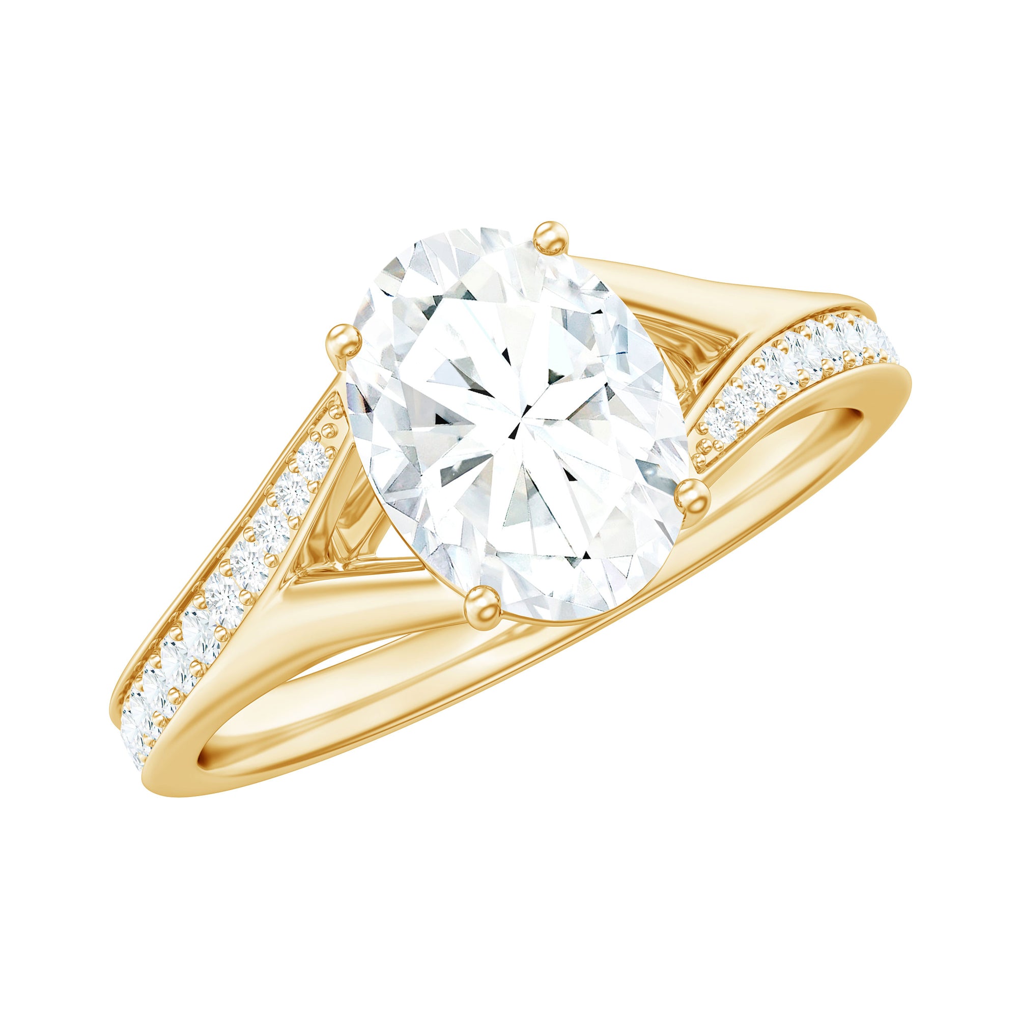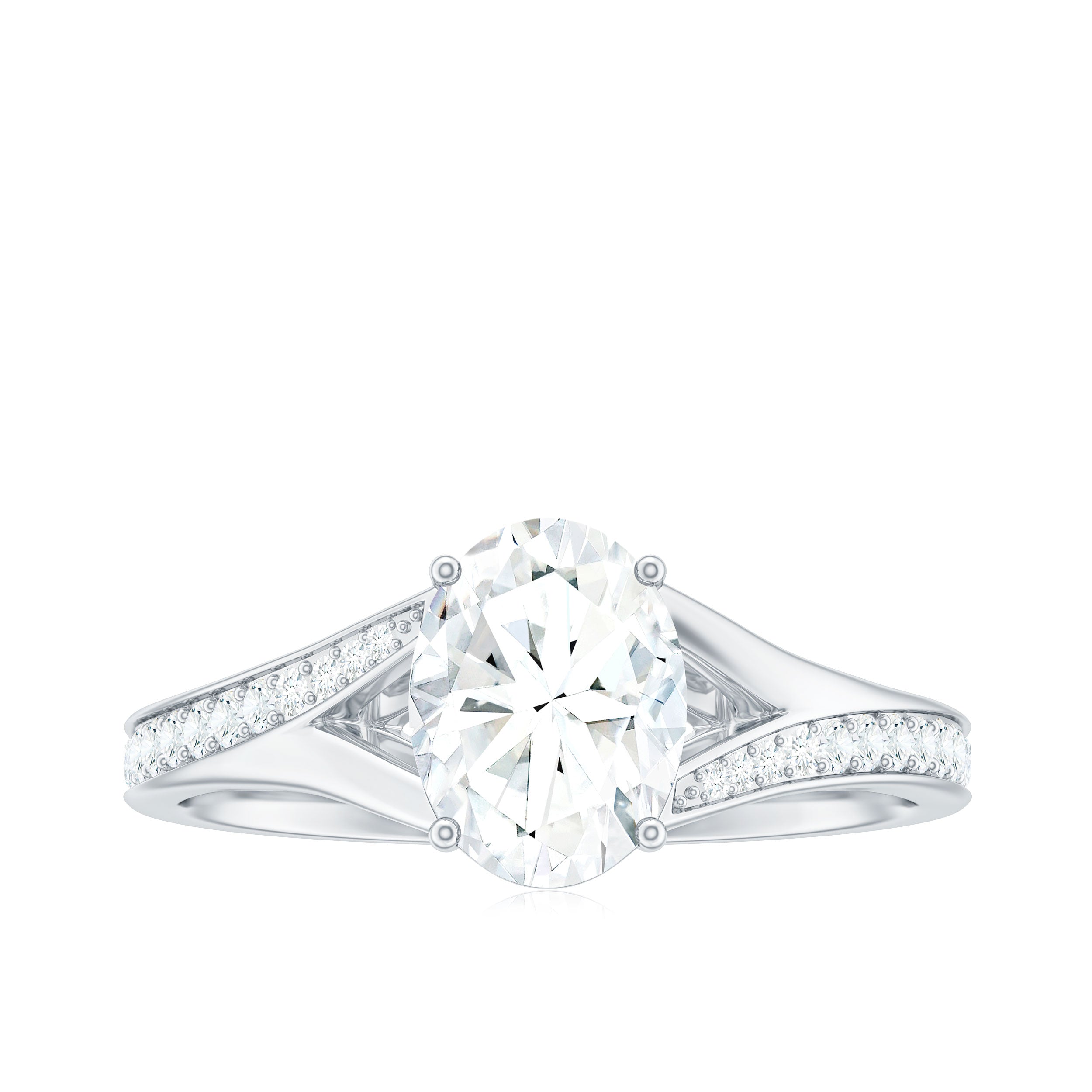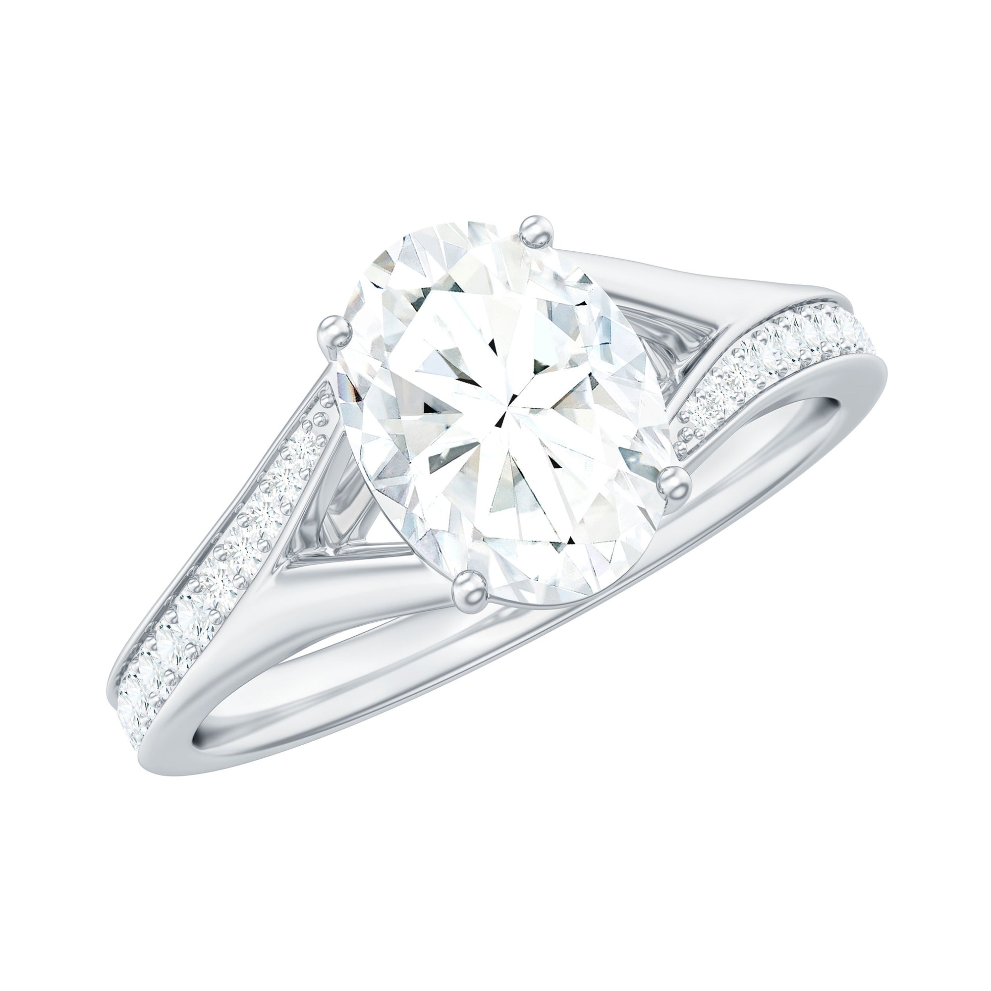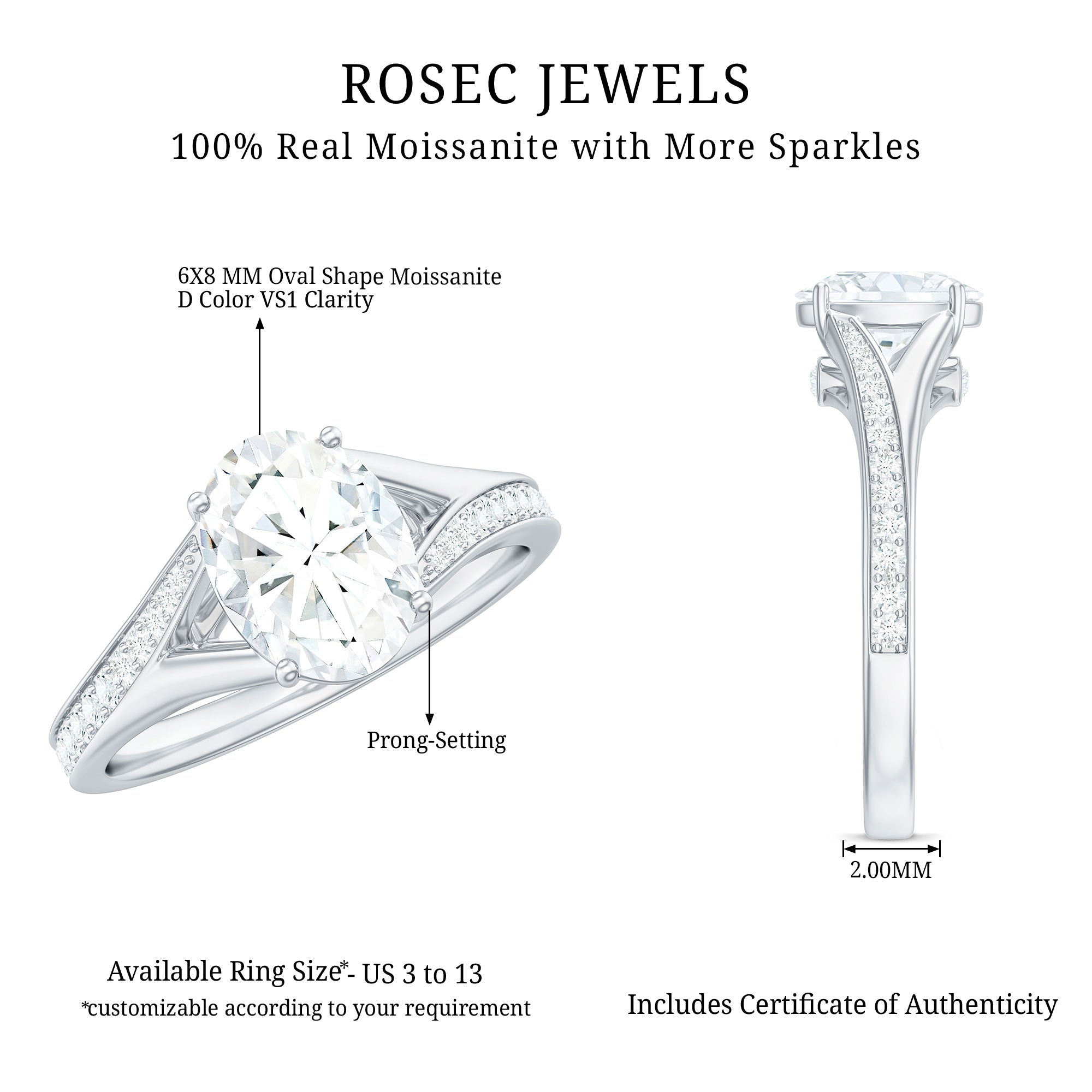 6x8mm Oval Cut Moissanite Solitaire Engagement Ring with Split Shank