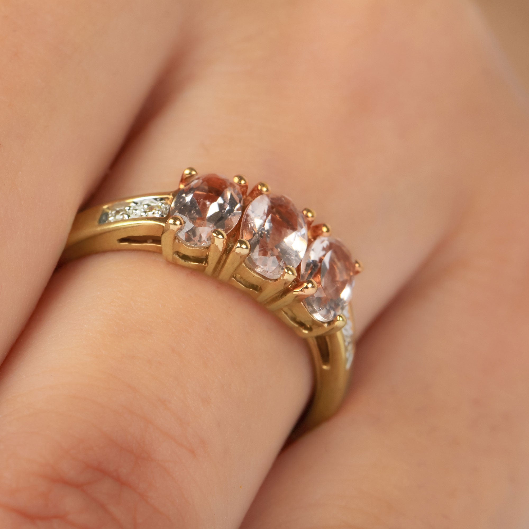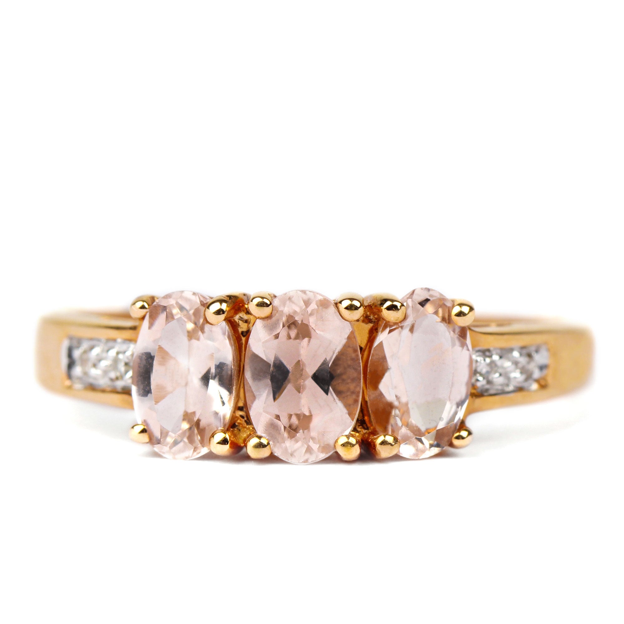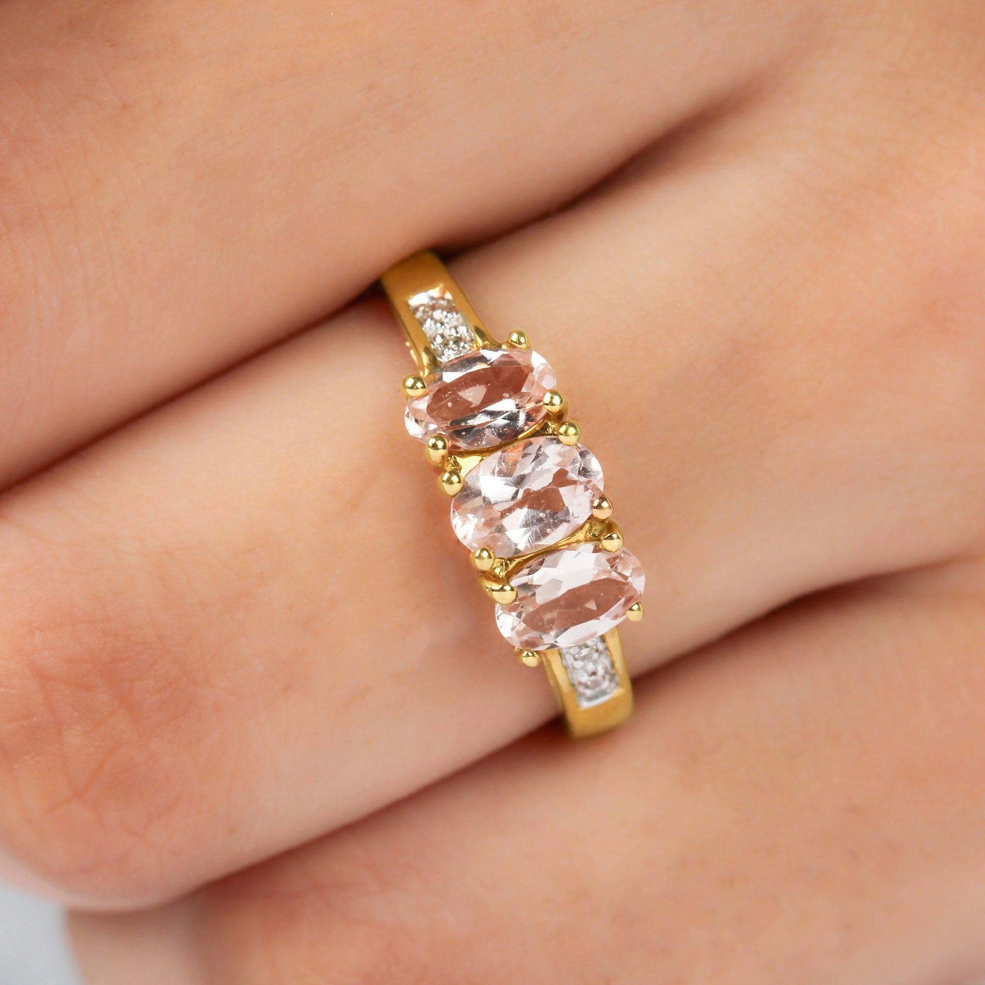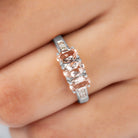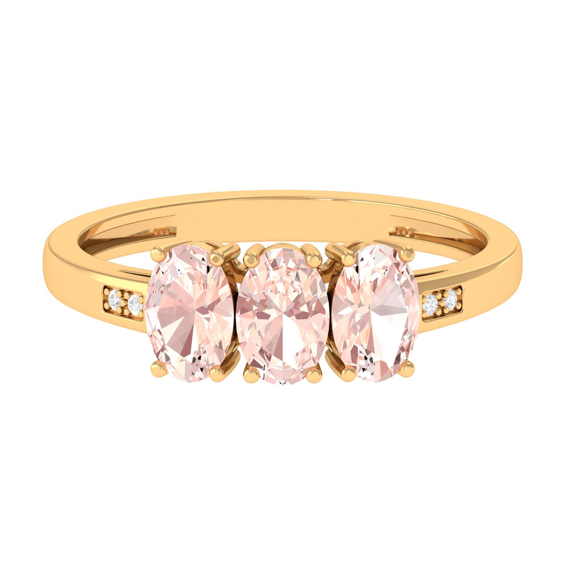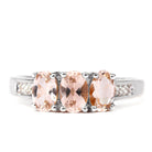Oval Cut Morganite Three Stone Engagement Ring with Diamond