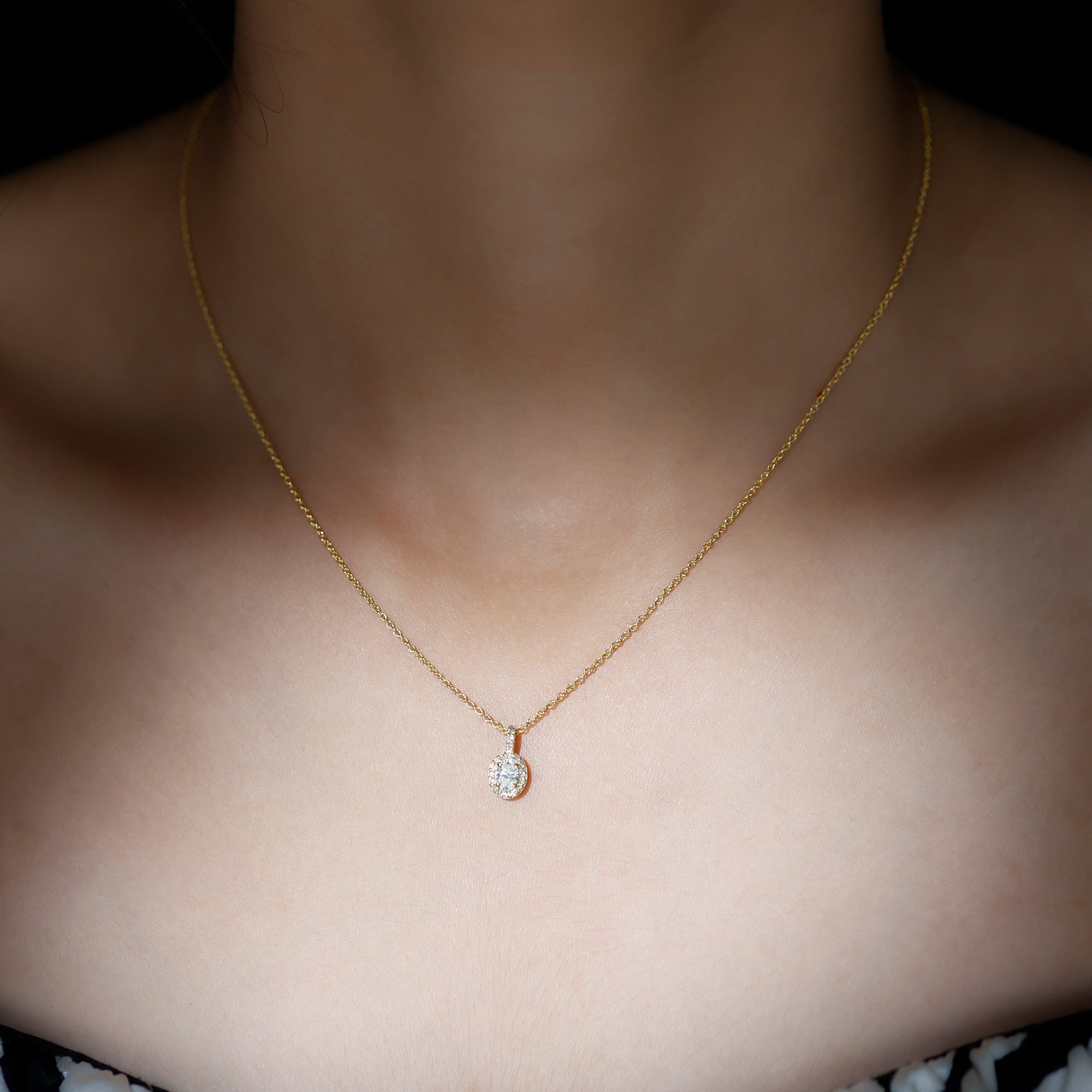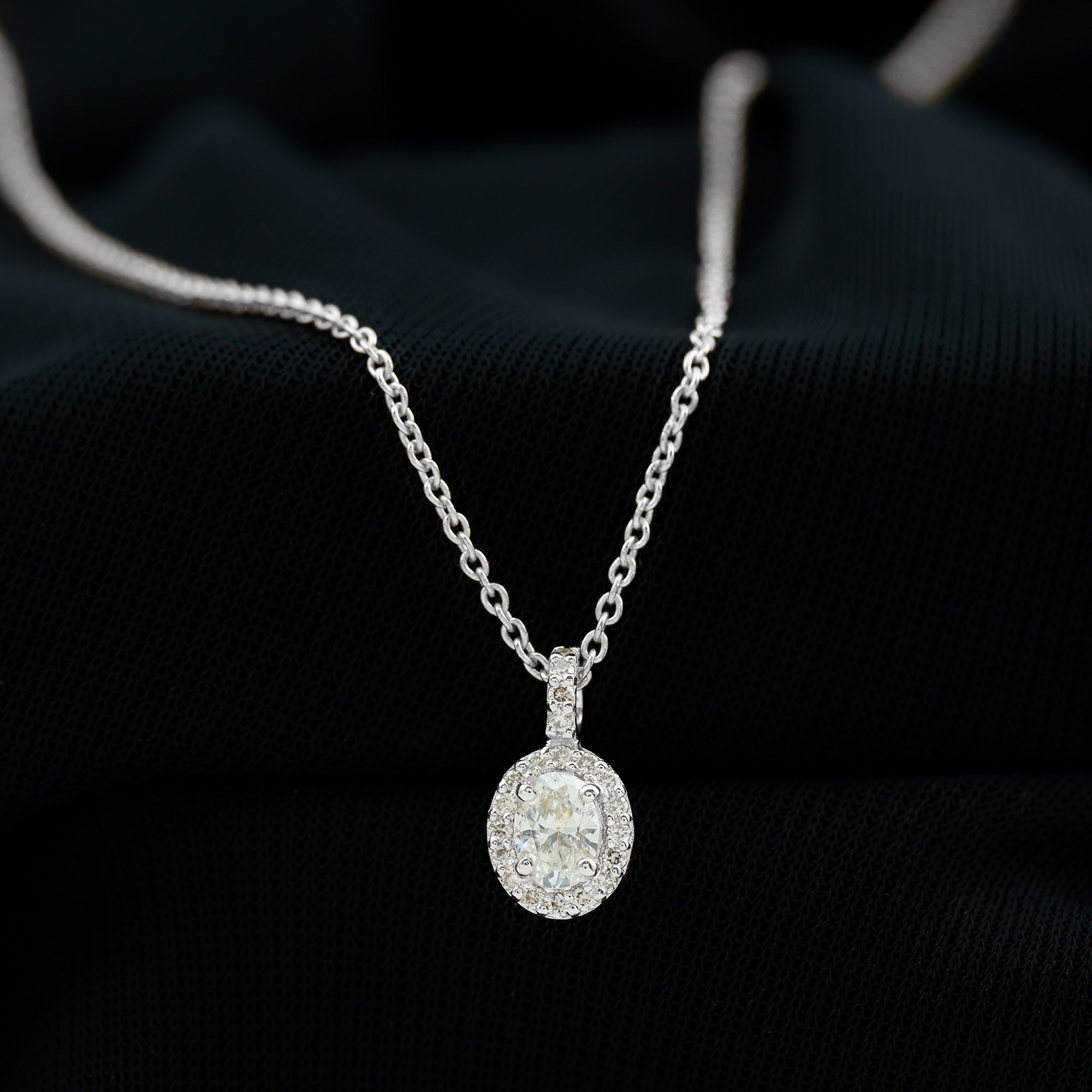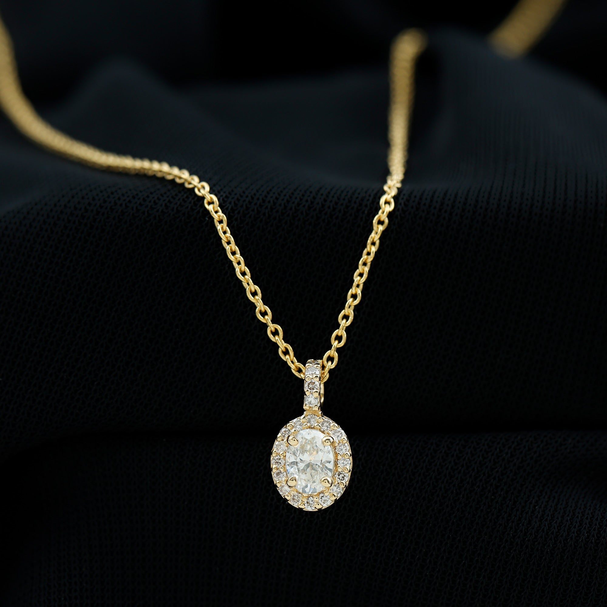 Get this Diamond Halo Necklace for your special one bejeweled with an Oval Cut Diamond while dainty Round Cut Diamonds studded as Halo.
