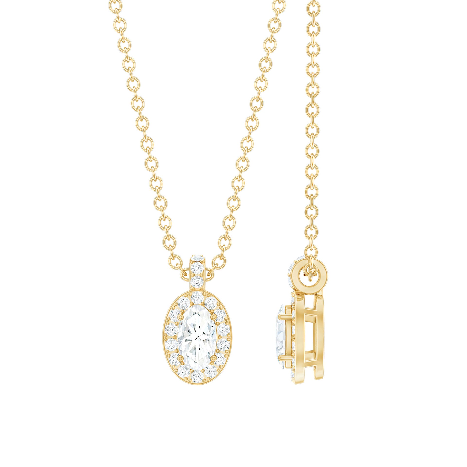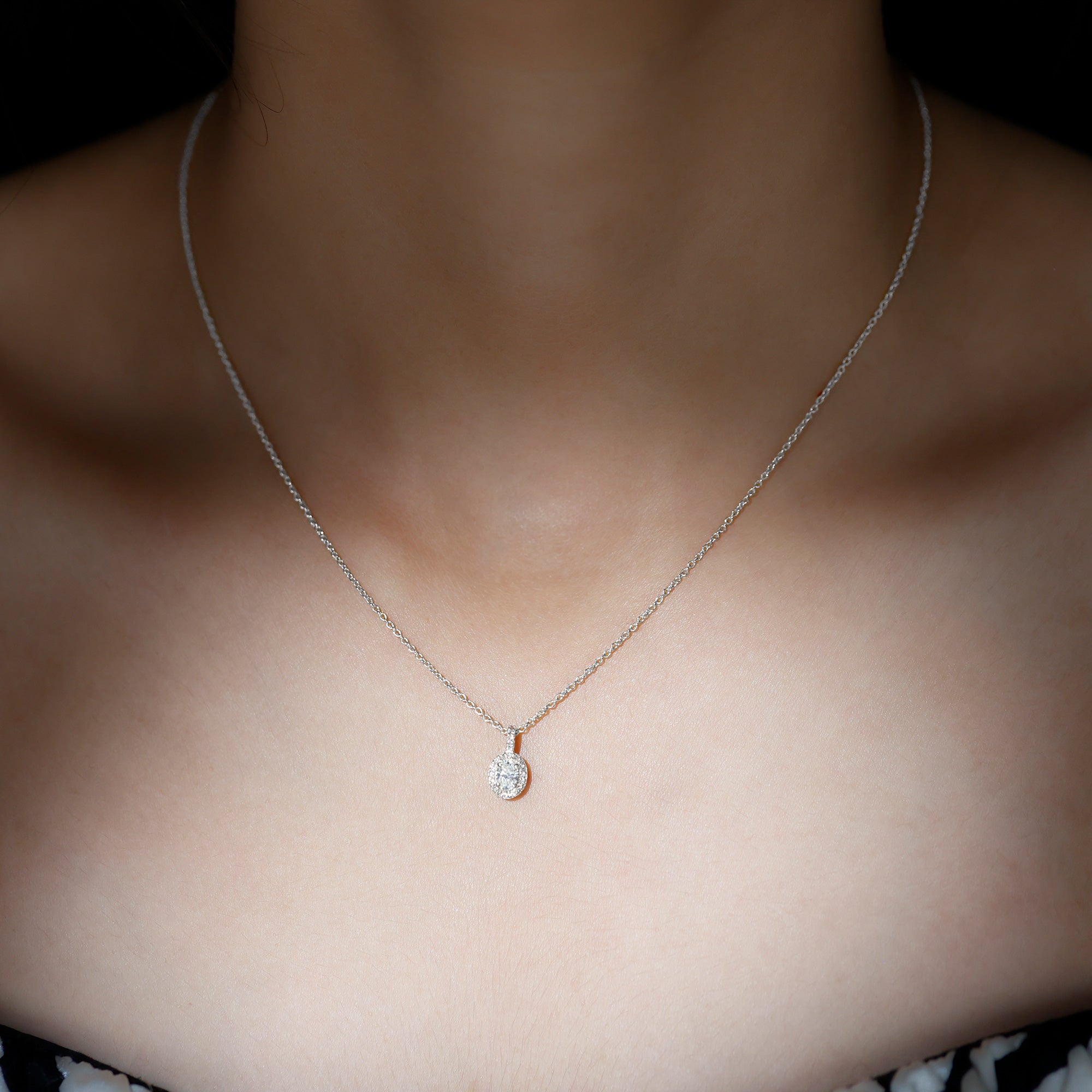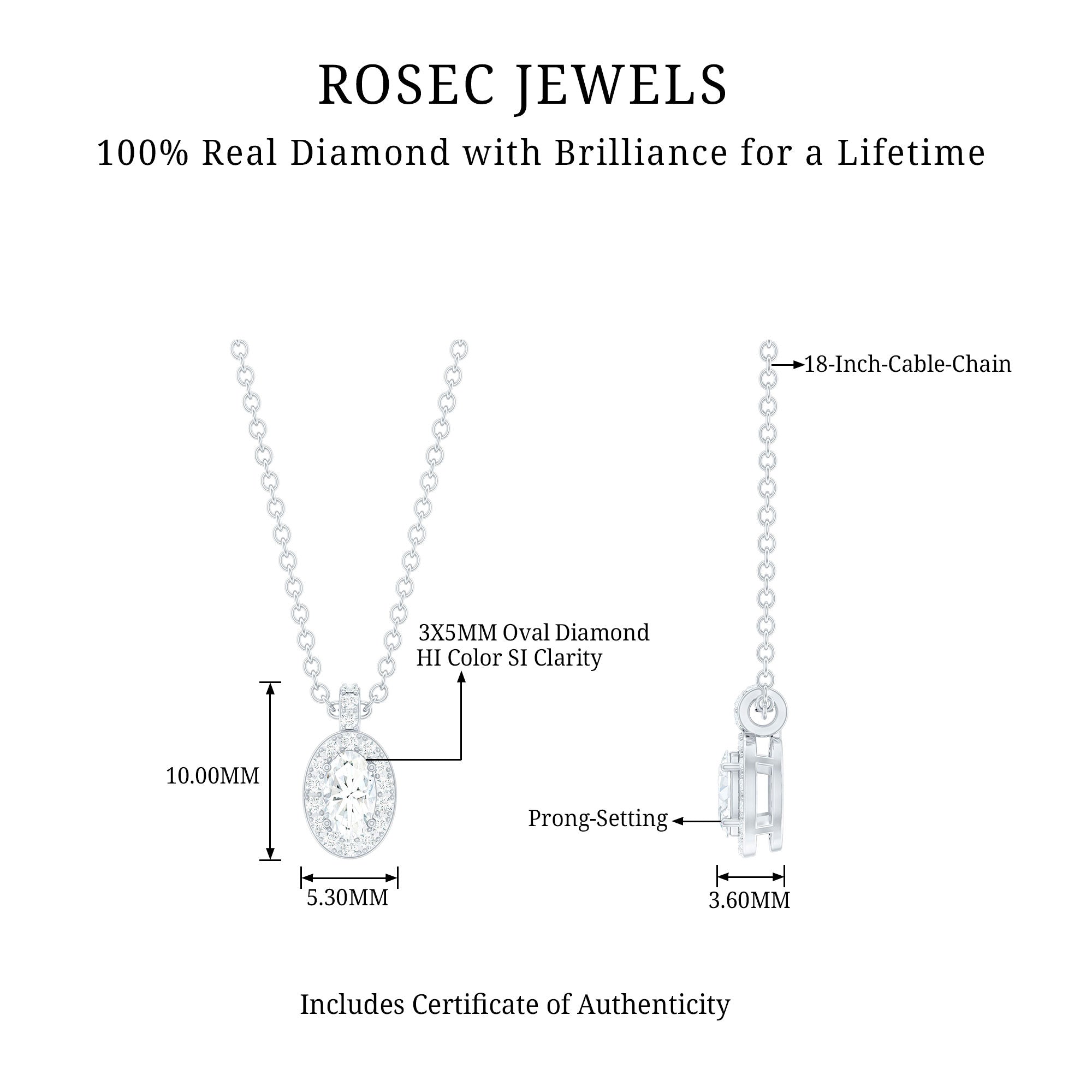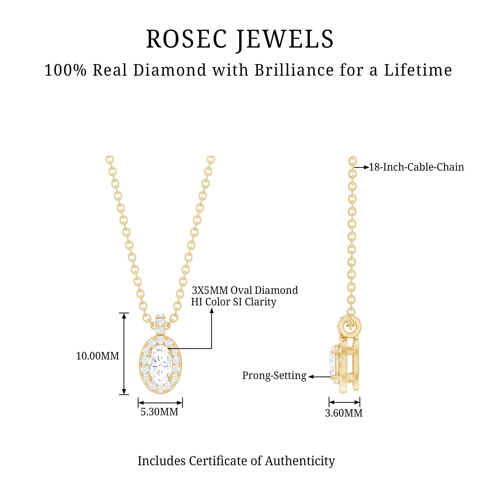 Get this Diamond Halo Necklace for your special one bejeweled with an Oval Cut Diamond while dainty Round Cut Diamonds studded as Halo.
