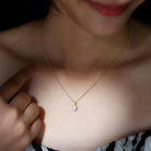 Get this Diamond Halo Necklace for your special one bejeweled with an Oval Cut Diamond while dainty Round Cut Diamonds studded as Halo.
