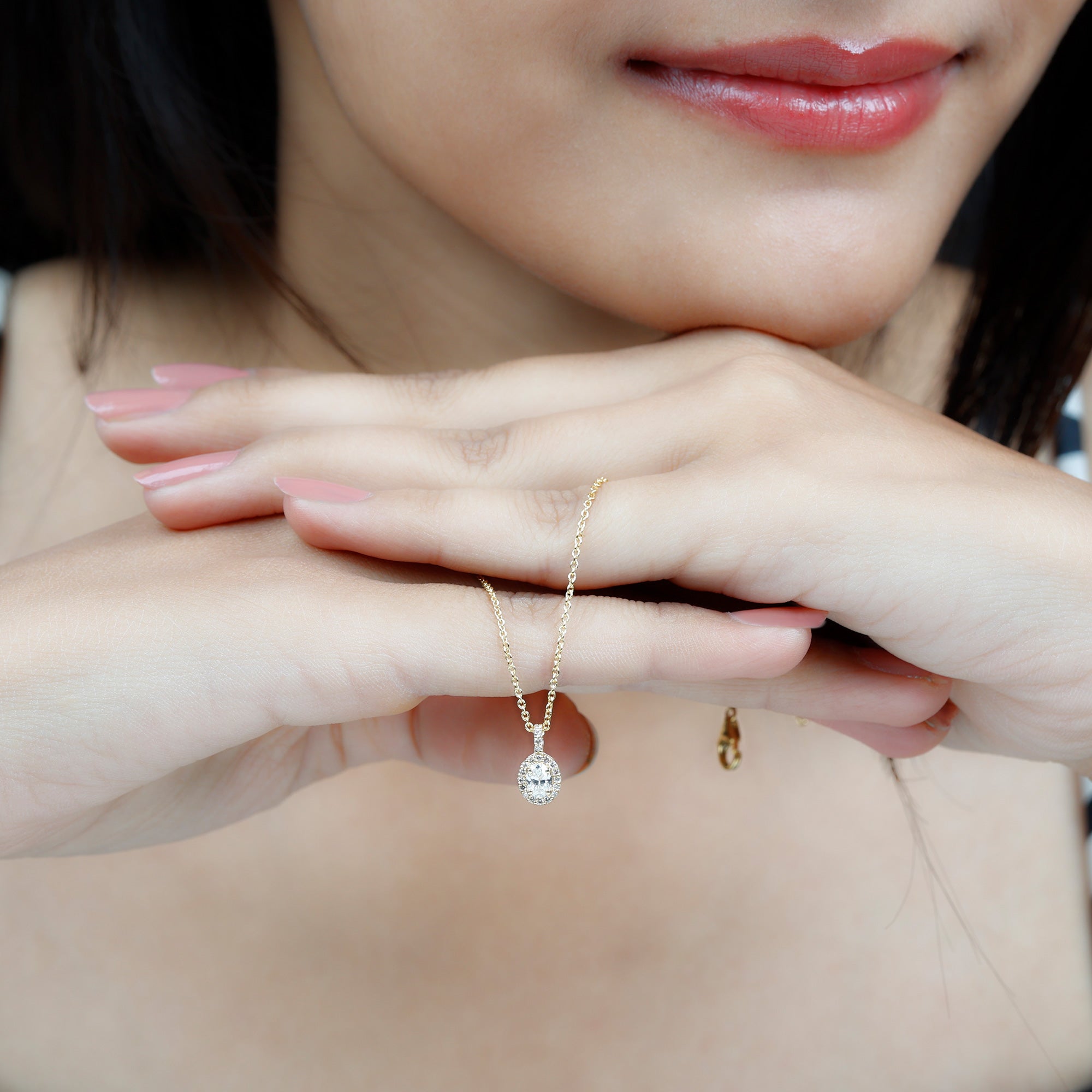 Oval Cut Real Diamond Halo Pendant
