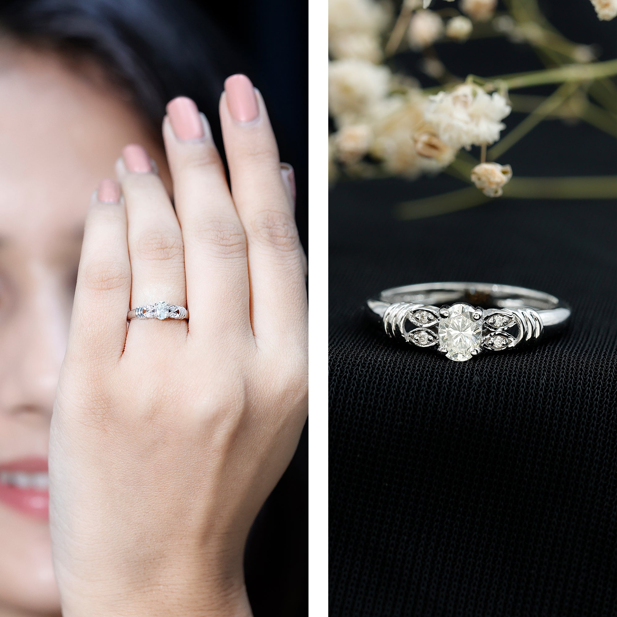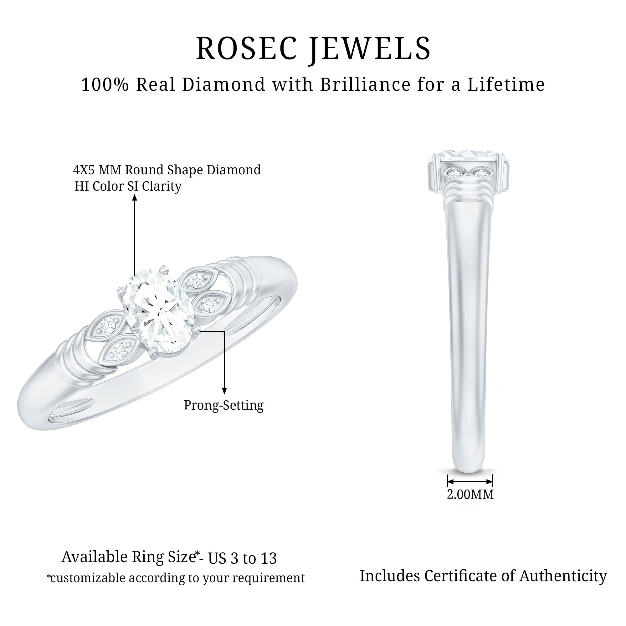 This timeless piece of Diamond Ring is an elegant jewelry for your everyday. The Oval Cut Diamond in Prong Setting with round gemstone on Solitaire Band.