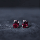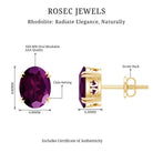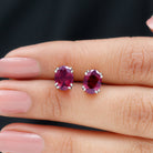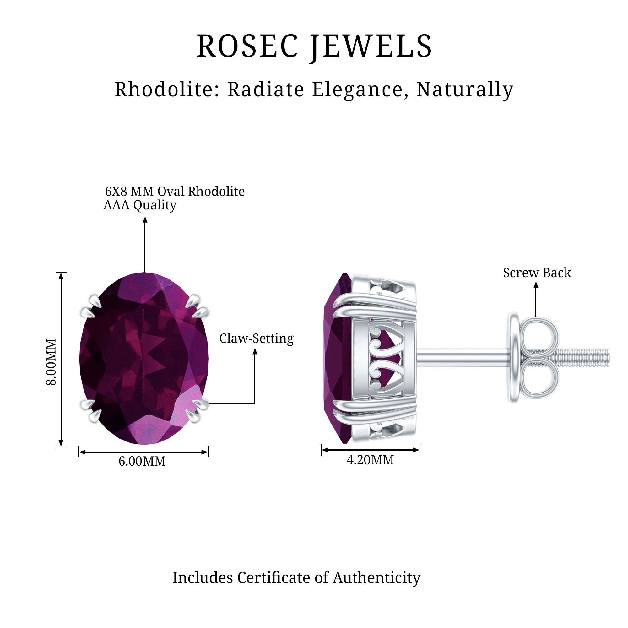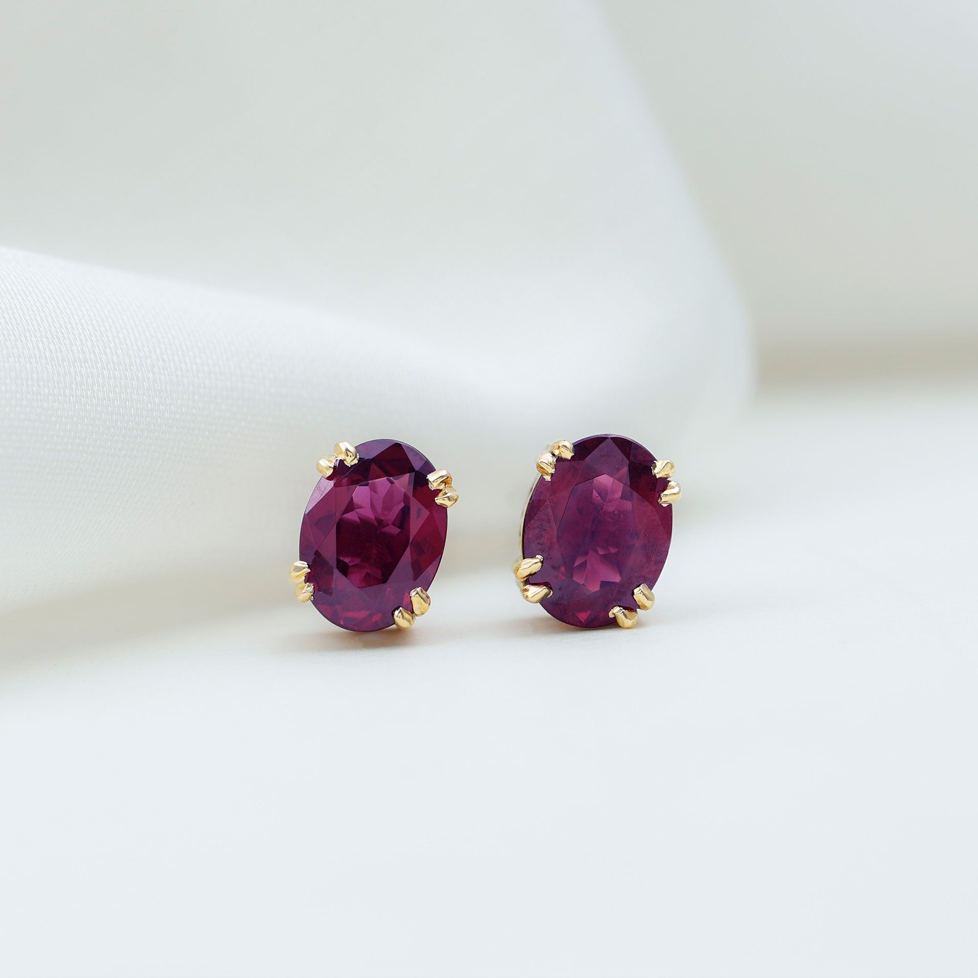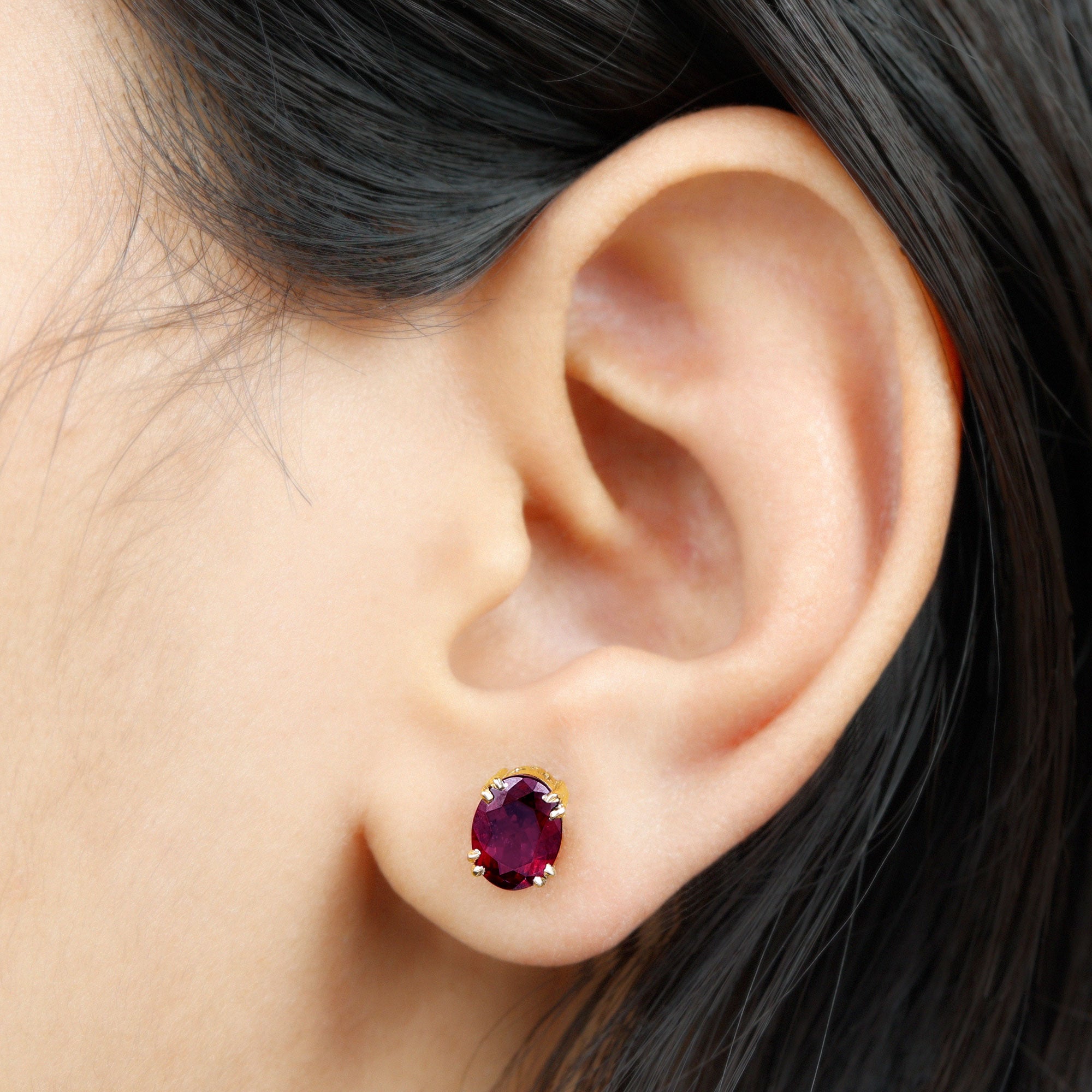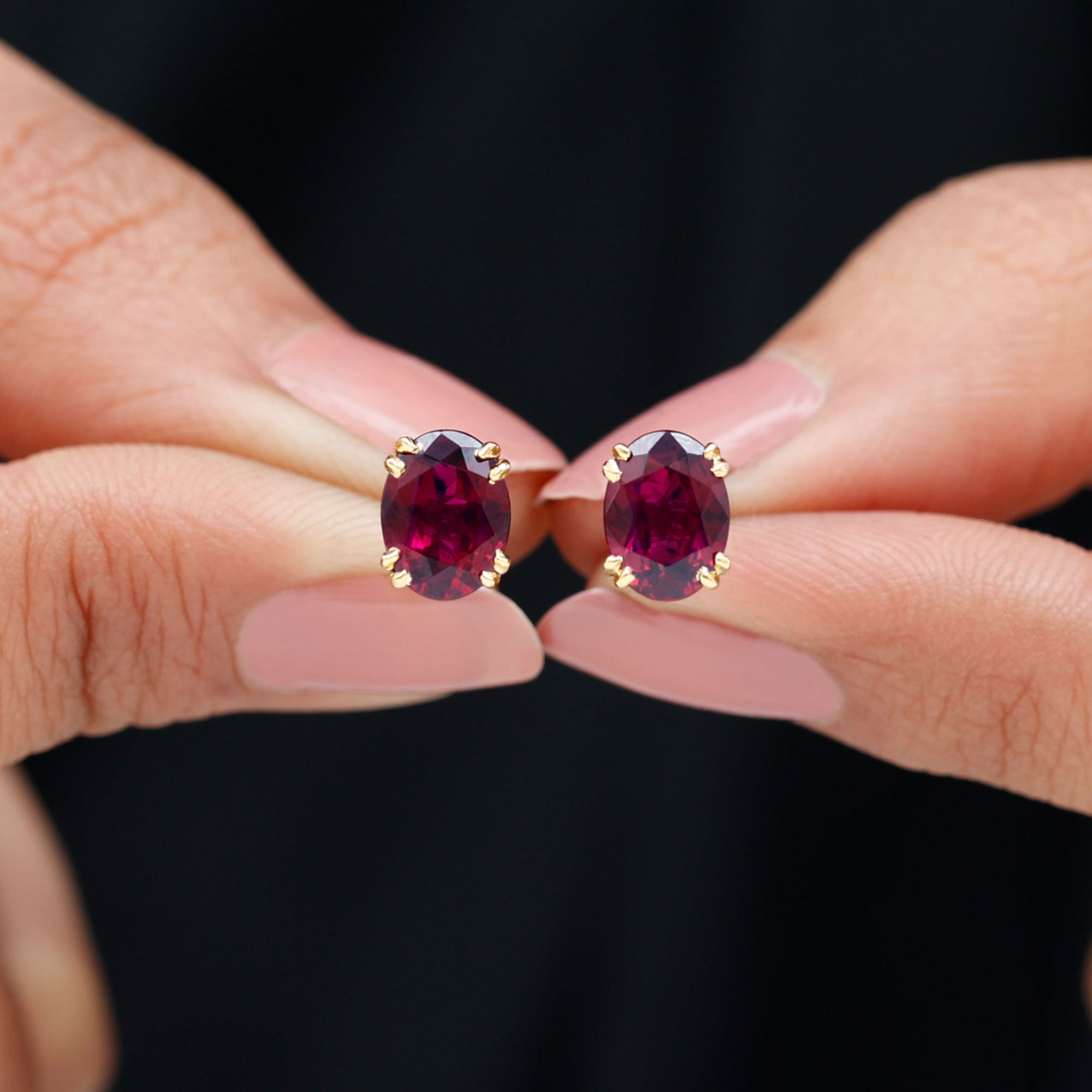 Oval Cut Rhodolite Solitaire Stud Earrings in Double Claw Setting