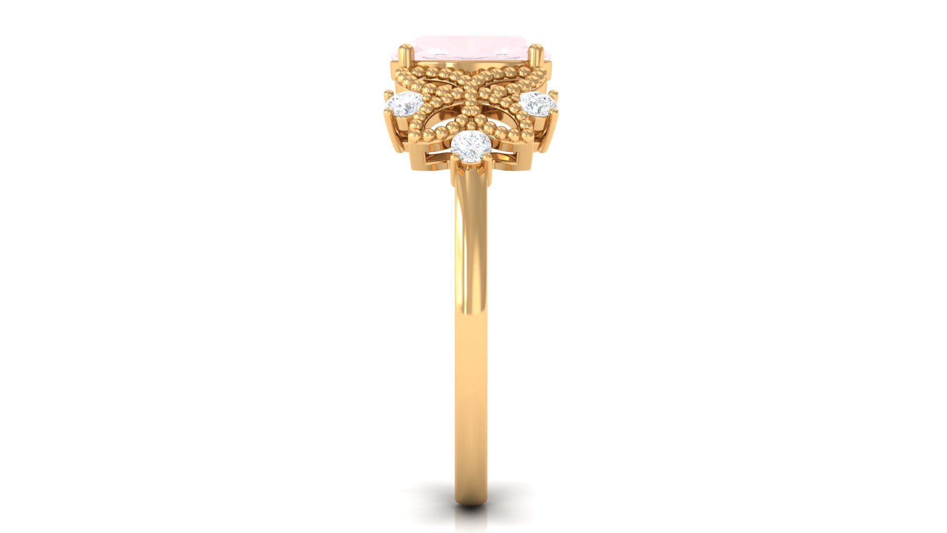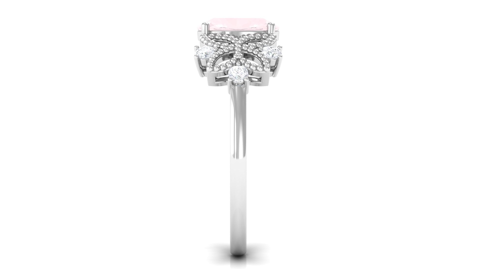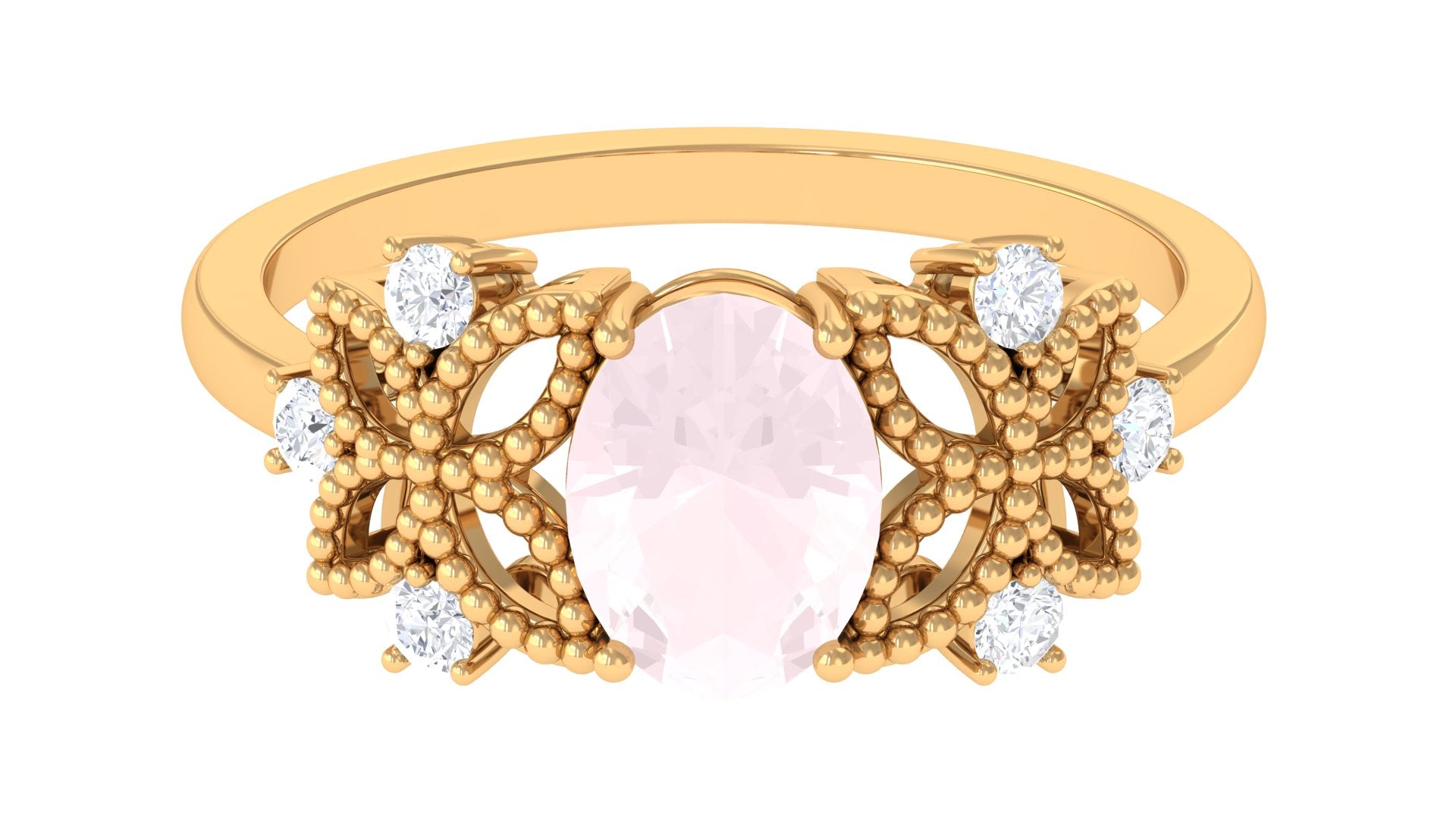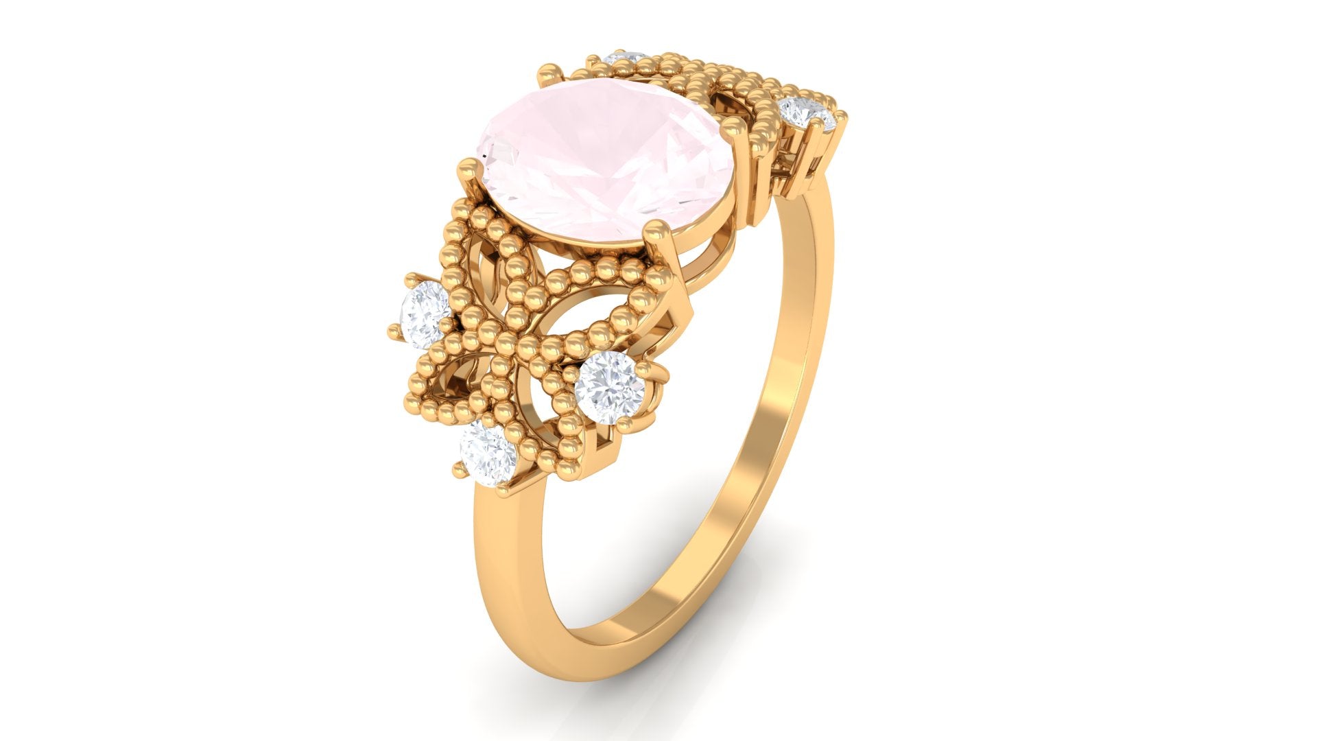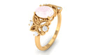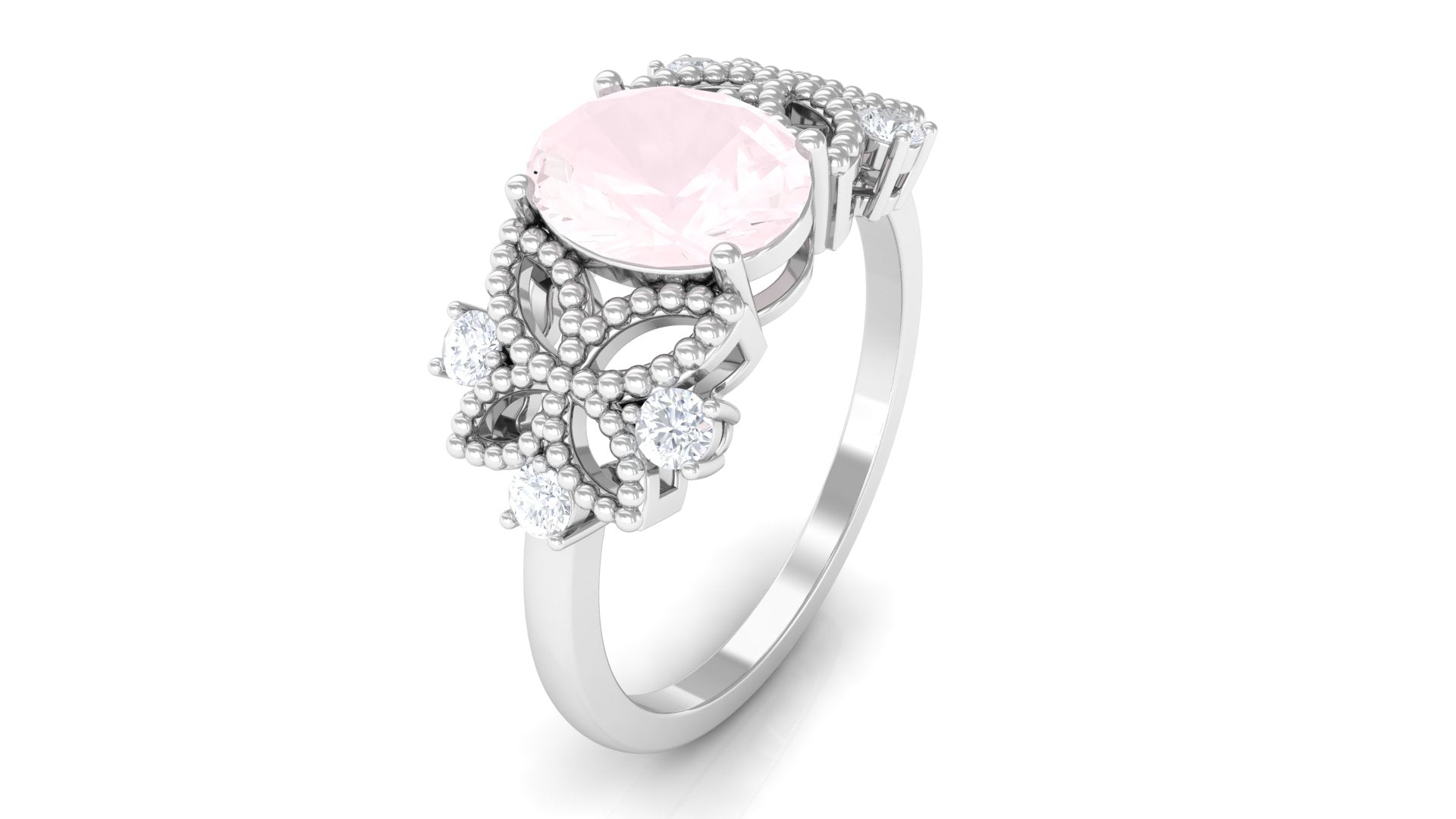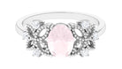 Oval Cut Rose Quartz Beaded Flower Engagement Ring with Diamond