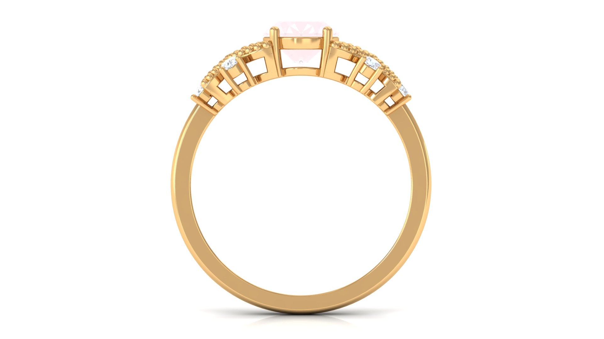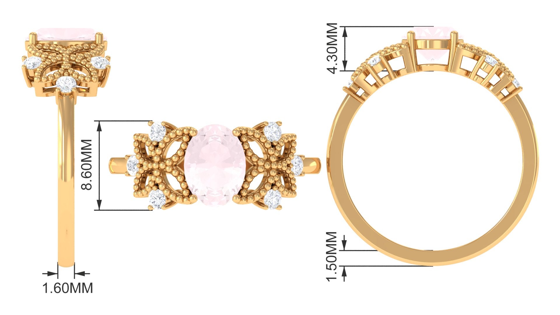 This Rose Quartz Solitaire Ring is simply mesmerizing and perfect for making a stylish statement. The flower engagement ring features a stunning oval-shaped rose quartz gemstone set in the center, with Diamond accents adding extra sparkle to the piece. The Rose Quartz ring is crafted from solid gold and features a unique beaded flower motif, adding to its exquisite beauty. This captivating ring is an ideal choice for women who want to add a touch of elegance and sophistication to their jewelry collection.