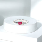 Make a bold statement with the Ruby Promise Ring, a dazzling symbol of love and commitment. This trendsetting Ring showcases a stunning 4X6 MM Oval Shape Ruby, renowned for its rich, deep red hue and mesmerizing brilliance. Nestled in a sleek and contemporary band the Ruby commands attention with its striking elegance and vivid color. The Oval Shape Ruby is set to maximize its fiery sparkle, making this Promise Ring for Her, a standout piece that radiates passion and sophistication. Its minimalist band design ensures the gemstone takes center stage. Perfect as a promise ring or a unique engagement ring, this Ruby and Diamond Ring is designed for those who appreciate timeless beauty and contemporary style. Celebrate your special bond with a ring that captures your love’s intensity and makes every moment unforgettable.