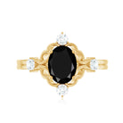 Treat your look with this lovely Gold Cocktail Engagement Ring adorned with Oval Shape Created Black Diamond set as a solitaire and Round Shape Diamond in a prong setting. This Solitaire Cocktail Ring is mounted in gold for a luxurious look.