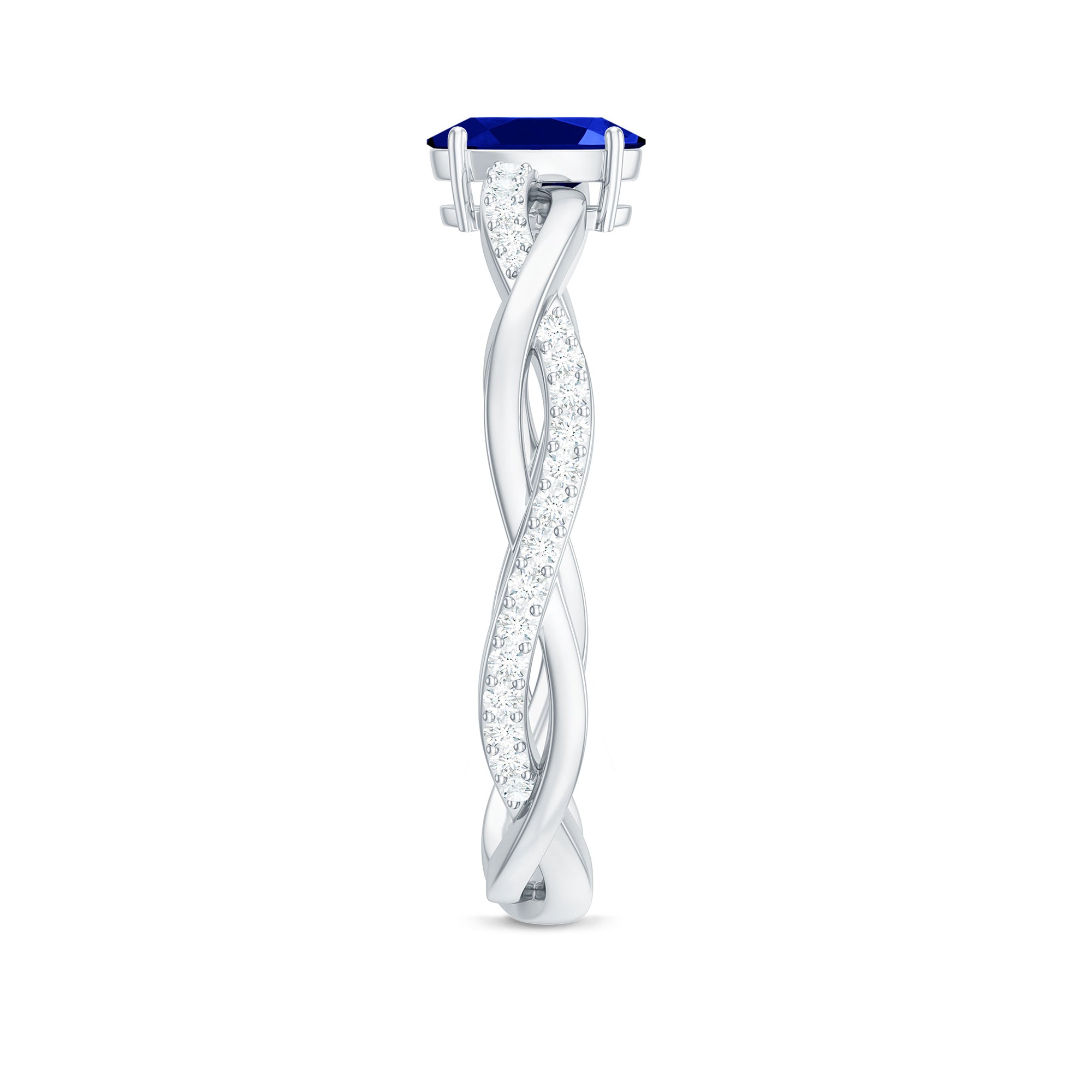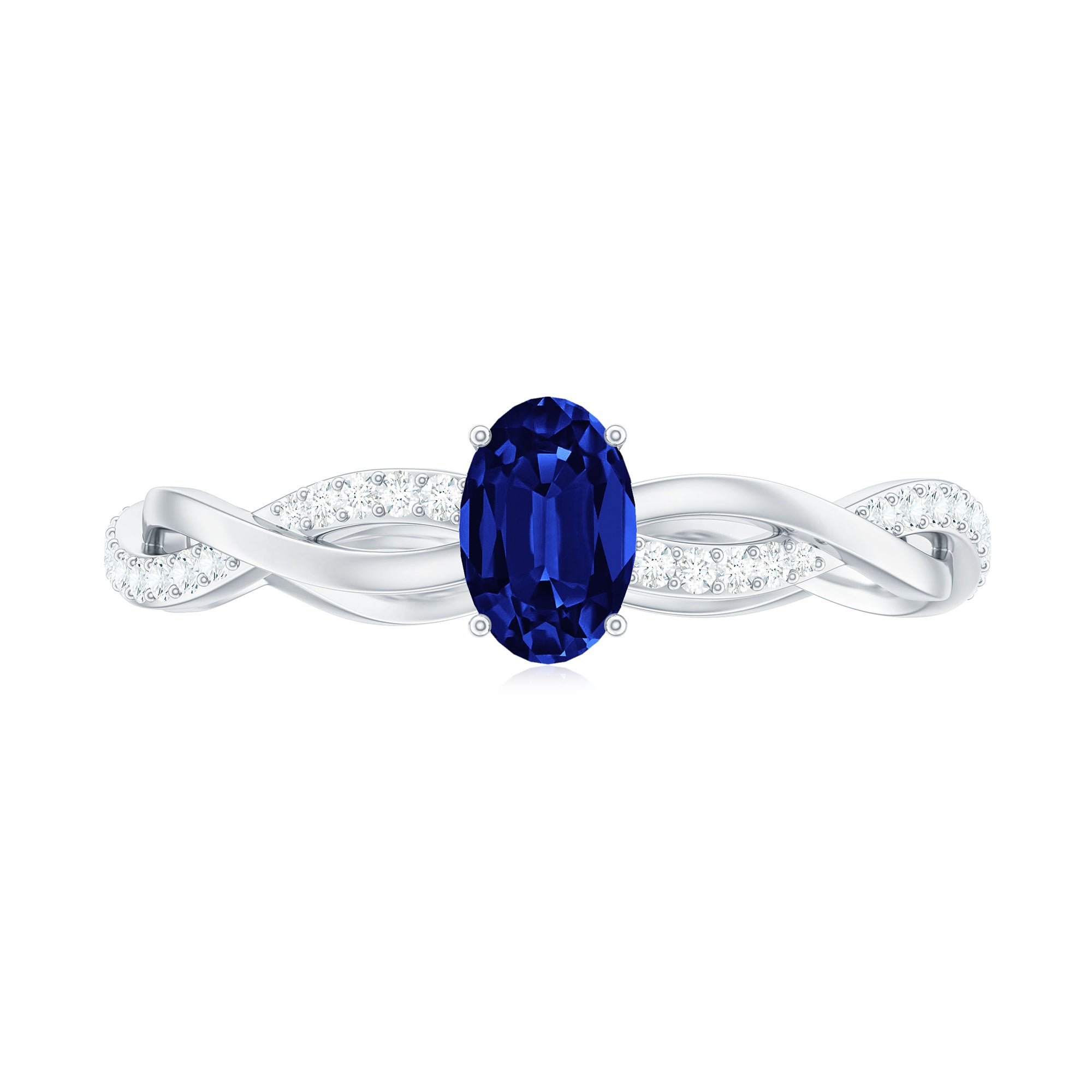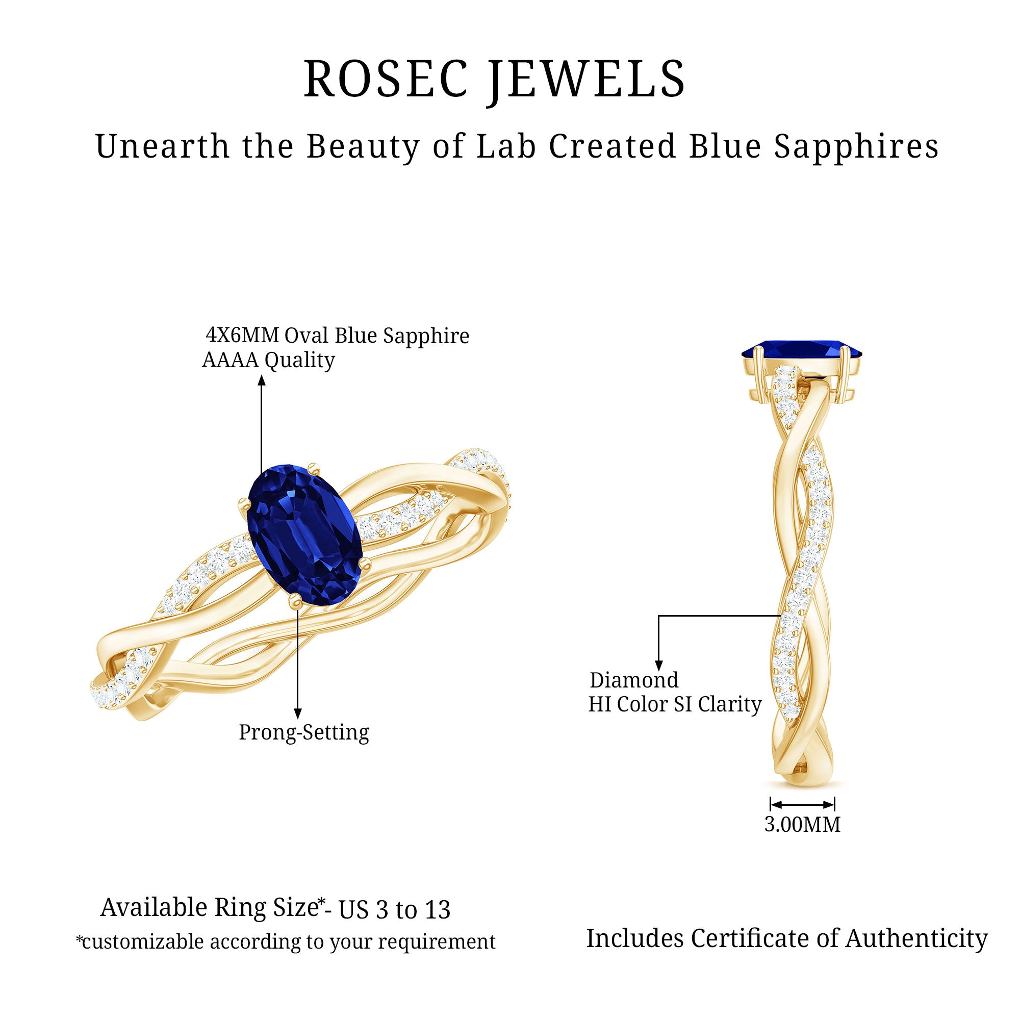 Oval Cut Solitaire Created Blue Sapphire Braided Engagement Ring with Diamond