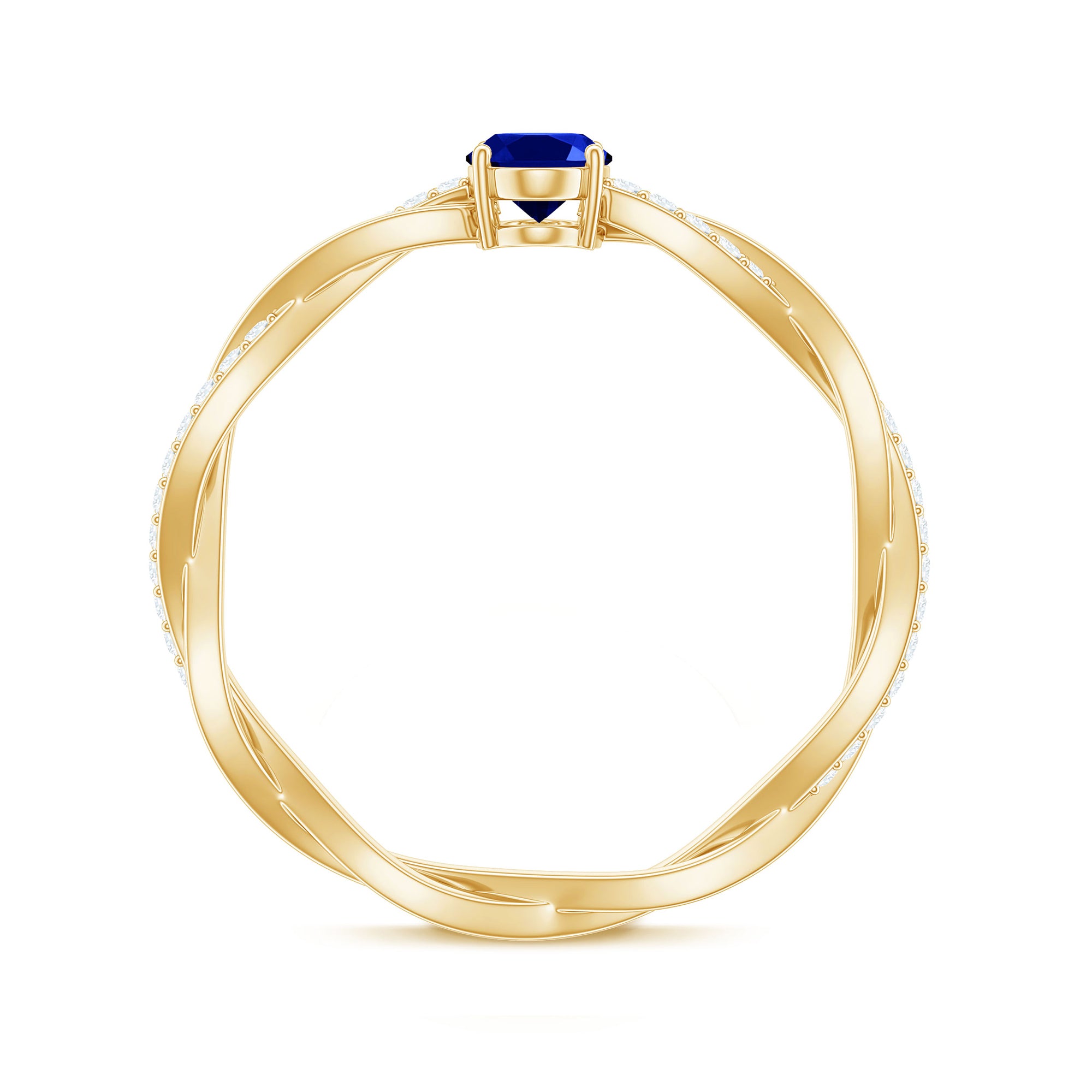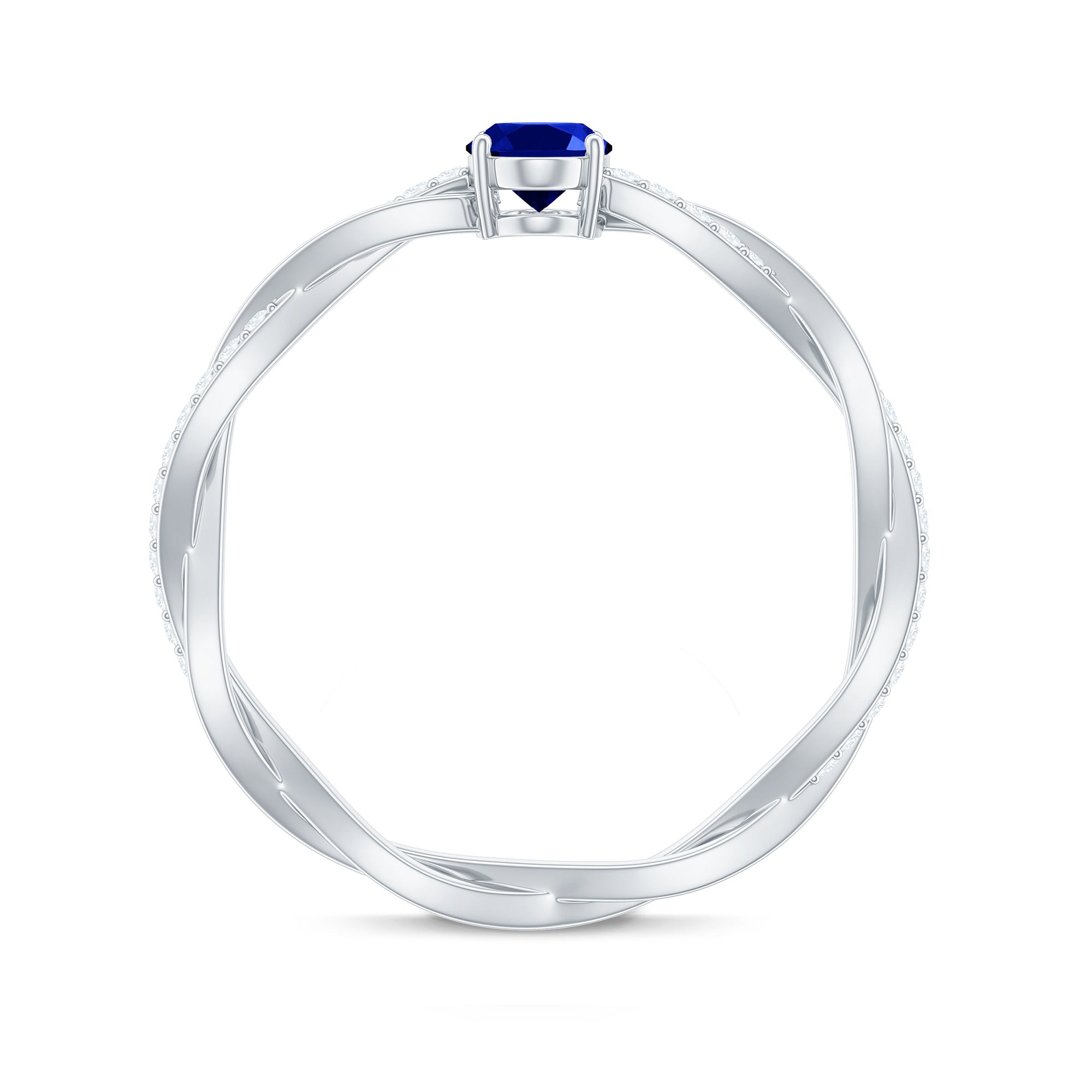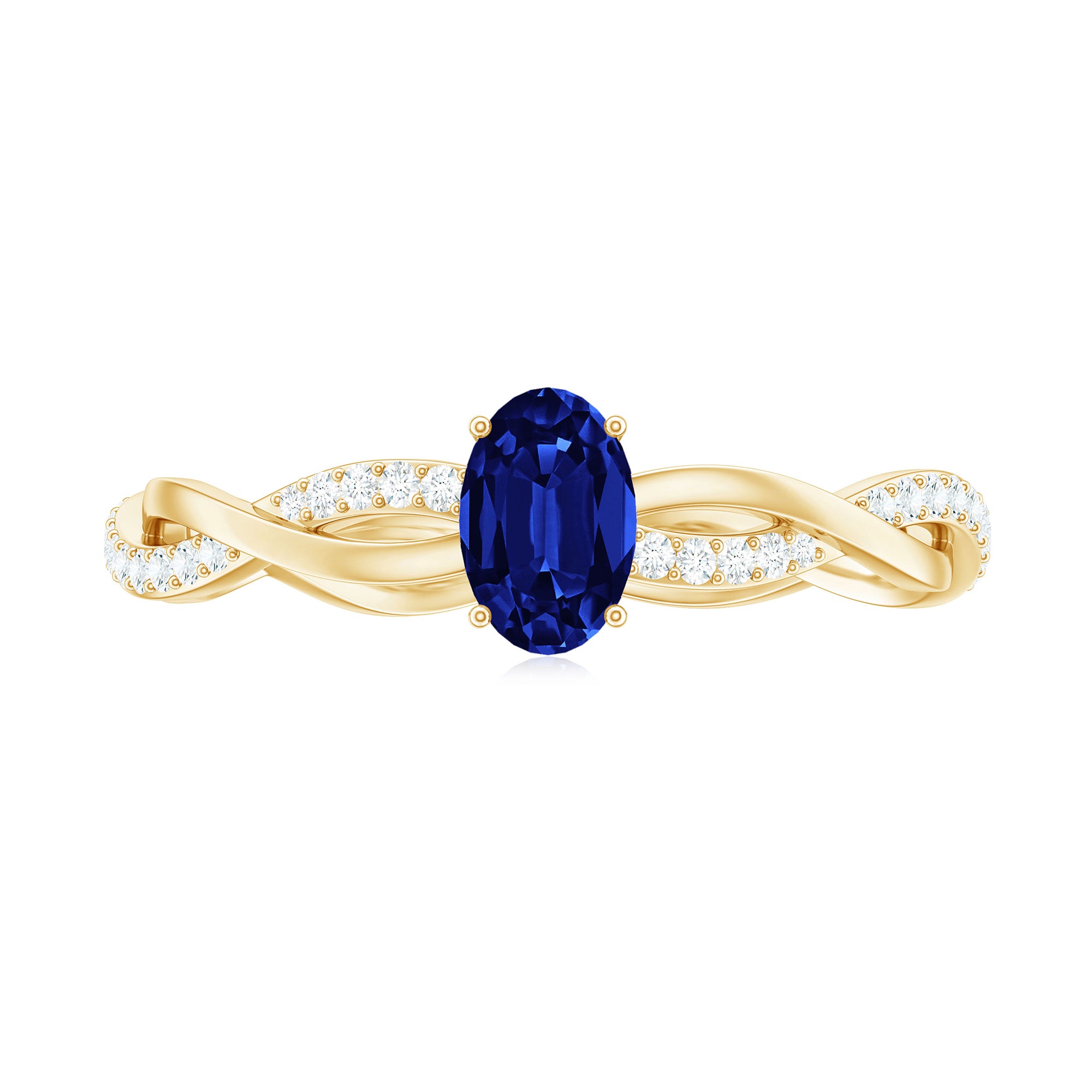 Oval Cut Solitaire Created Blue Sapphire Braided Engagement Ring with Diamond