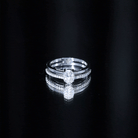 Capture her heart with the exquisite details of this Oblong Engagement Ring, which showcases a 5X7 MM Oval Cut Moissanite (D-VS1 quality) securely held in prongs. The distinctive double band shank adds an artistic flair, with one band adorned with a row of surface prong set round cut moissanites for a continuous sparkle, while the other features a sleek plain metal design. Together, these components in this Moissanite Engagement Ring give the appearance of a stackable ring while ensuring the comfort of a single band. Crafted to represent eternal love, this Oval Shaped Moissanite Ring is ideal for the bride who appreciates elegance, individuality, and timeless charm. It arrives beautifully packaged in a premium jewelry box, ready to be gifted and treasured for a lifetime. Made with precision and style, the Double Band Engagement Ring is available in a variety of metal types and colors, offering a luxurious and sustainable symbol of your bond.