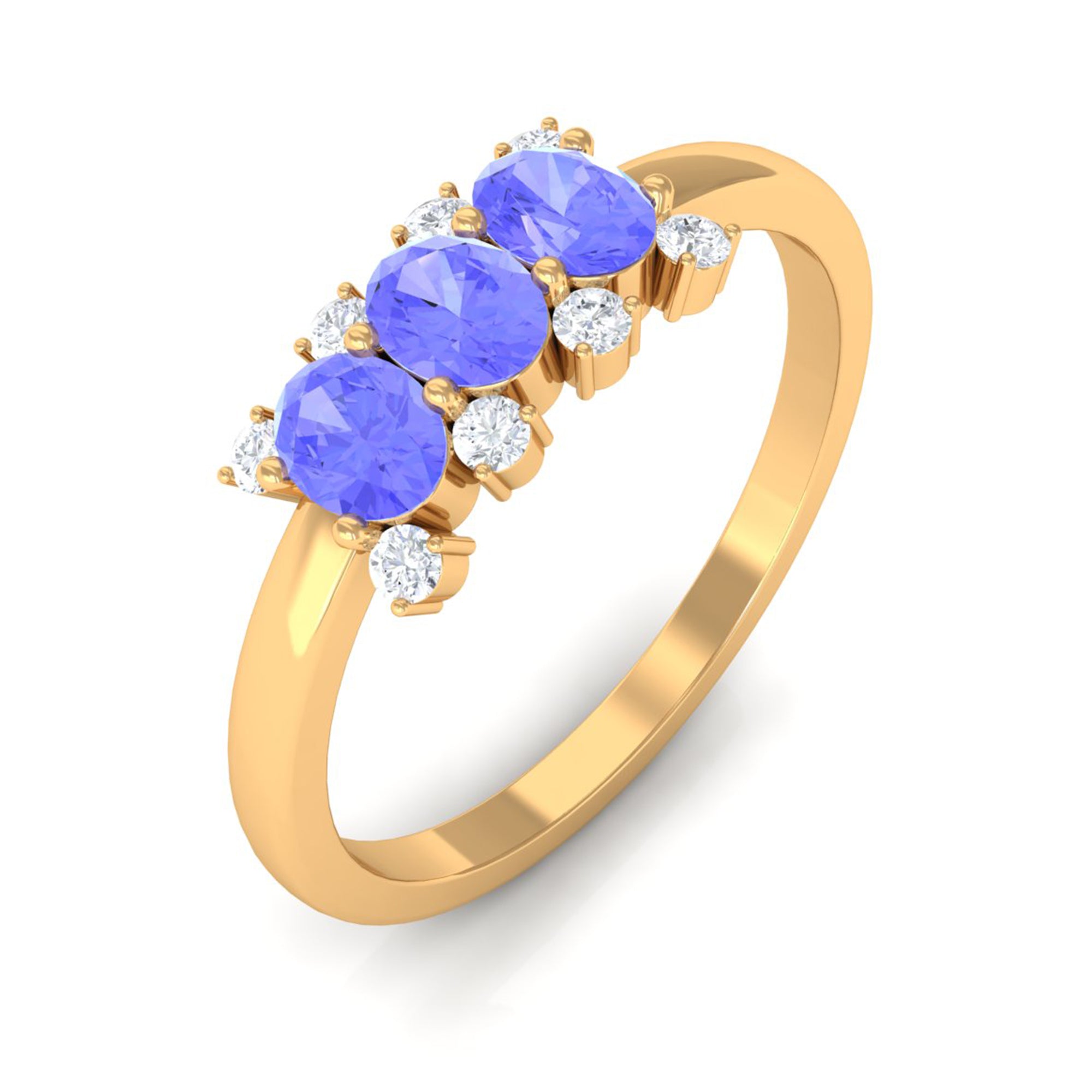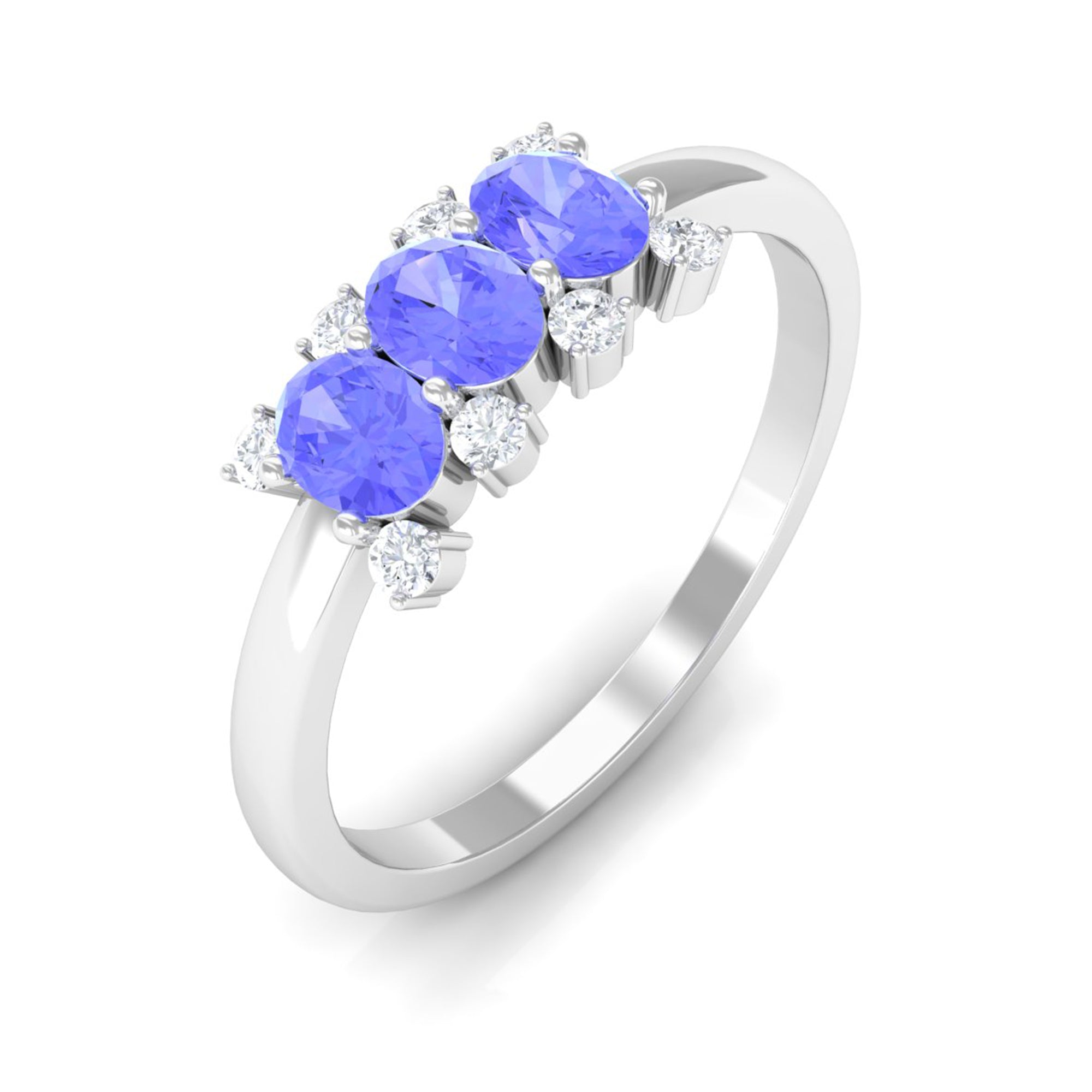 Oval Cut Tanzanite Three Stone Ring with Diamond
