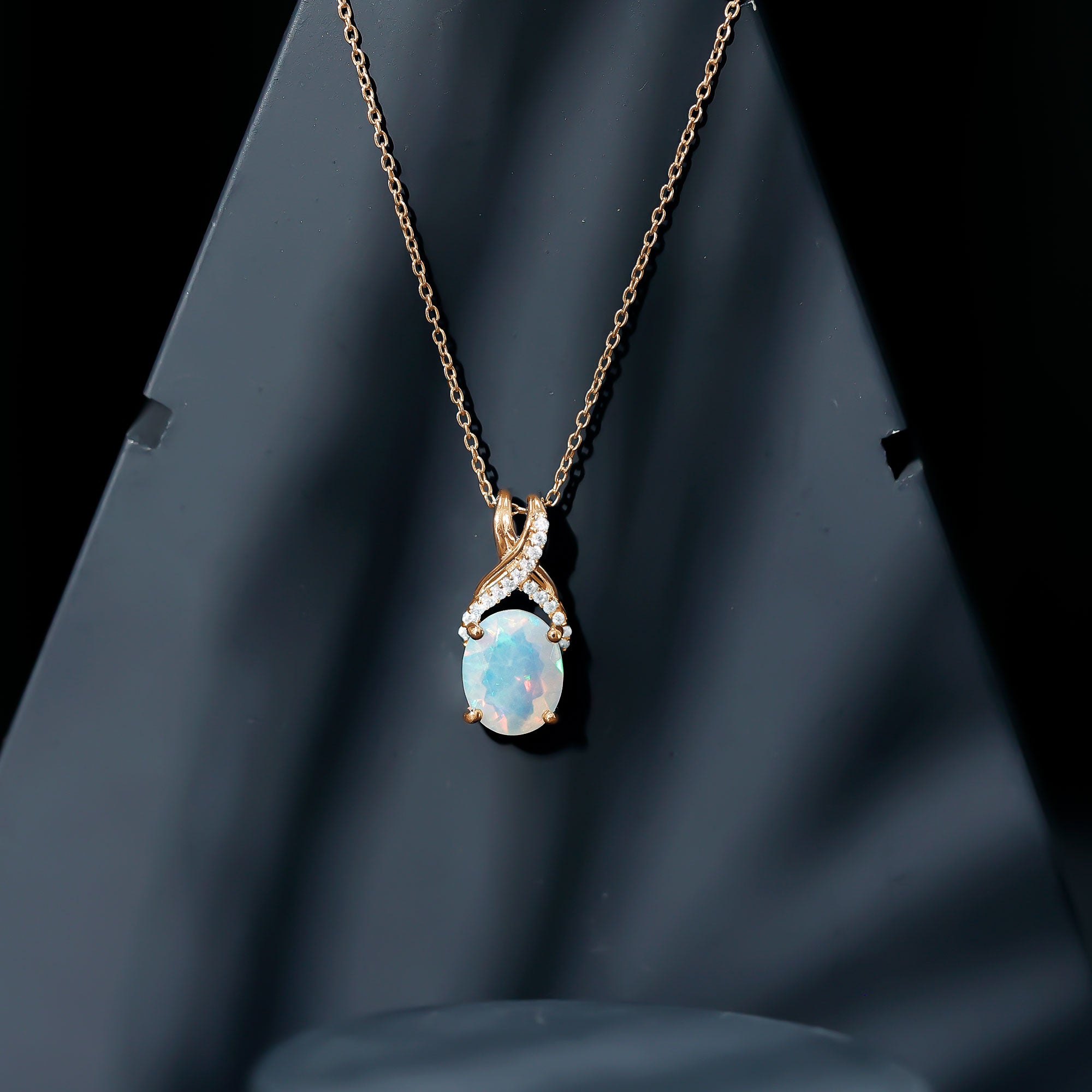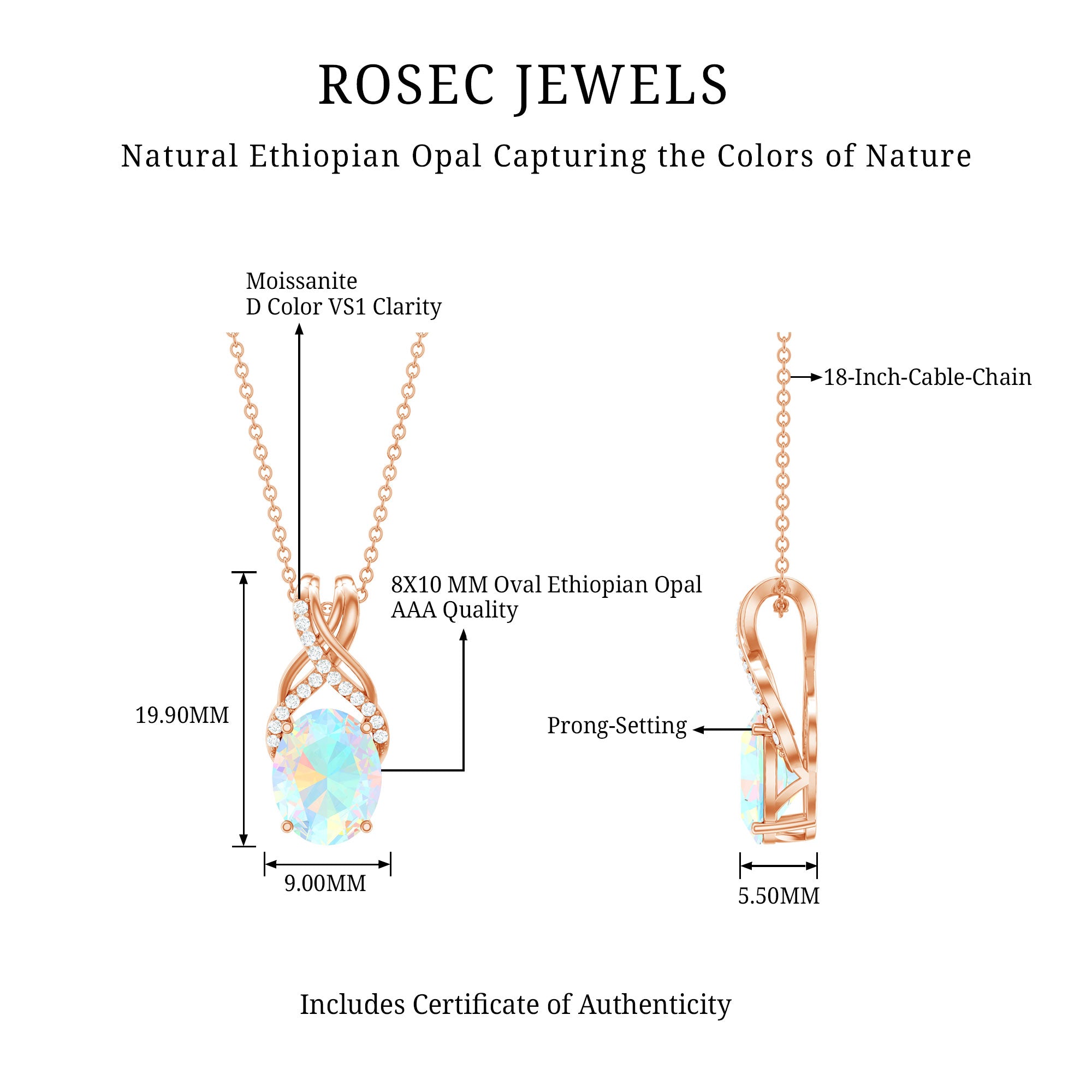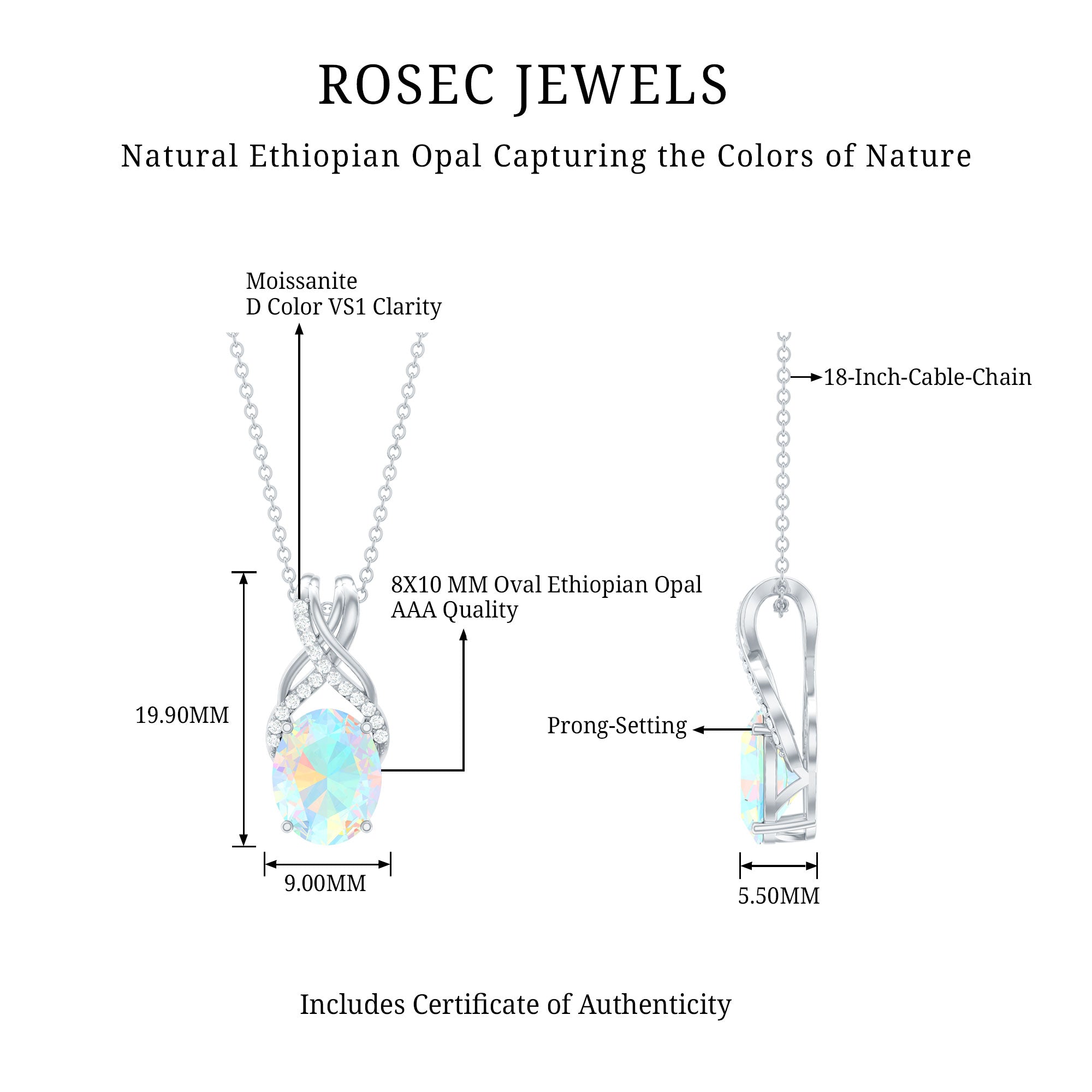 Oval Ethiopian Opal Necklace with Moissanite Twisted Bail