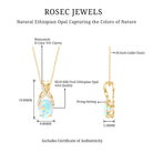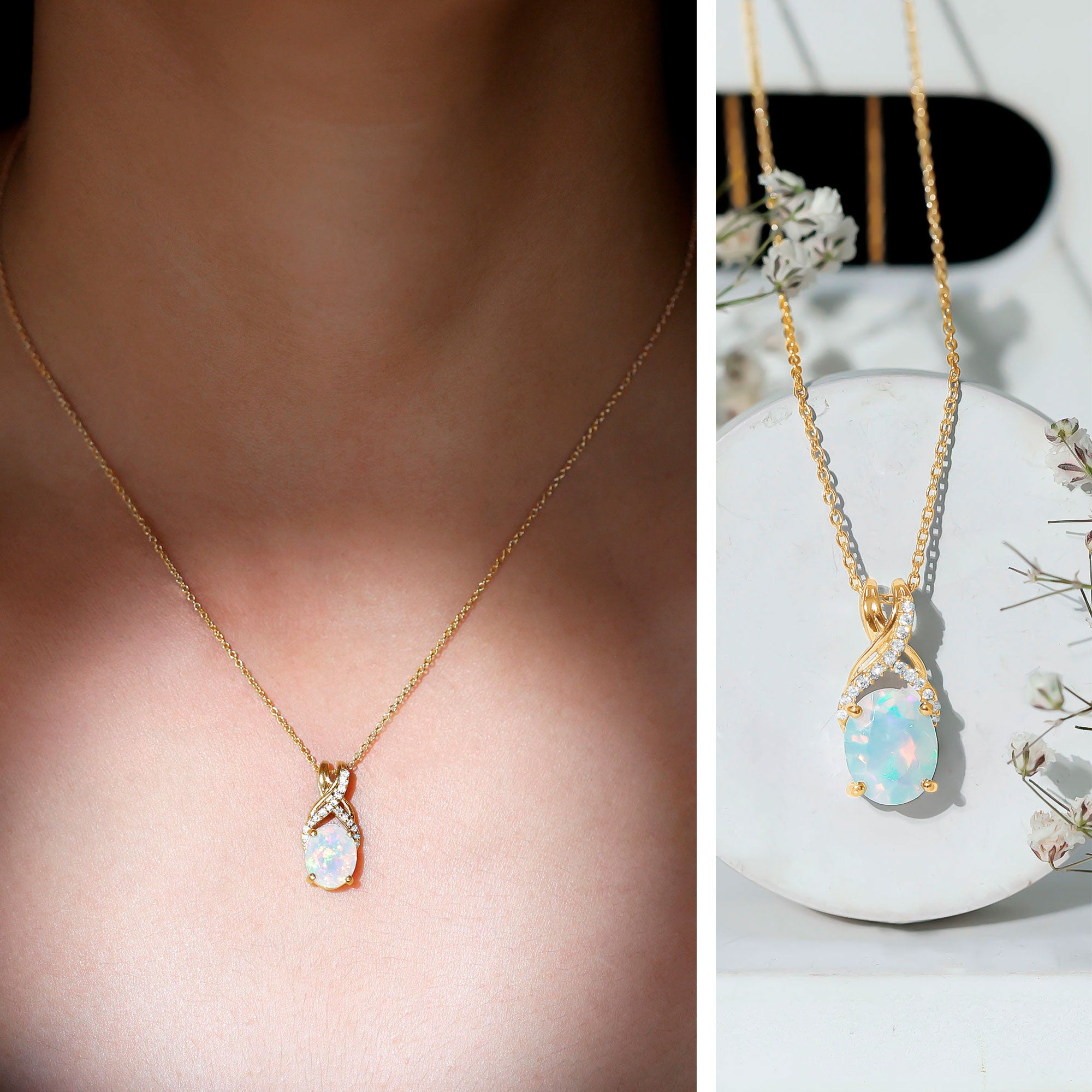 Carrying a special meaning, this Ethiopian Opal Necklace is a beautiful symbol of love, purity, and connection. Crafted with care and attention to detail, it features an 8X10 MM oval shaped Ethiopian opal set securely in prong setting. The Oval Pendant is further decorated with small round moissanite stones set over a twisted bail that brings extra sparkle and highlights the soft rainbow glow of the opal. Hanging from a delicate chain, this Opal and Moissanite Necklace has a gentle and elegant look that can easily match any outfit. Whether worn as a personal keepsake or gifted to someone special, it carries warmth and thoughtfulness. This Oval Opal Necklace is light, comfortable, and perfect for both daily wear and special occasions. Its simple yet graceful design gives it a timeless appeal that never goes out of style. The pendant’s craftsmanship and quality make it a piece to treasure for years to come. Packed in a beautiful jewelry box and complete with a certificate of authenticity, this Solitaire Necklace is ready for gifting. It is a lovely way to celebrate birthdays, anniversaries, or other milestones.