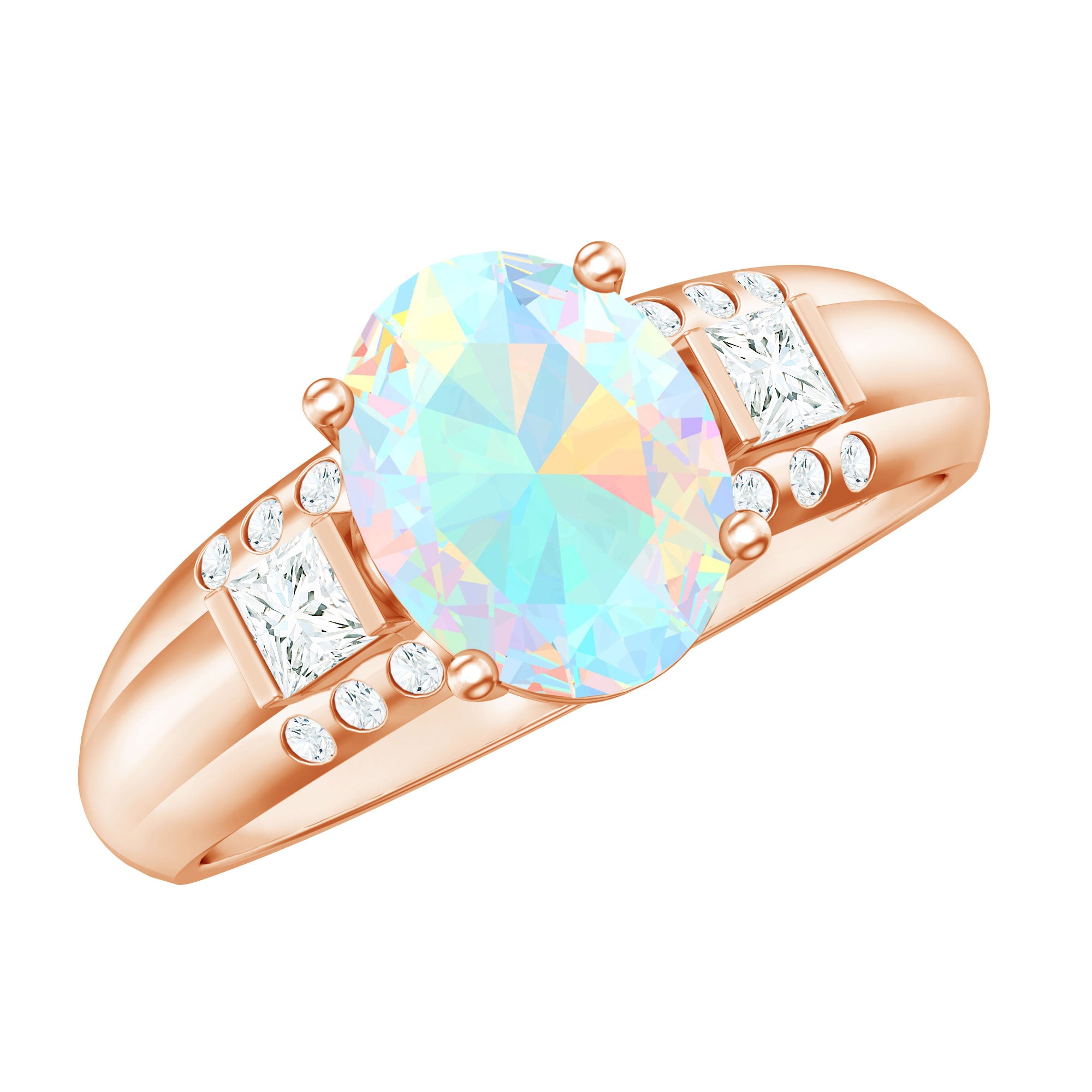 Make your love story unforgettable with this Oval Engagement Ring, a show-stopping piece designed for those who dream in color and love with all their heart. At the center is a breathtaking 8X10 mm Ethiopian Opal set in Prong Setting, glowing with soft rainbow hues, symbolizing passion, creativity and everlasting devotion. This luminous Oval Opal is flanked by a unique combination of Round and Princess Cut Diamond Side Stones, creating a perfect balance of classic sparkle and modern edge. The mix of shapes adds dimension and brilliance, giving this Big Engagement Ring a designer feel that is anything but ordinary. The dreamy hue of the Opal captures light from every angle, while the Diamond stones frame it in pure, timeless elegance. Whether you are planning the perfect proposal or celebrating a love that has already stood the test of time, this Opal Diamond Engagement Ring speaks volumes without saying a word. Beautifully presented in a luxe jewelry box and available in a variety of sizes, this Statement Ring is ready to become the centerpiece of your next big yes. For the bride who is bold, romantic and uniquely radiant, this is the ring that says forever in the most magical way.