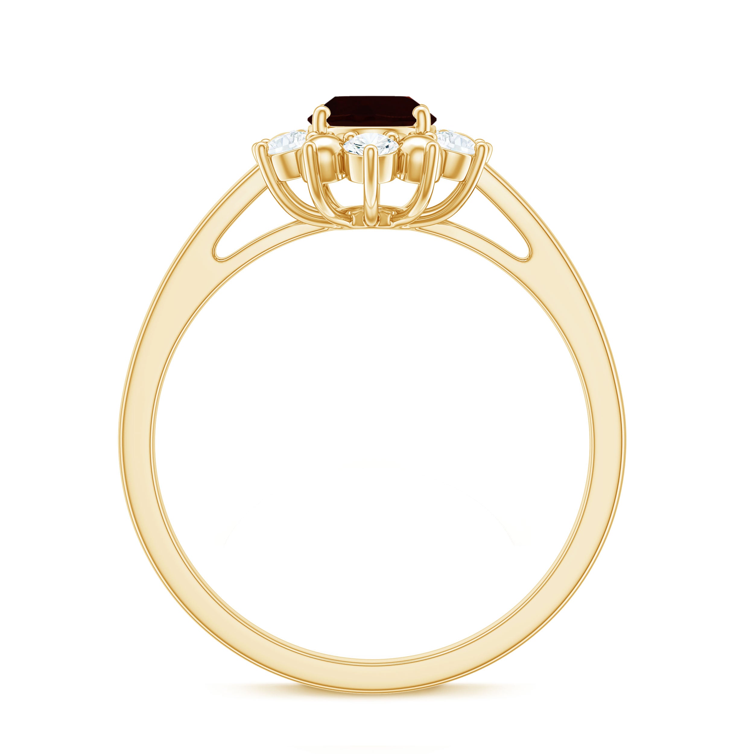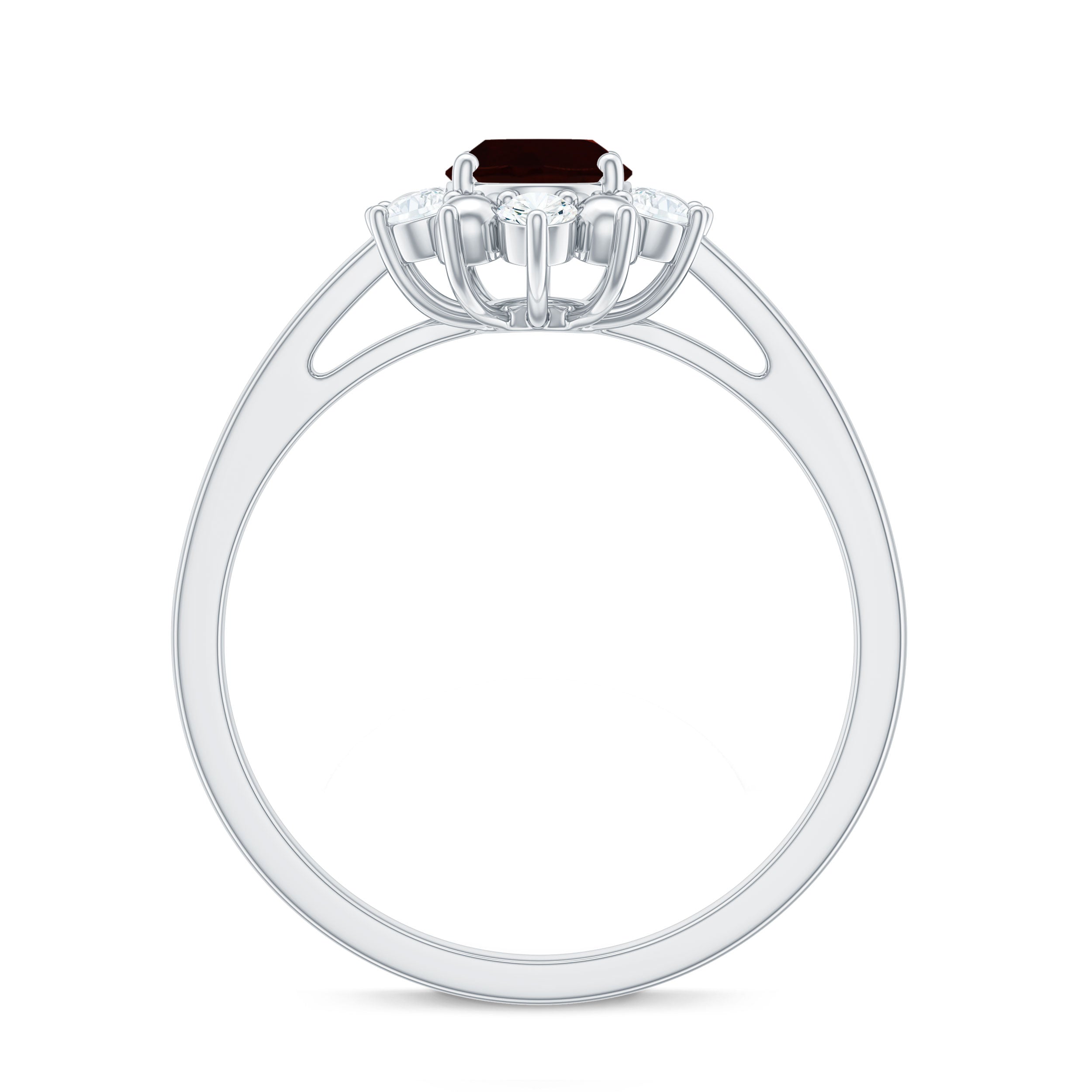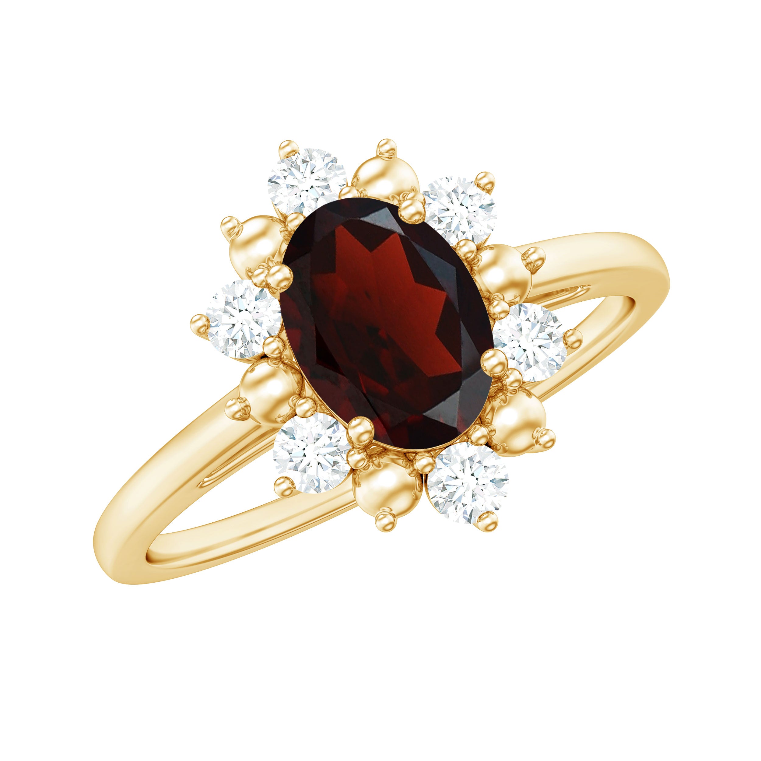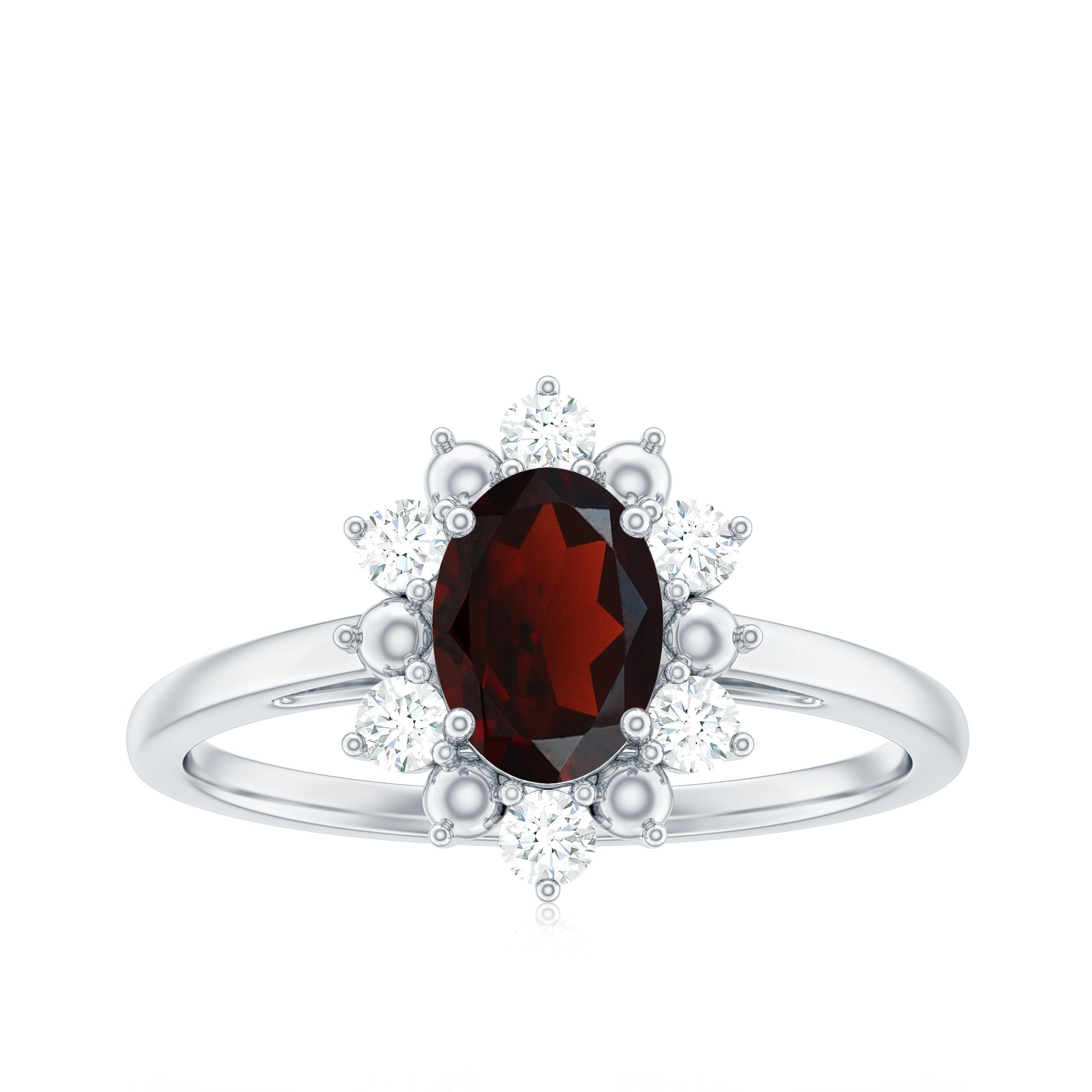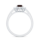 Oval Garnet Floral Halo Engagement Ring with Diamond