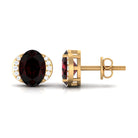 Oval Garnet Solitaire Stud Earrings with Diamond