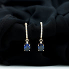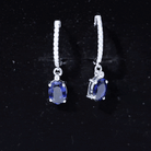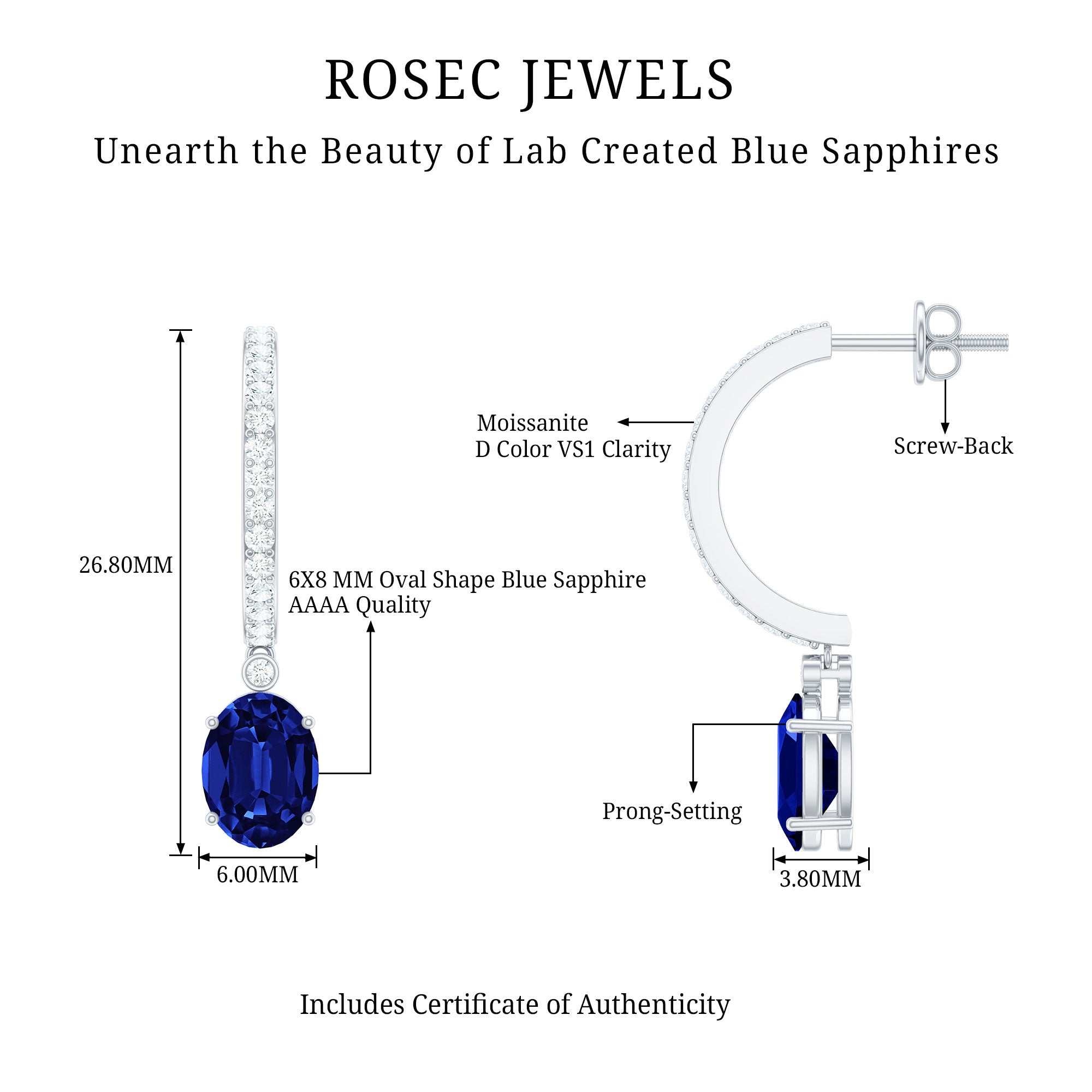 Oval Lab Created Blue Sapphire and Moissanite Hoop Drop Earrings