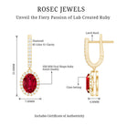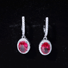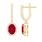 Oval Lab-Created Ruby Hoop Drop Earrings with Diamond Halo