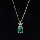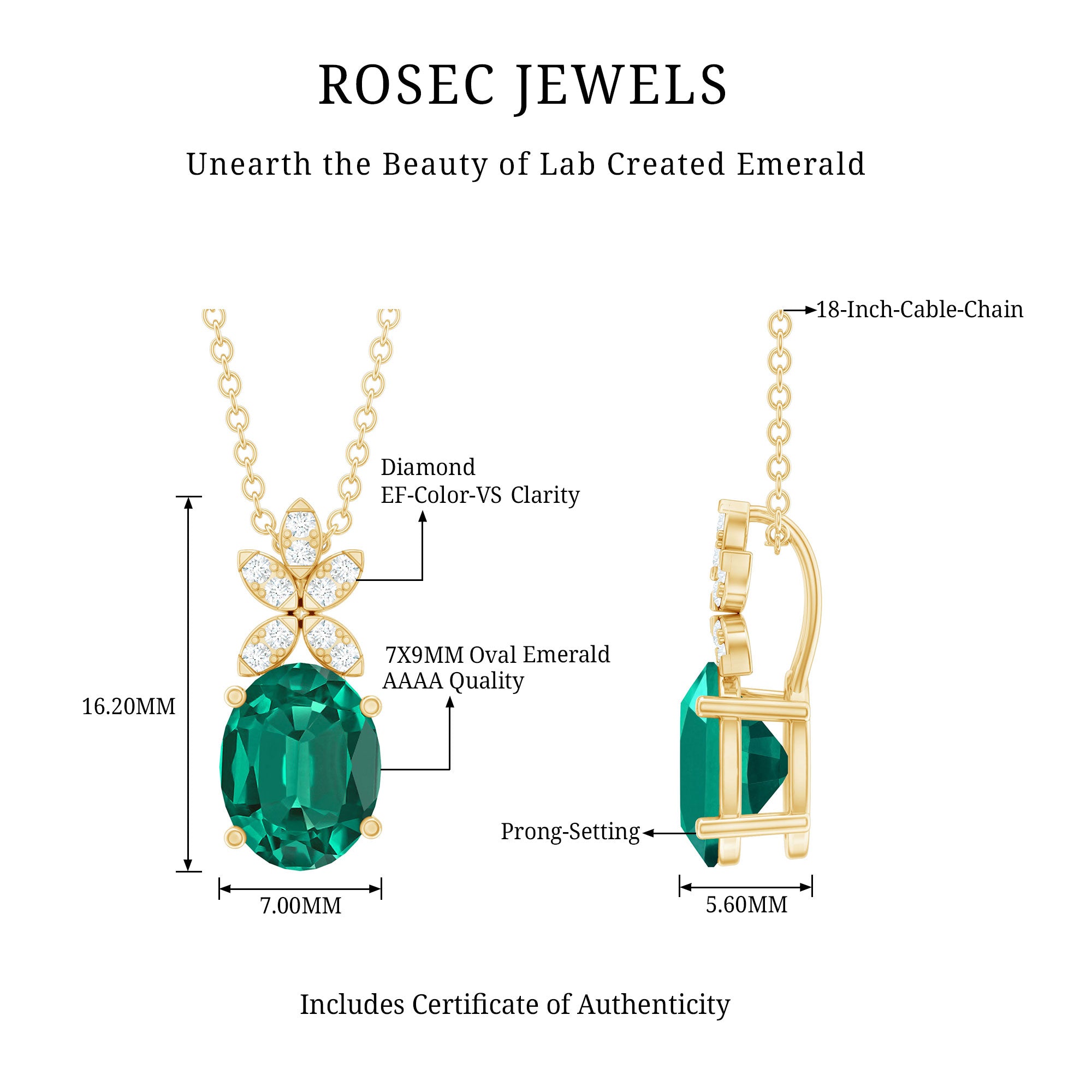 Oval Lab Grown Emerald and Diamond Flower Necklace with Chain