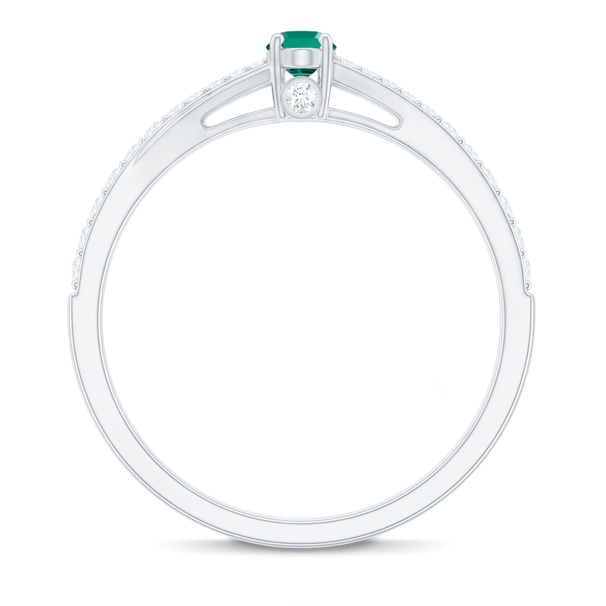 Oval Lab Grown Emerald Promise Ring with Diamond Split Shank