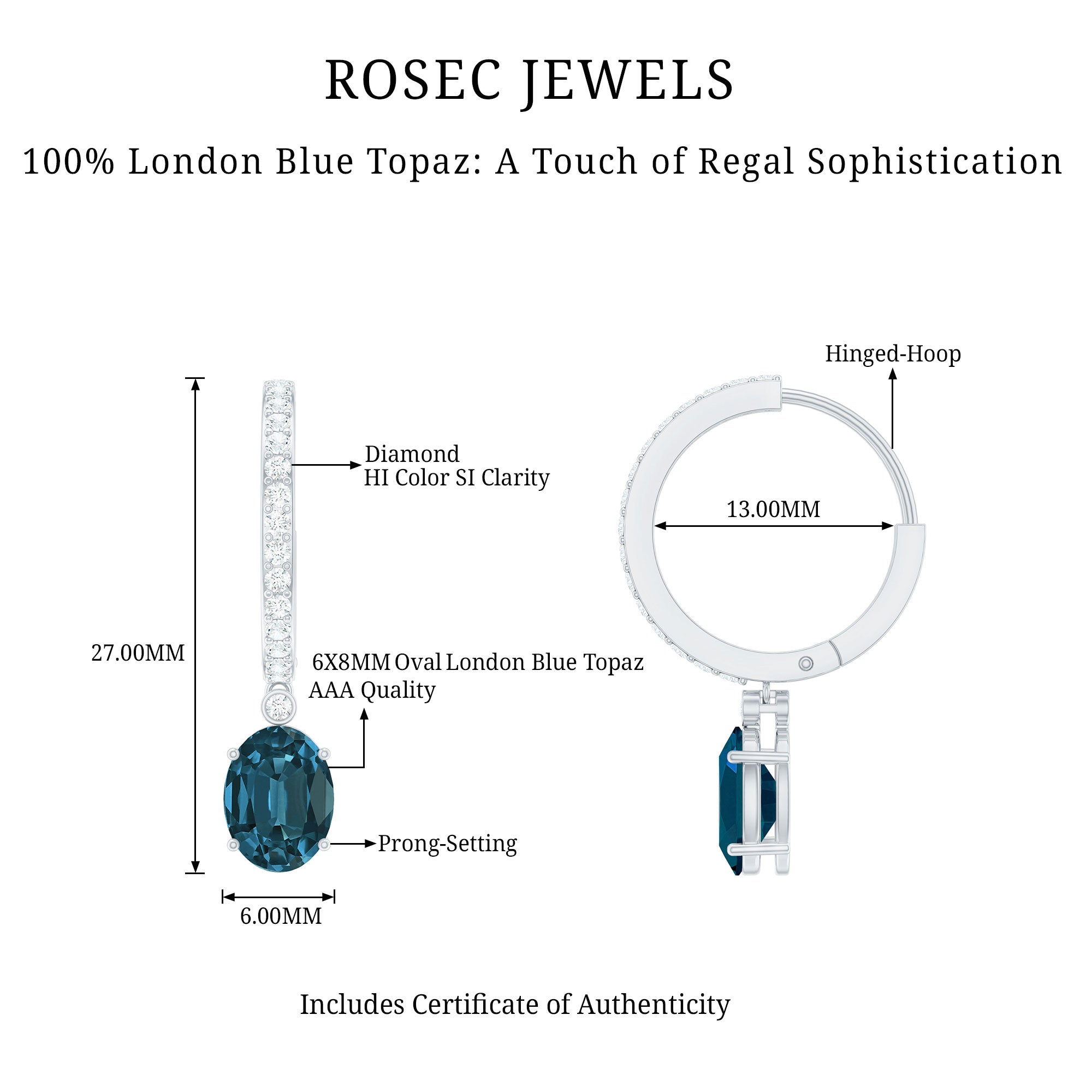 Oval London Blue Topaz and Diamond Hoop Drop Earrings