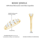 Celebrate a love that grows stronger with time with this elegant Moissanite Anniversary Ring. Thoughtfully designed to mark a special milestone, this Three Stone Moissanite Ring beautifully combines classic style with a meaningful message. The three oval shaped moissanite stones at the center symbolize your past, present, and future together, each one shining bright with D color and VS1 clarity for unmatched brilliance and sparkle. The center oval stone measures 4X6 MM and is flanked by two slightly smaller 3X5MM oval stones, creating a balanced and eye-catching design. On either side of the main stones are baguette cut moissanites set horizontally to add a modern touch, giving the 3 Stone Anniversary Ring a sophisticated finish. This Oval Moissanite Ring is a timeless reminder of your journey as a couple. Whether you are celebrating your first anniversary, ten years, or more, it is a meaningful way to show your love and commitment. Its elegant style makes it perfect for daily wear or special occasions, and it pairs easily with other jewelry pieces. Give the gift of sparkle and love with this stunning Past Present and Future Ring.